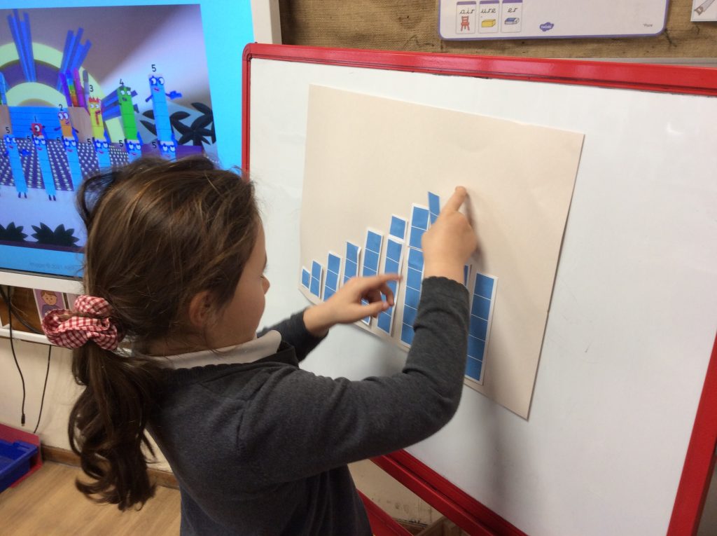 We have been doing lots of counting this week. A key focus has been to consolidate the ‘stable order principle’ – rehearsing the order of the first 10 numbers and understanding that the position that each number holds in our number sequence does not change. We have looked at a staircase pattern and talked about 1 more and 1 less. We have also been counting beyond 20 and looking at repeating patterns when counting to 100.