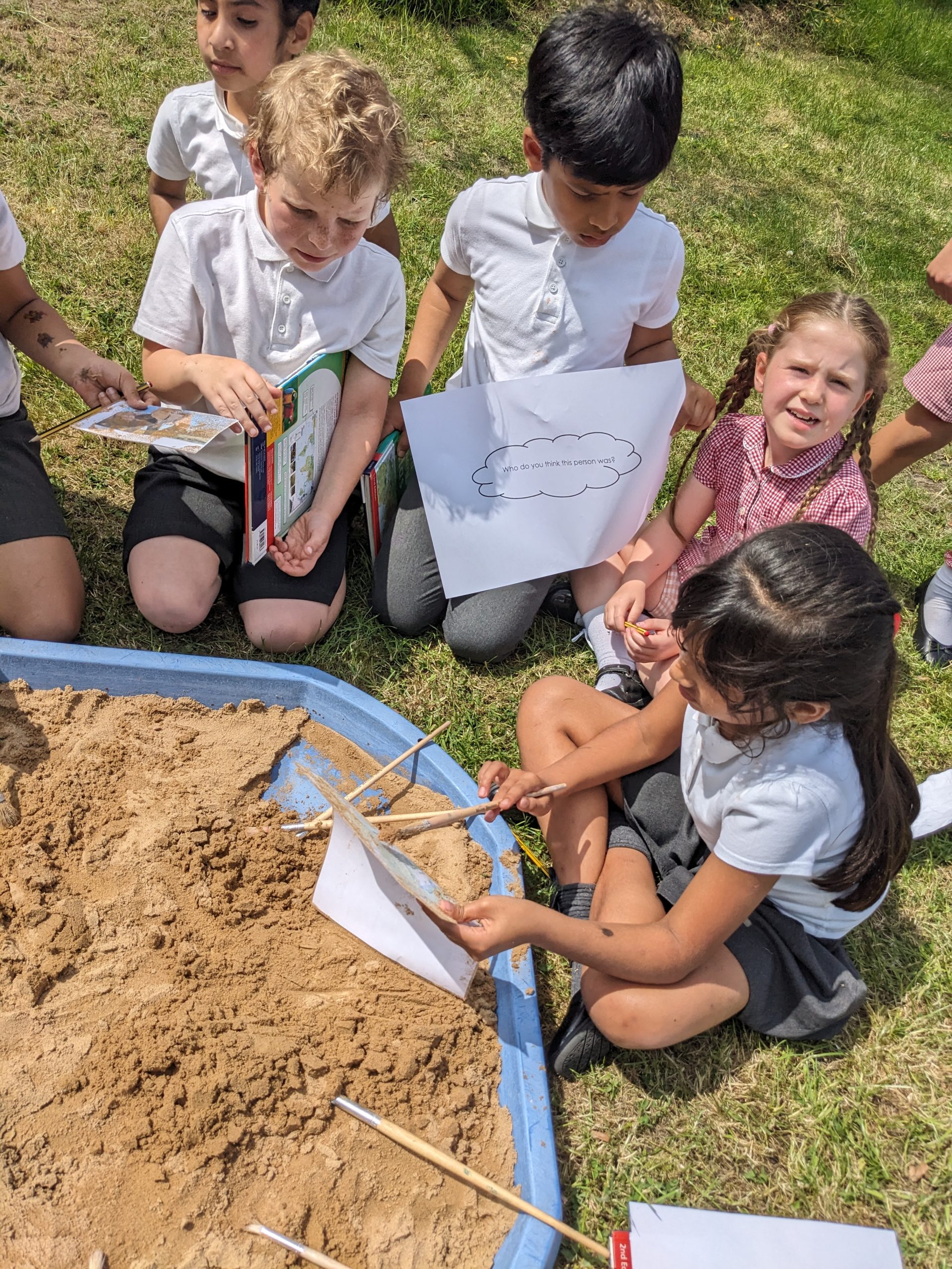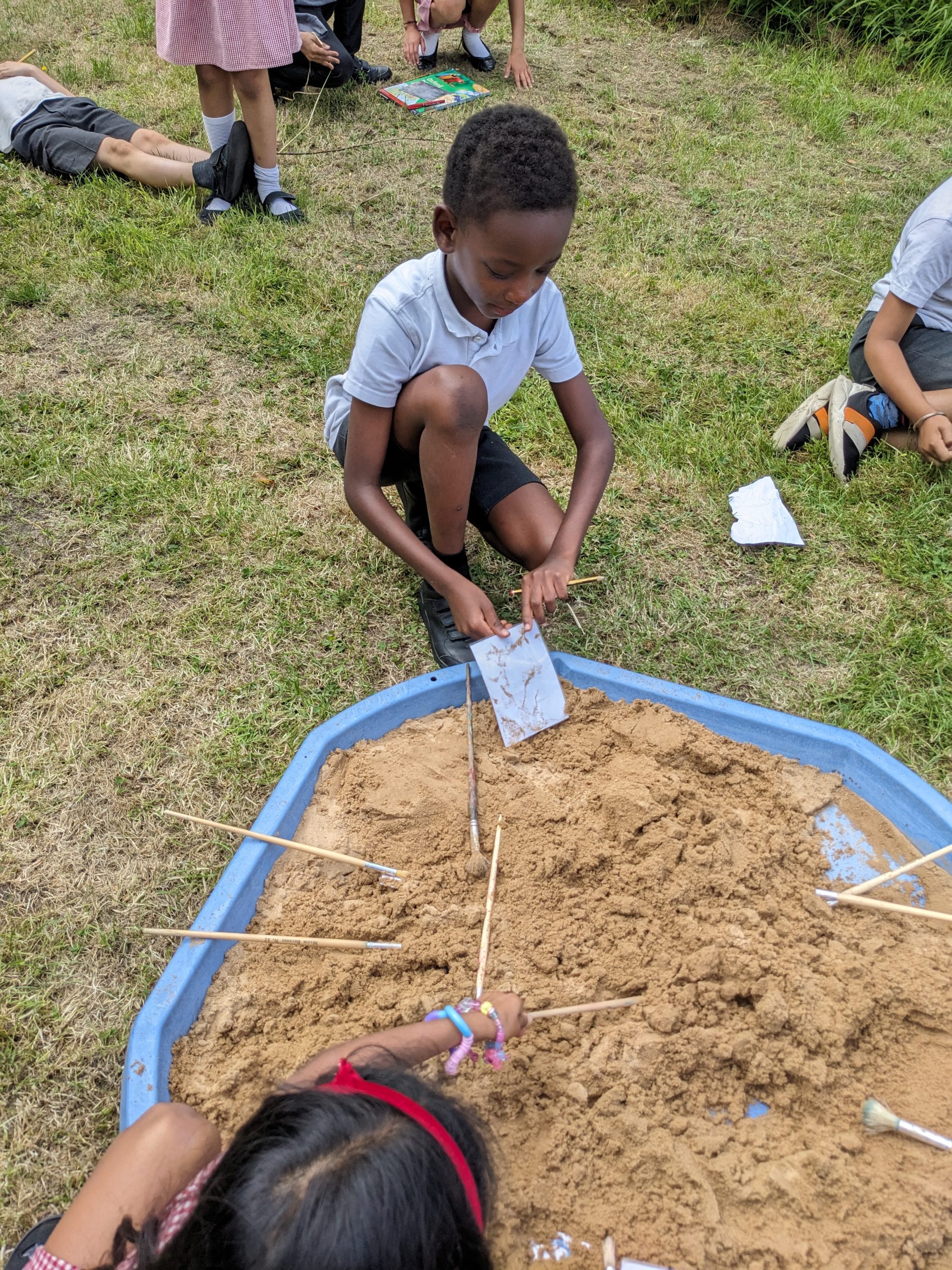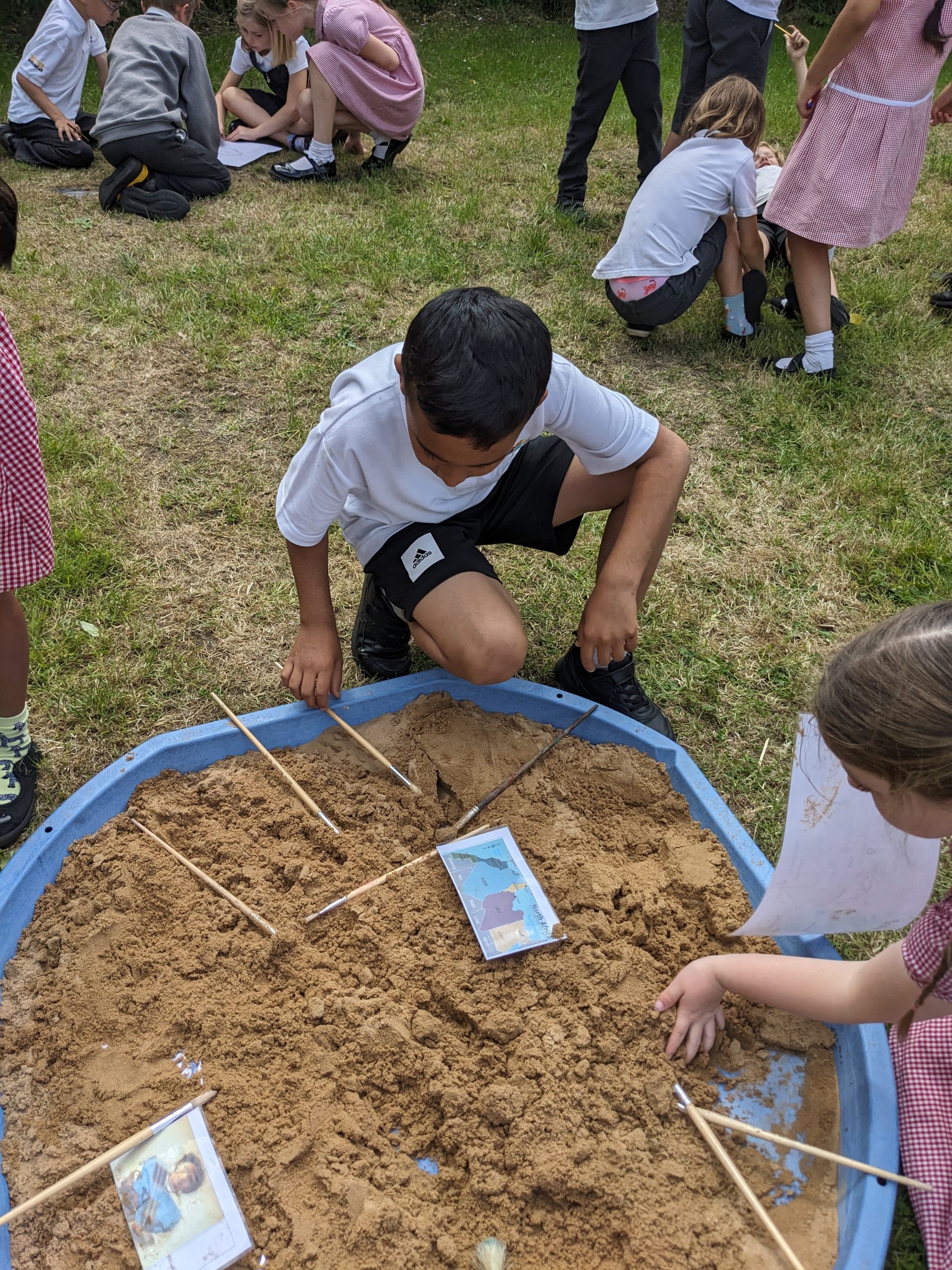 On Thursday afternoon, Year 3 became archaeologists and worked in groups trying to piece together the clues that they had just found whilst digging. Working collaboratively, they raised interesting points and had tons of questions, and figured out that the person lived in York. We later found out that she was indeed a person that lived in York who had migrated from North Africa and was known as the Ivory Bangle lady.
