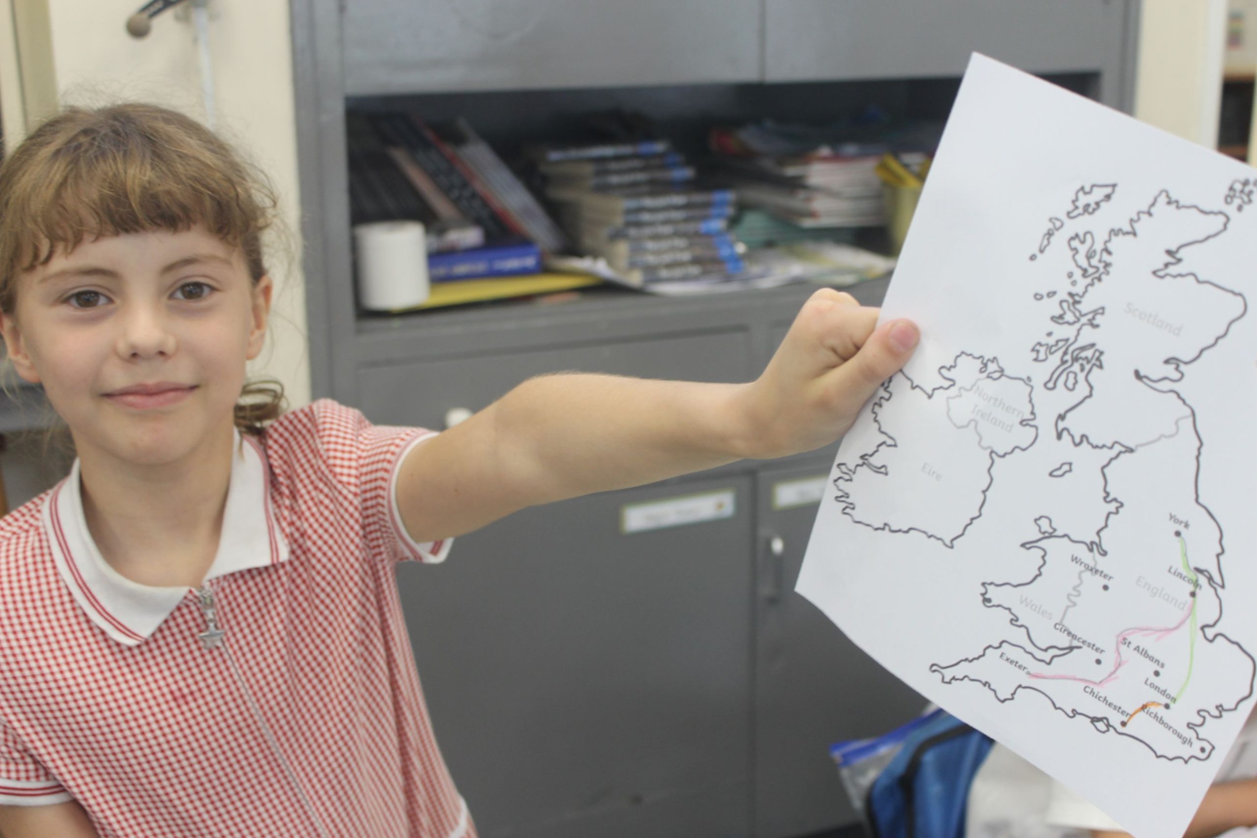 Continuing with our afternoon all about Romans, we learnt about the changes that the Romans made in Britain including the sewage system and roads that still exist today even after two thousand years! Children worked hard to recreate Roman roads and labelled the key parts. They located different places where Roman roads were built and drew lines to represent the journey that they took using straight roads.