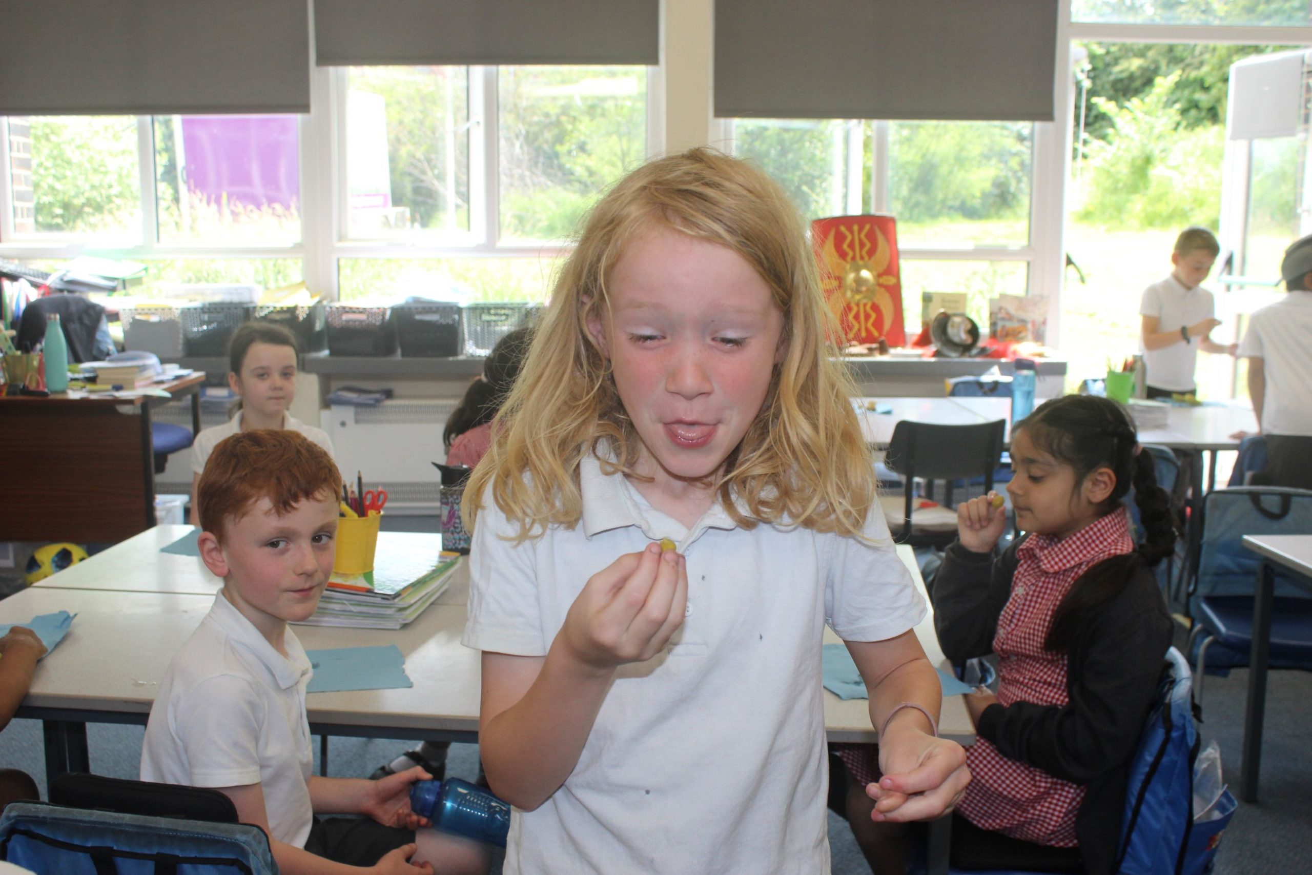 We ended the day with a short banquet trying out some of the foods that the Romans enjoyed including honey, bread, cheese, and olives!