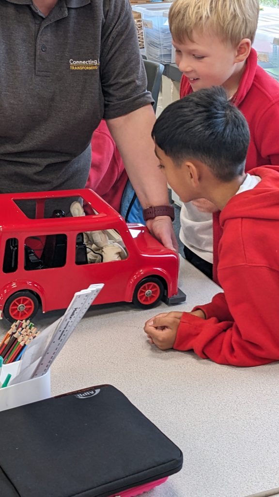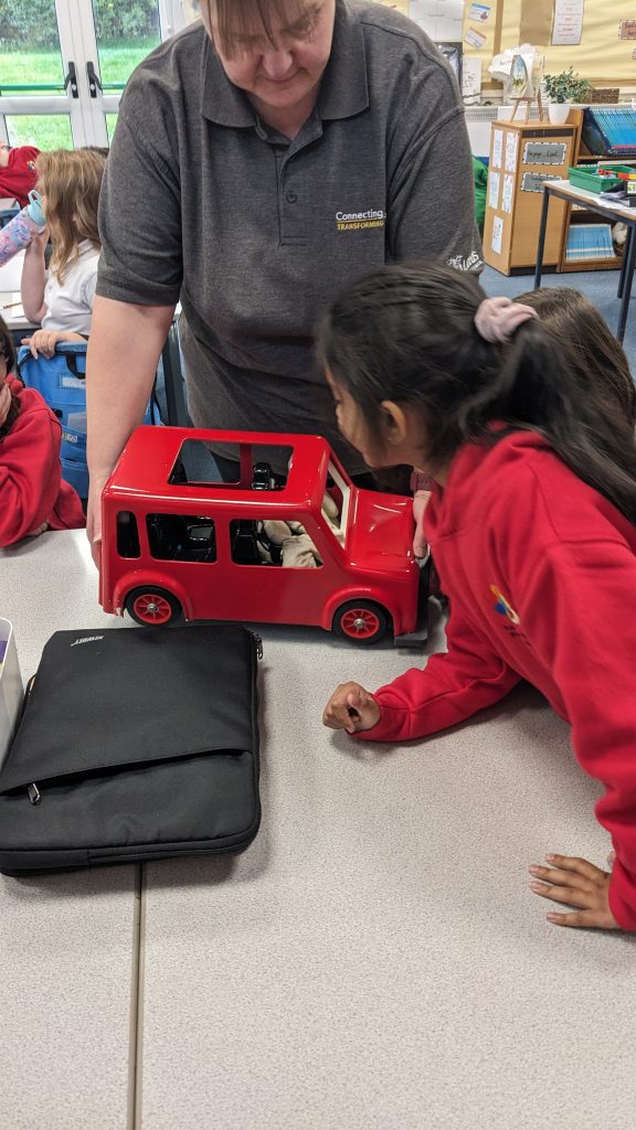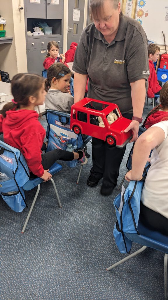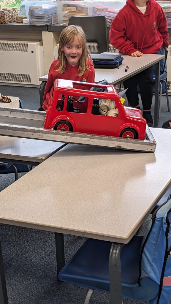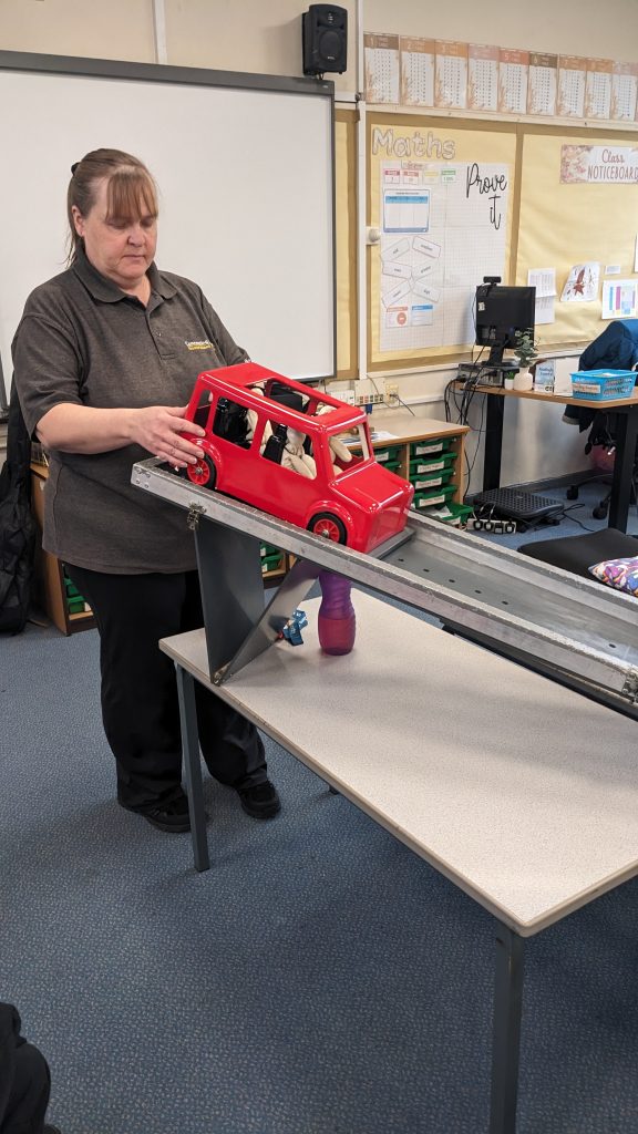On Wednesday, Year 3 had a lesson on road safety delivered by Road Safety trainers. It began with a catapult and a small ball, and children had to predict what would happen when it was released. As expected, the ball went quite far. They then discussed ways to prevent this from happening, and with some measures in place when rereleased, the ball remained in the same place. This then moved on to using a smaller car to scale with dummies inside. A ramp was used to demonstrate the impact on dummies when they rolled down the ramp without a seatbelt. Children took a close look inside and then shared the injuries they thought the dummies might have after this ‘accident’. They then watched this happen again, but this time with a seatbelt. We ended the session by sharing the importance of wearing a seatbelt.