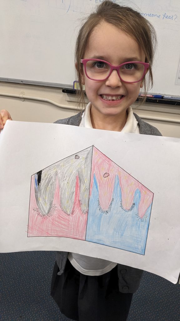This week, we learned more about Leon and his travels to the Place Between. We ended last week working on abstract and concrete nouns, and children used this to write down short phrases about the place between.  Children then went on to write excellent setting descriptions using expanded noun phrases, alliteration and fronted adverbials.  After editing the descriptions, children created beautiful doors with descriptions behind them to read to their adults. We will be spending some more time next week completing our doors before they are taken home to share!