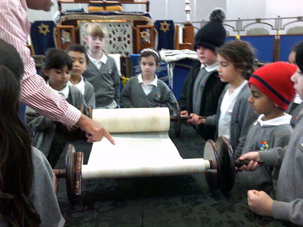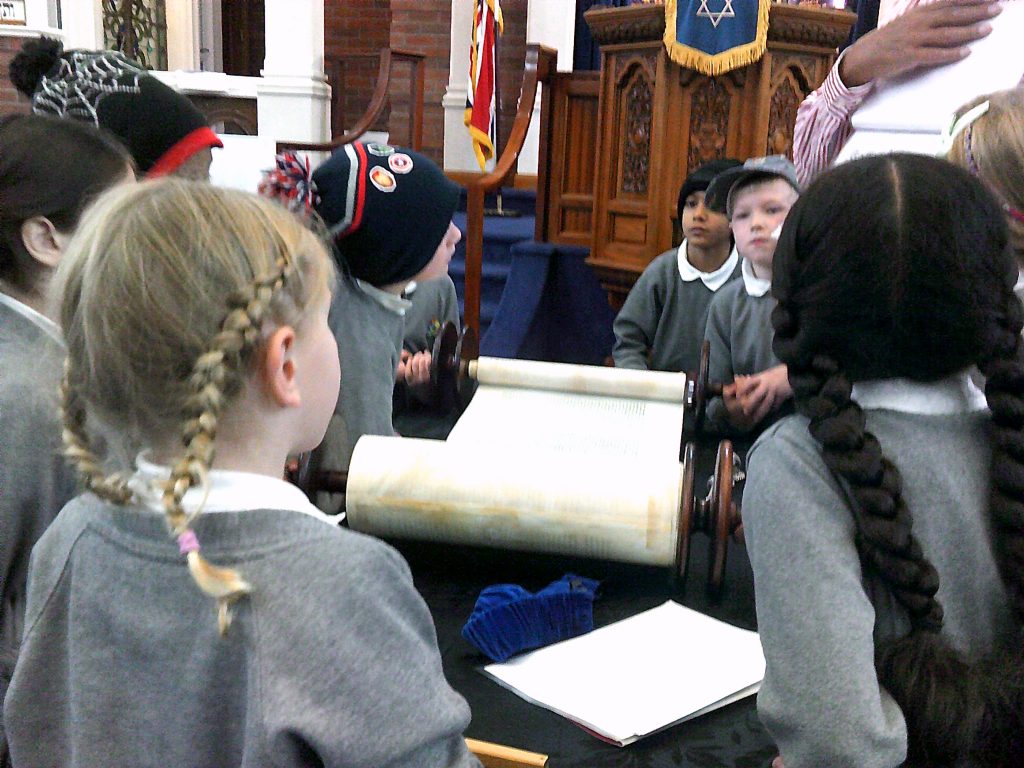 We then learnt about some important Jewish celebrations, including Bar and Bat Mitzvahs and traditional Jewish weddings! The children then split into smaller groups to learn more about Shabbat and the Torah, and went to visit the smaller Synagogue where they learnt more about some of its features.