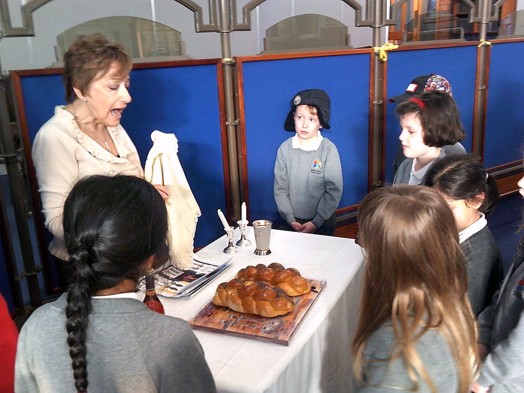 Children learnt that Shabbat is a day of rest in Judaism, starting when it gets dark on a Friday evening until nightfall on Saturday. Jewish families celebrate Shabbat every week with a special meal on a Friday evening, often with family and friends, which always includes two loaves of a special type of bread called challah, candles and prayers.