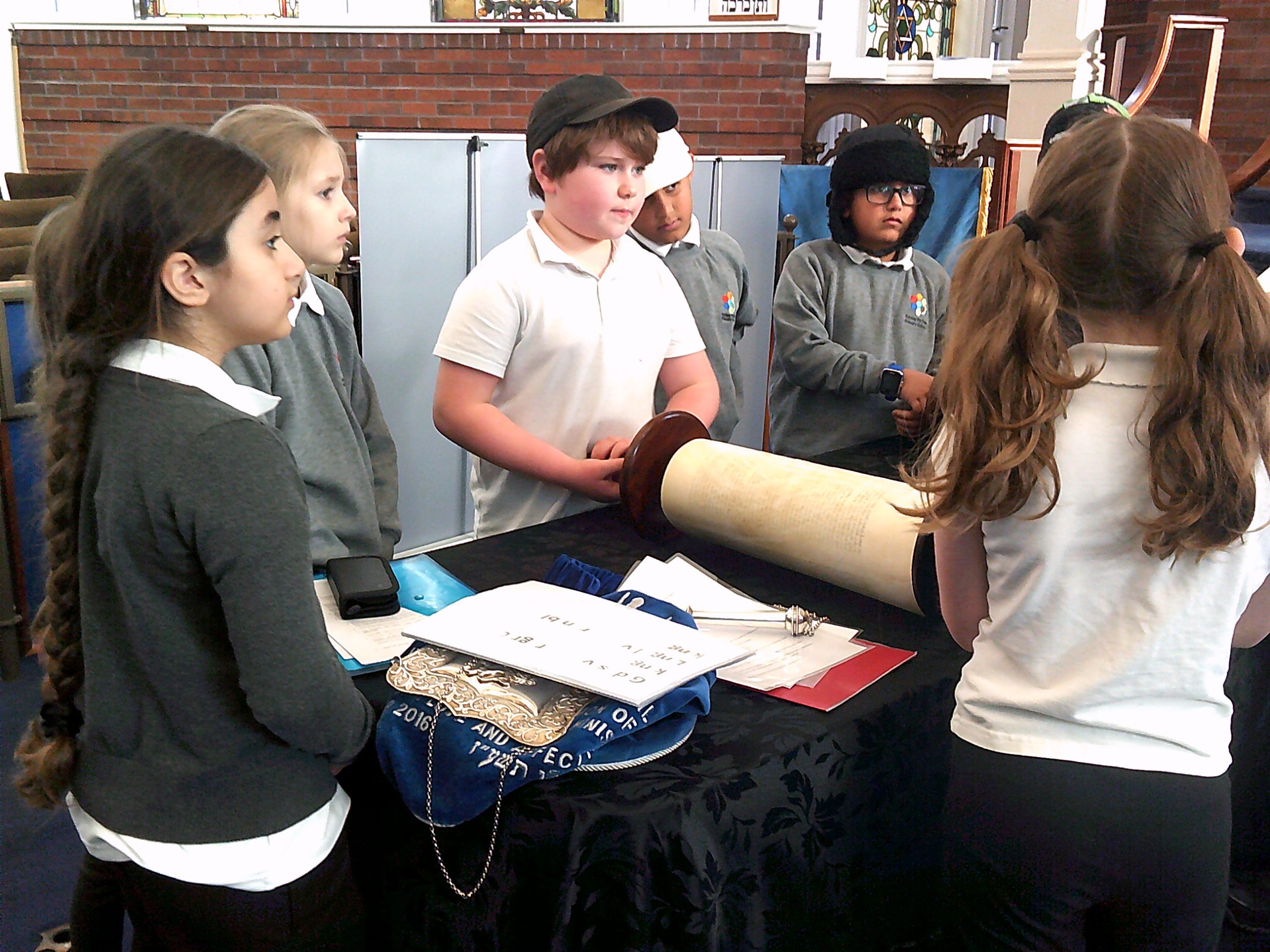 We then learnt about some important Jewish celebrations, including Bar and Bat Mitzvahs and traditional Jewish weddings! The children then split into smaller groups to learn more about Shabbat and the Torah, and went to visit the smaller Synagogue where they learnt more about some of its features.