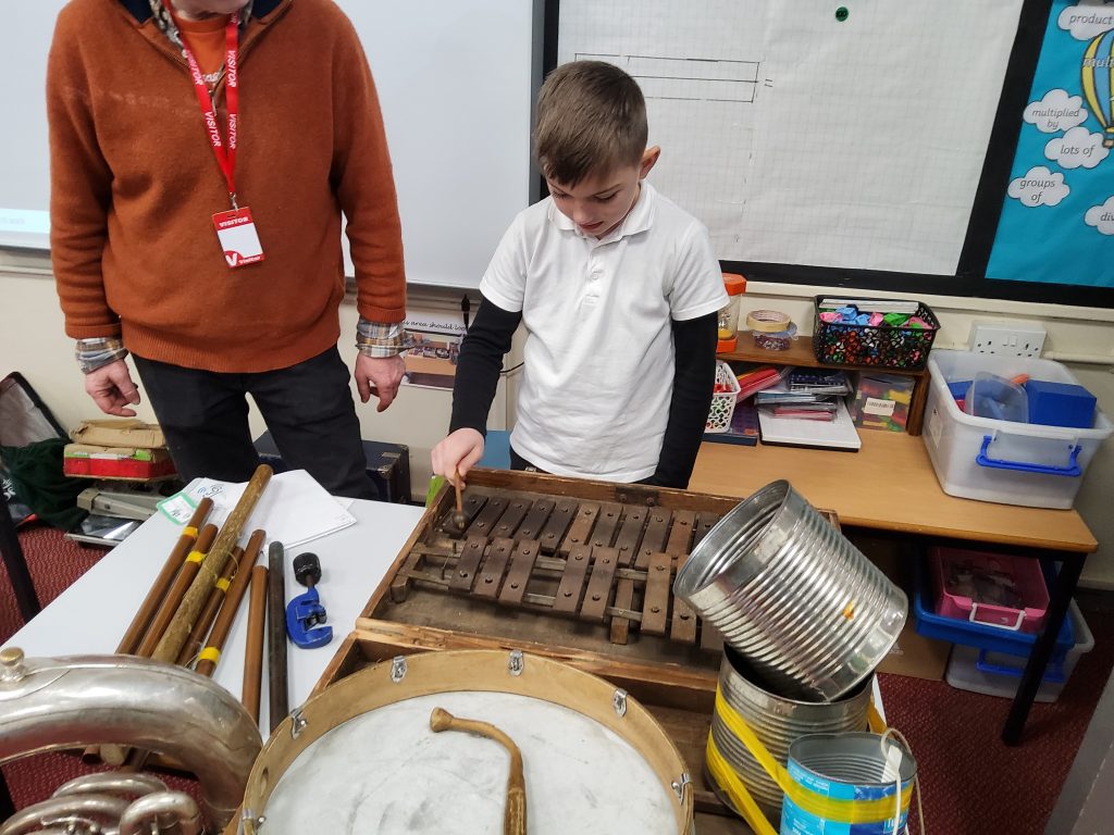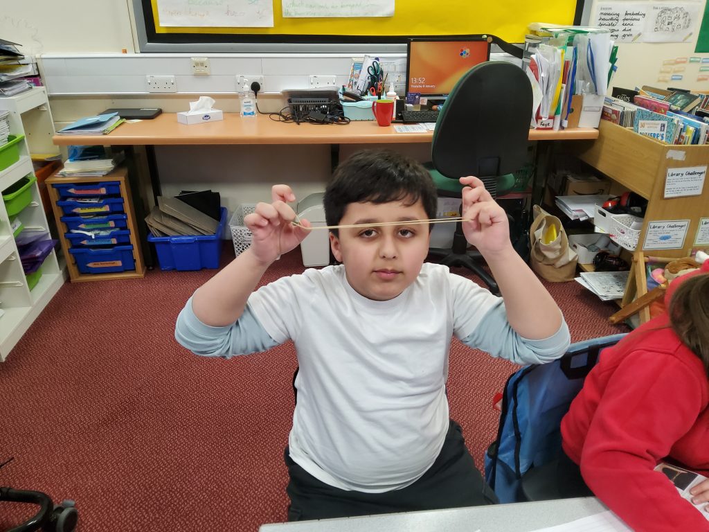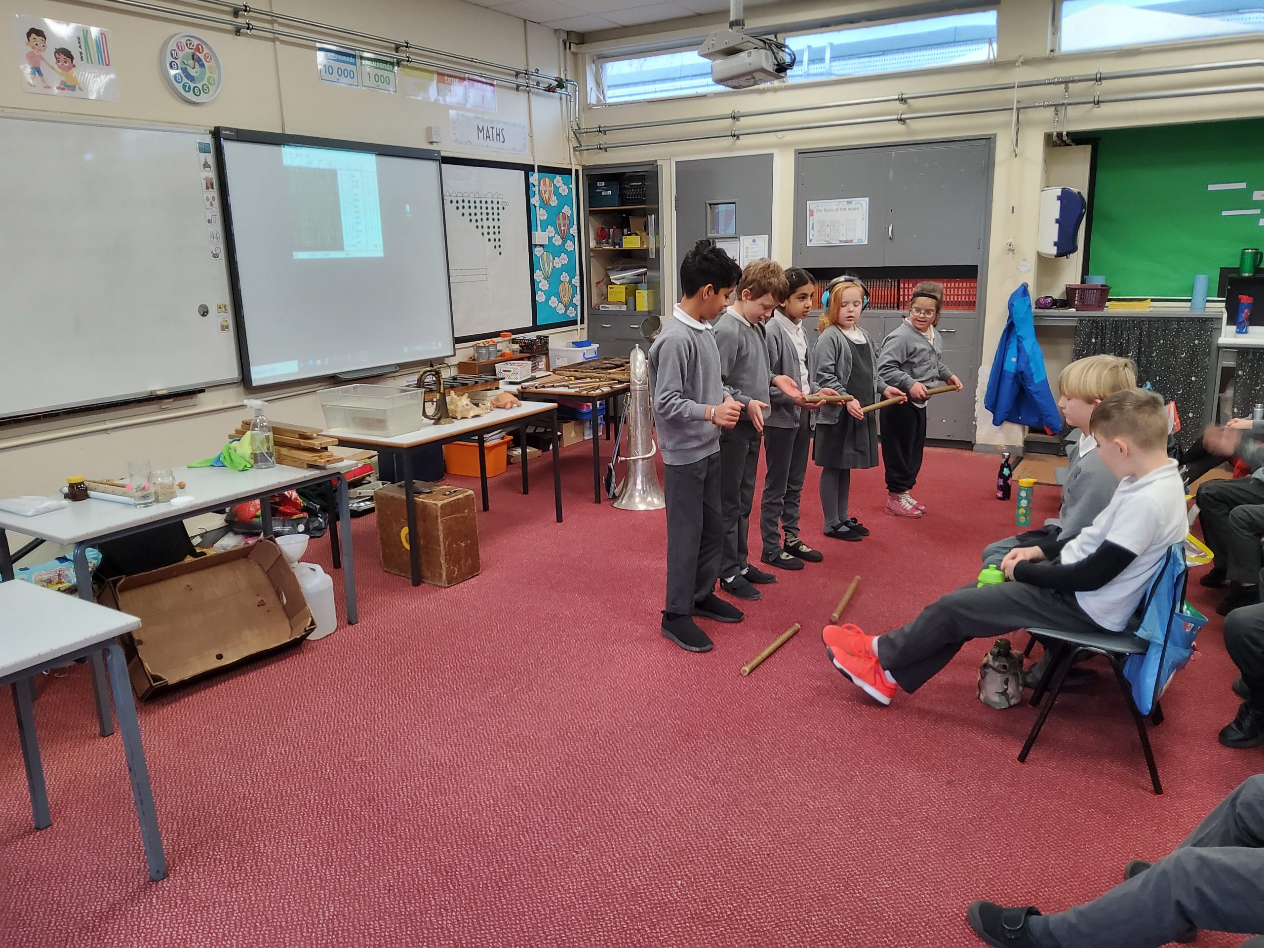 In the second half of the day, Sam worked with each class individually to demonstrate how to make a wide range of instriments from different items that you might have lying around. He also taught us crucial skills that we would need such as how to find the node on different materials and how to alter the pitch of a sound. At some point this term, the children will be putting this knowledge to use to create their own instruments (once we have a date confirmed for this, we will share it with you) so if you have any “junk materials” lying around, it might be a good idea to start collecting them. Of particular interest are the following items: