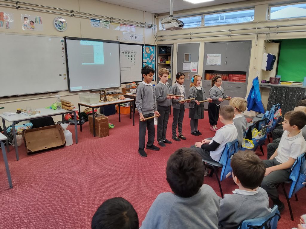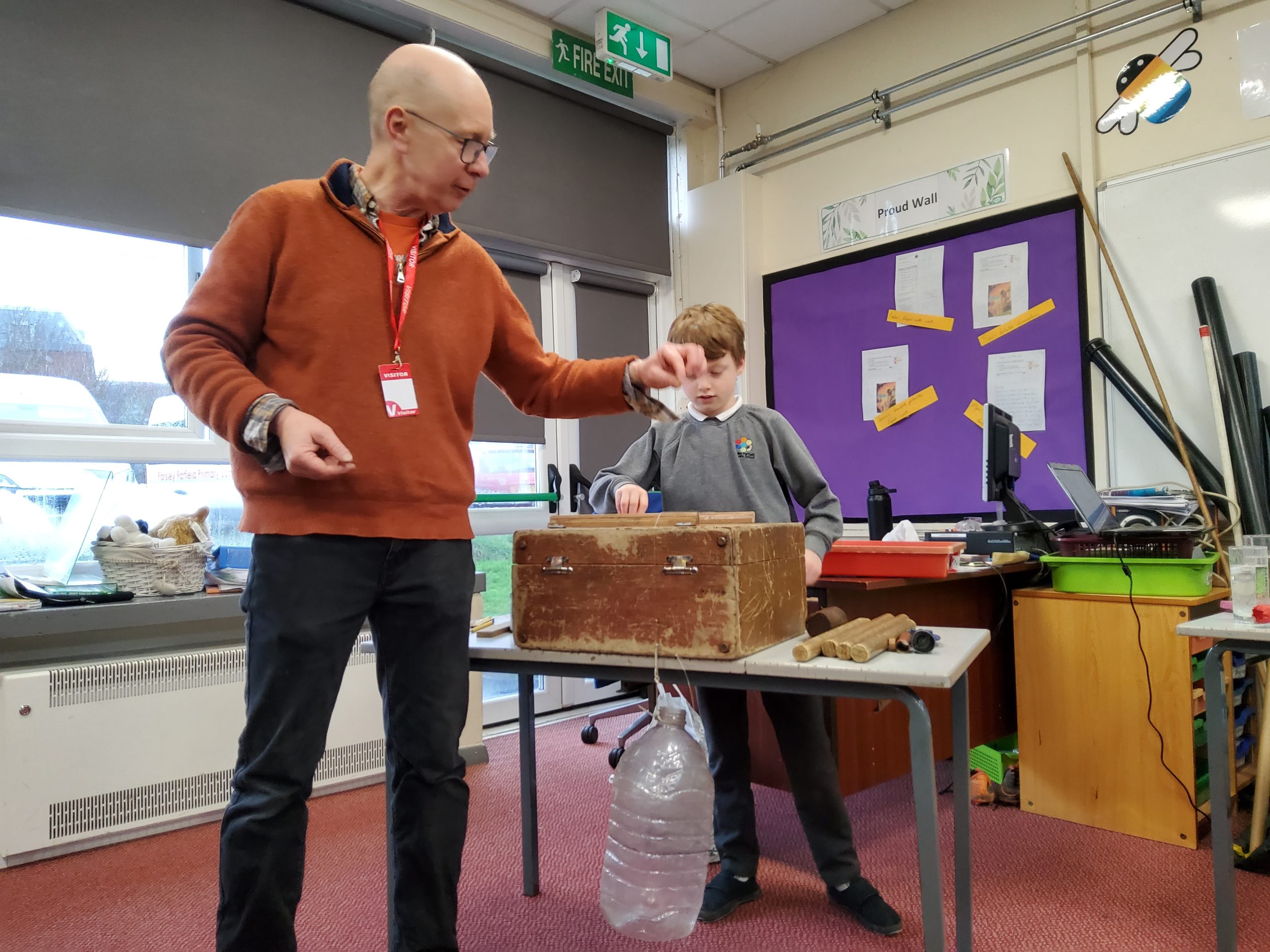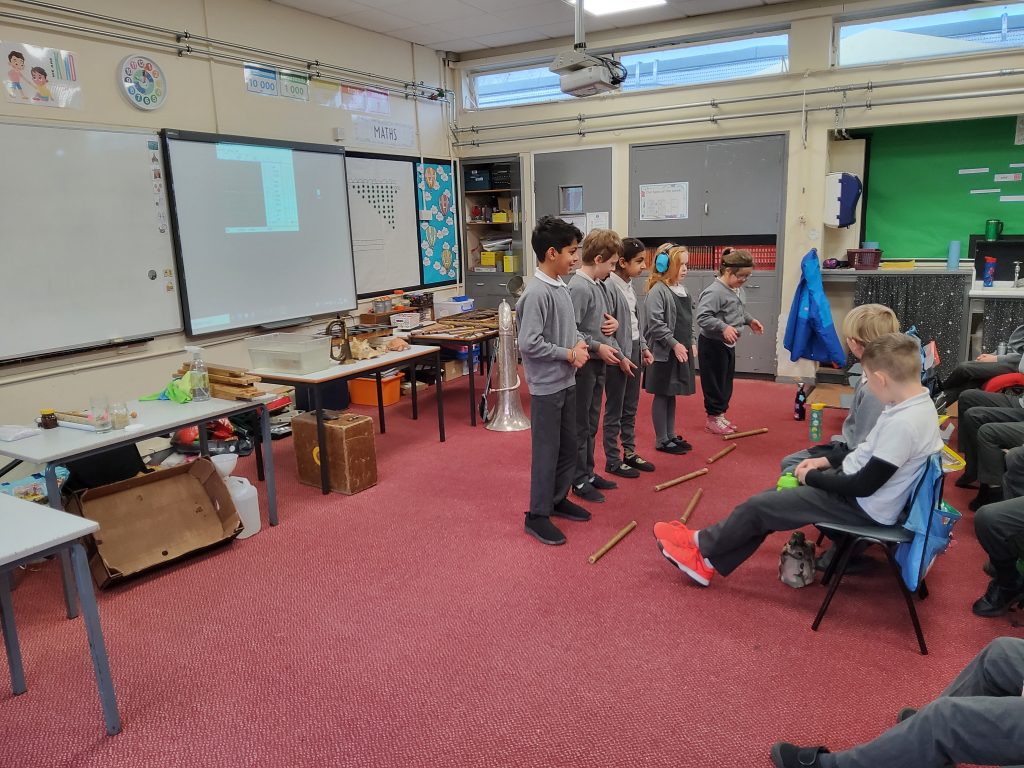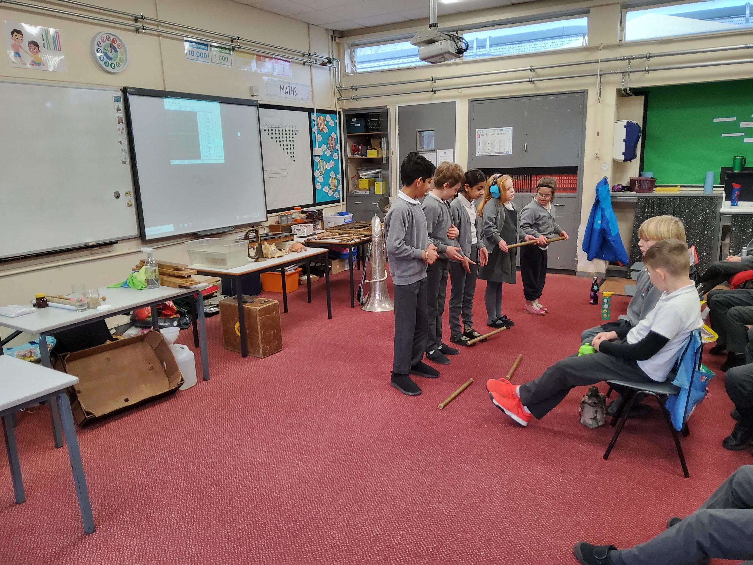 In the second half of the day, Sam worked with each class individually to demonstrate how to make a wide range of instriments from different items that you might have lying around. He also taught us crucial skills that we would need such as how to find the node on different materials and how to alter the pitch of a sound. At some point this term, the children will be putting this knowledge to use to create their own instruments (once we have a date confirmed for this, we will share it with you) so if you have any “junk materials” lying around, it might be a good idea to start collecting them. Of particular interest are the following items: