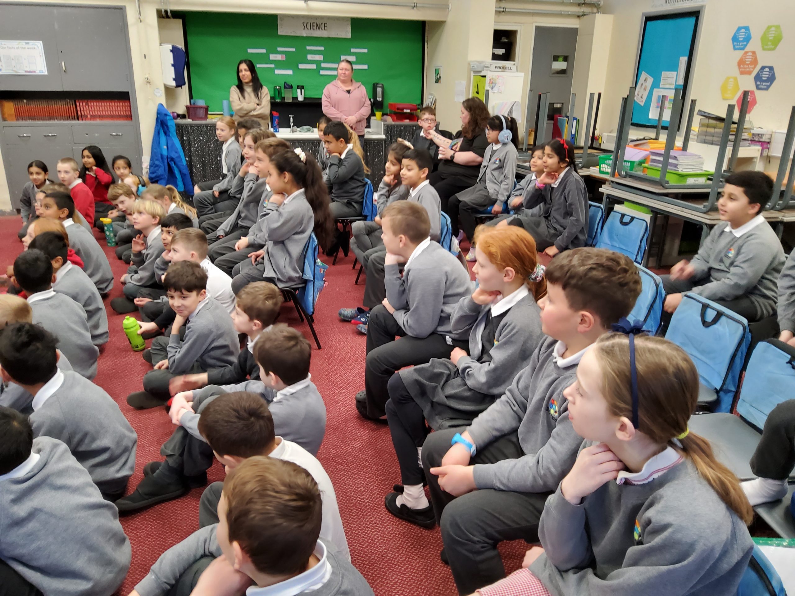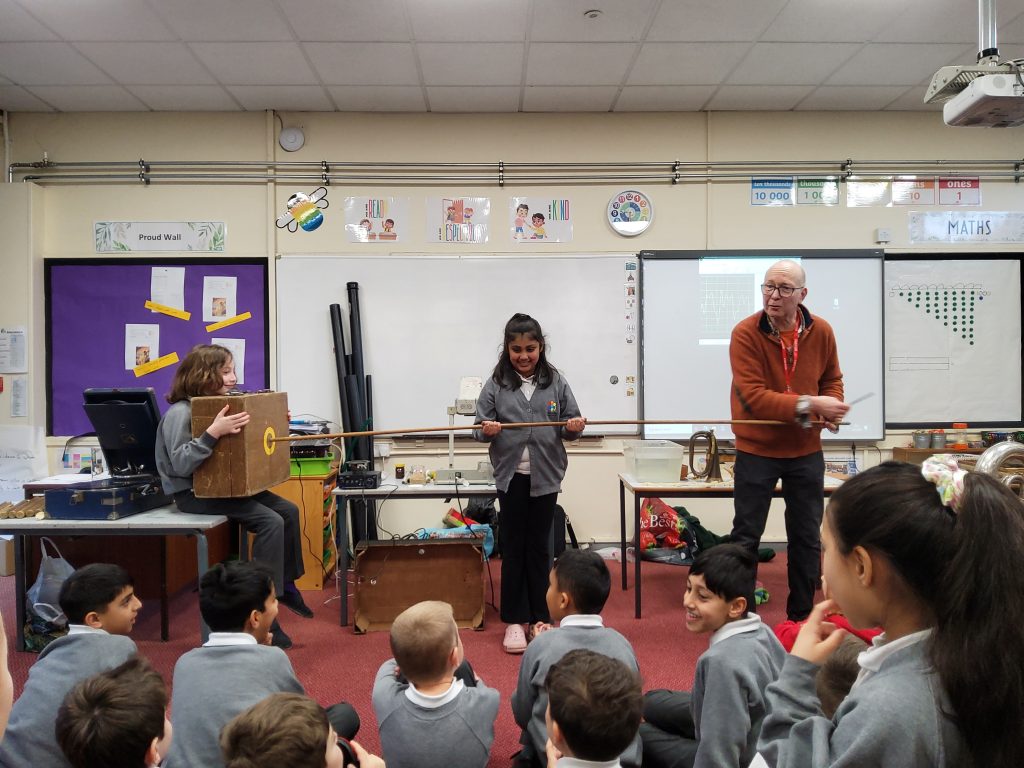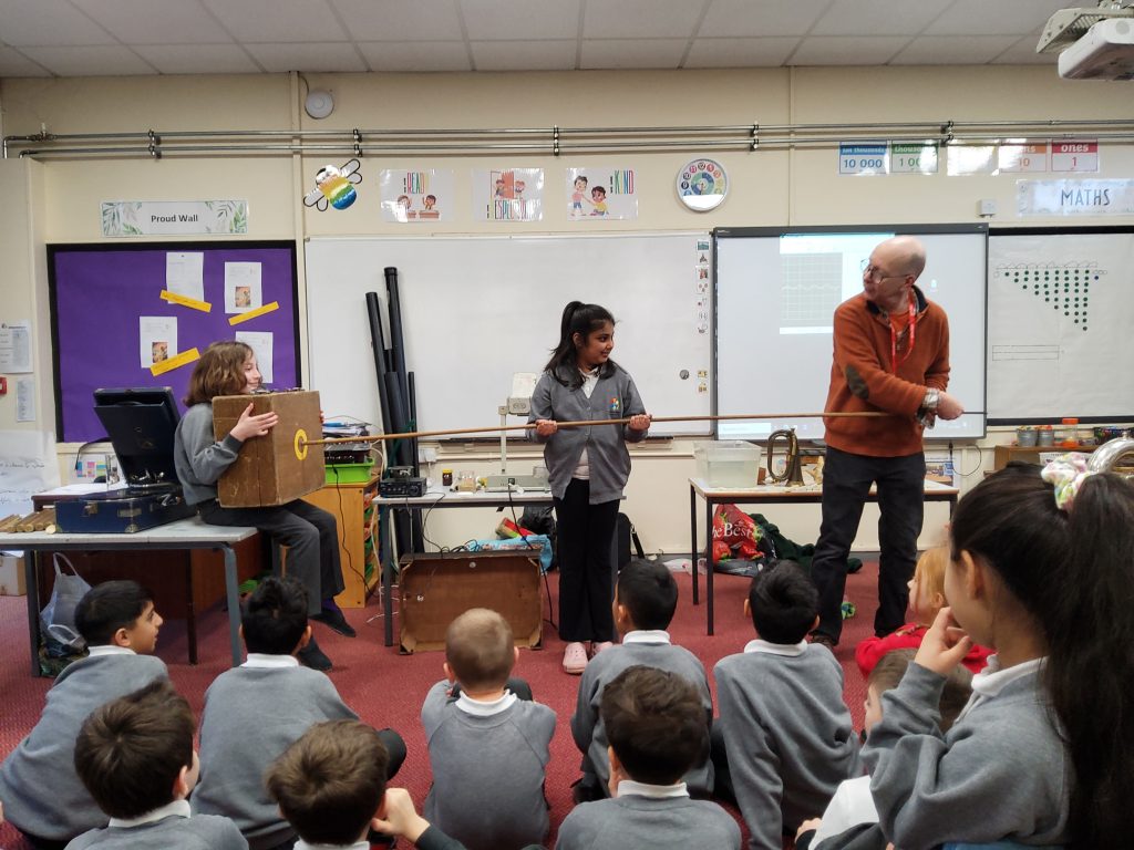 This week has been a very Science centric week. On Monday, we had the pleasure of joining a workshop led by “Sam the Sound Man”. We began with all of the children in 4NL, where he took us on a journey through sound, focusing primarily on how sounds are made and how they travel to our ears. The children were keen to engage by sharing their knoweldge and answering questions posed by Sam.