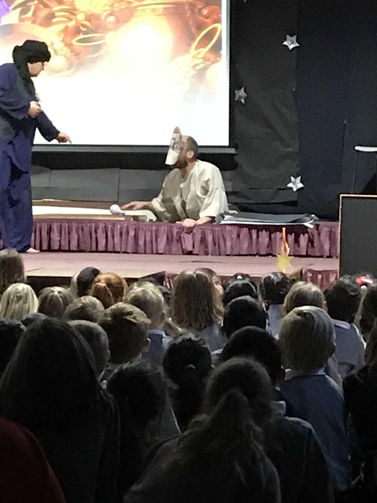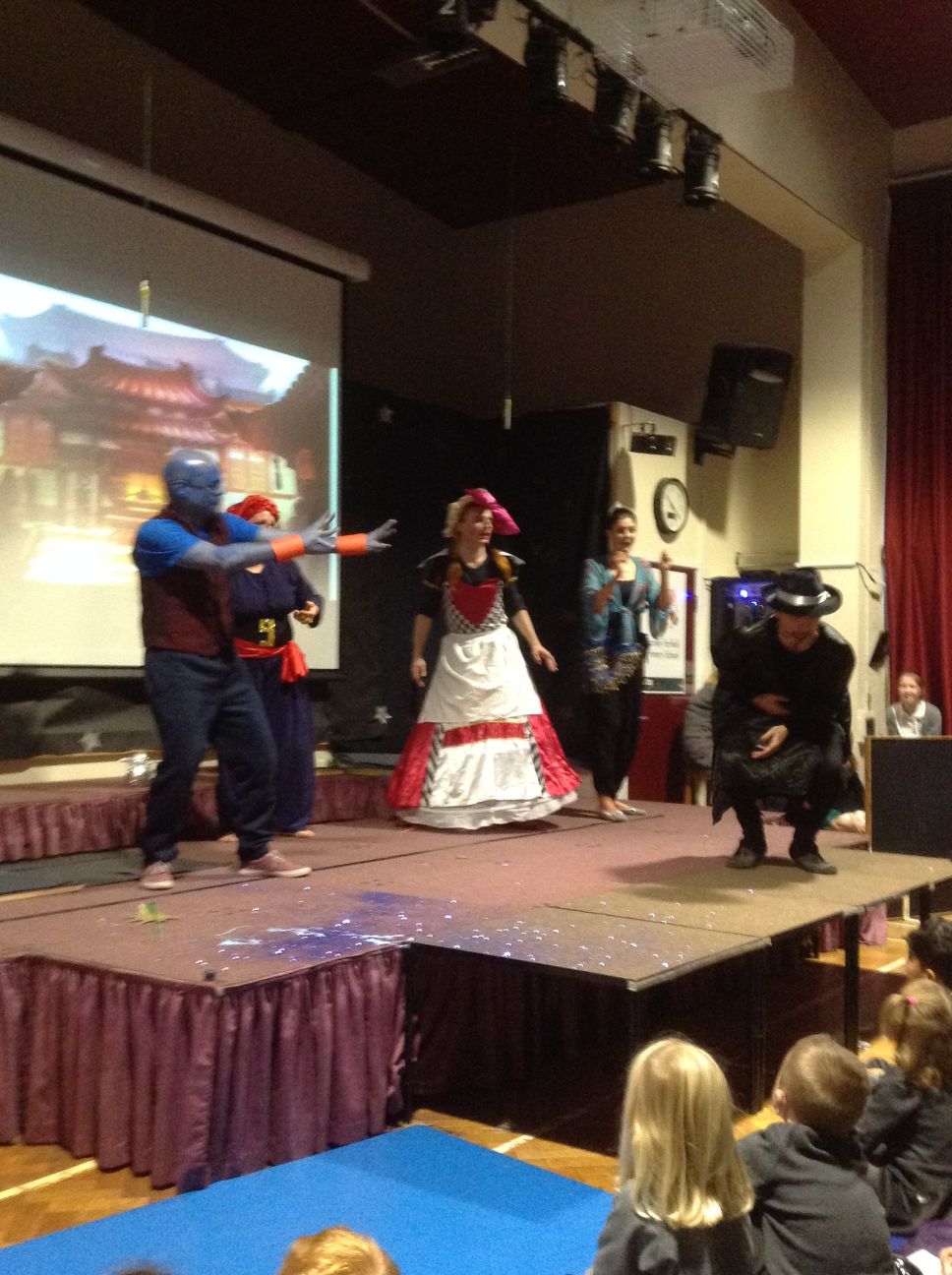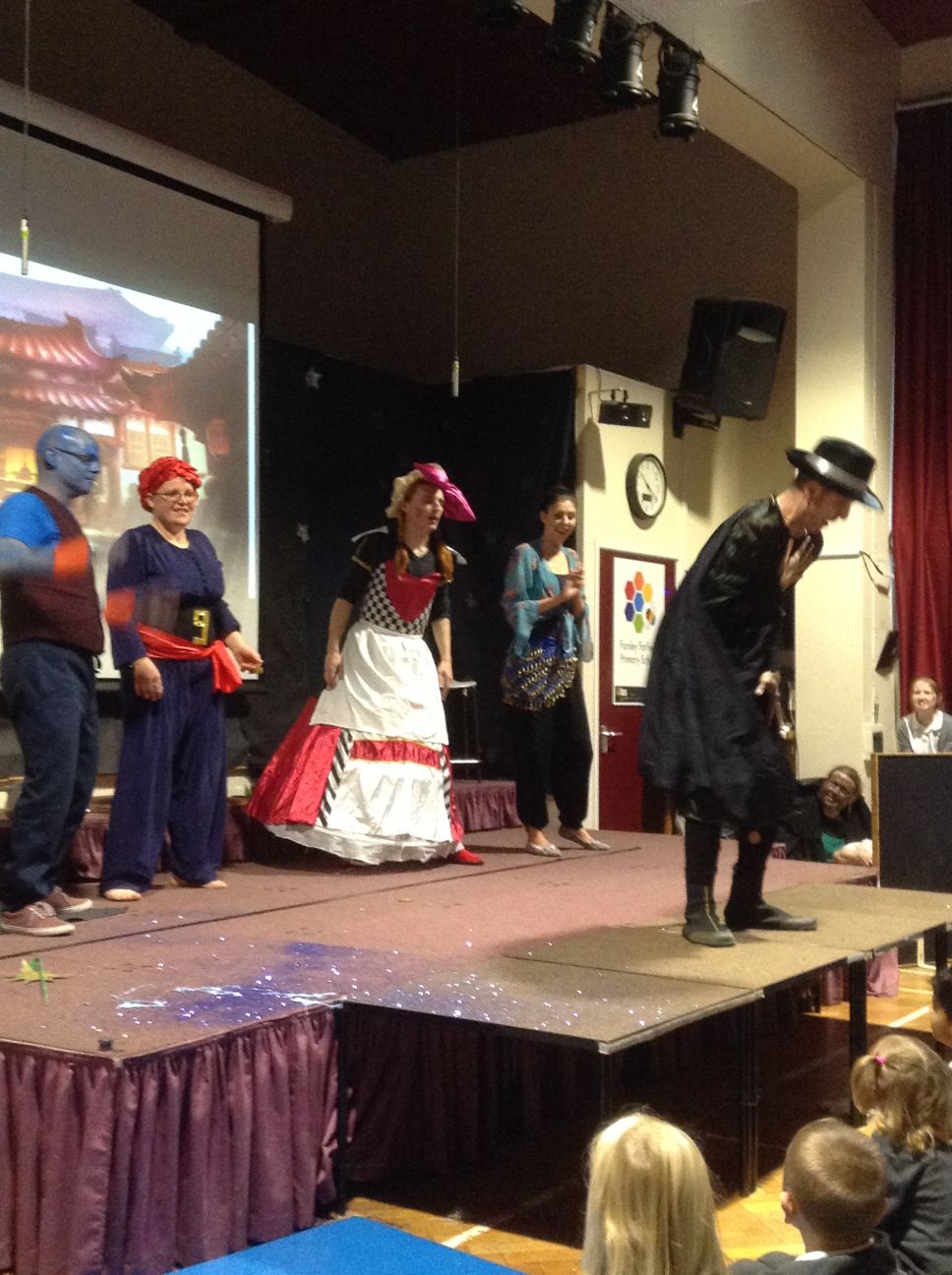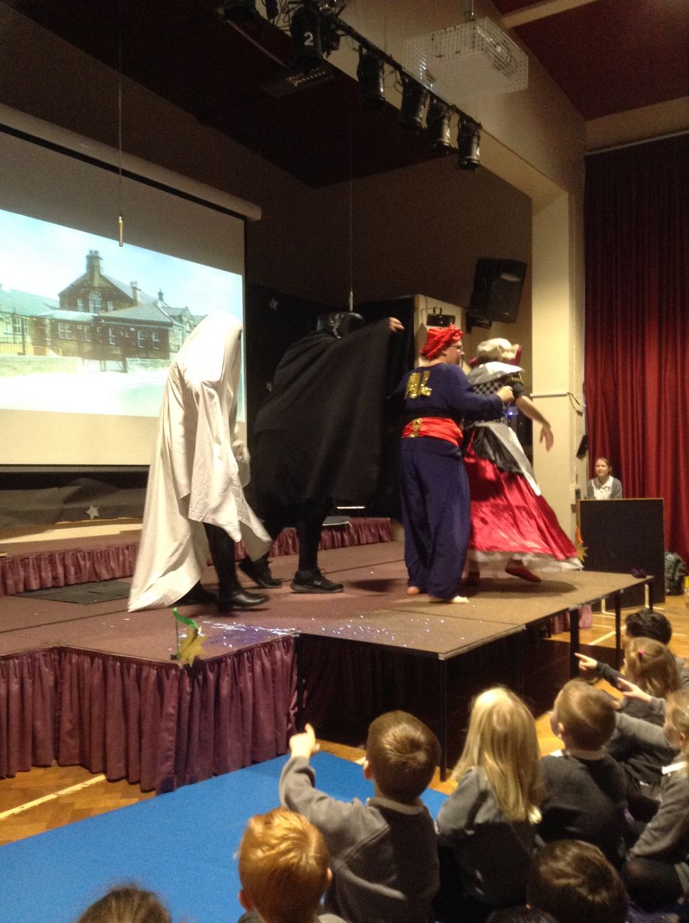 Your child may have come home tonight with strange tales of an unexpected panto at school this morning. I don’t know who the company were, but it was a surreal experience loosely around the story of Aladdin. The children seemed to love it and may have shouted themselves hoarse!