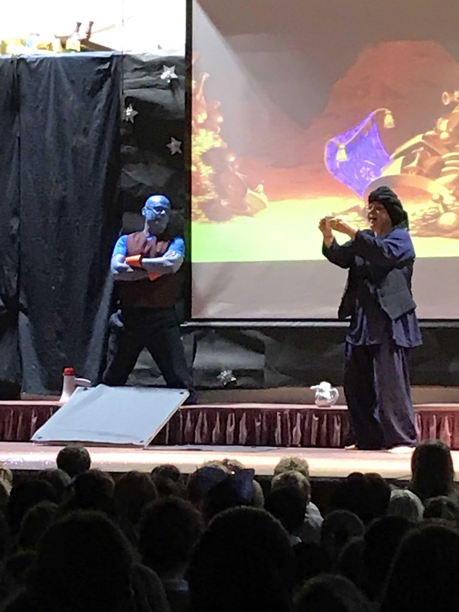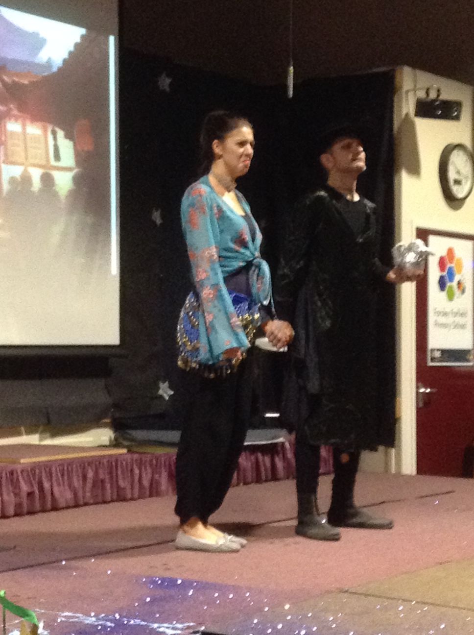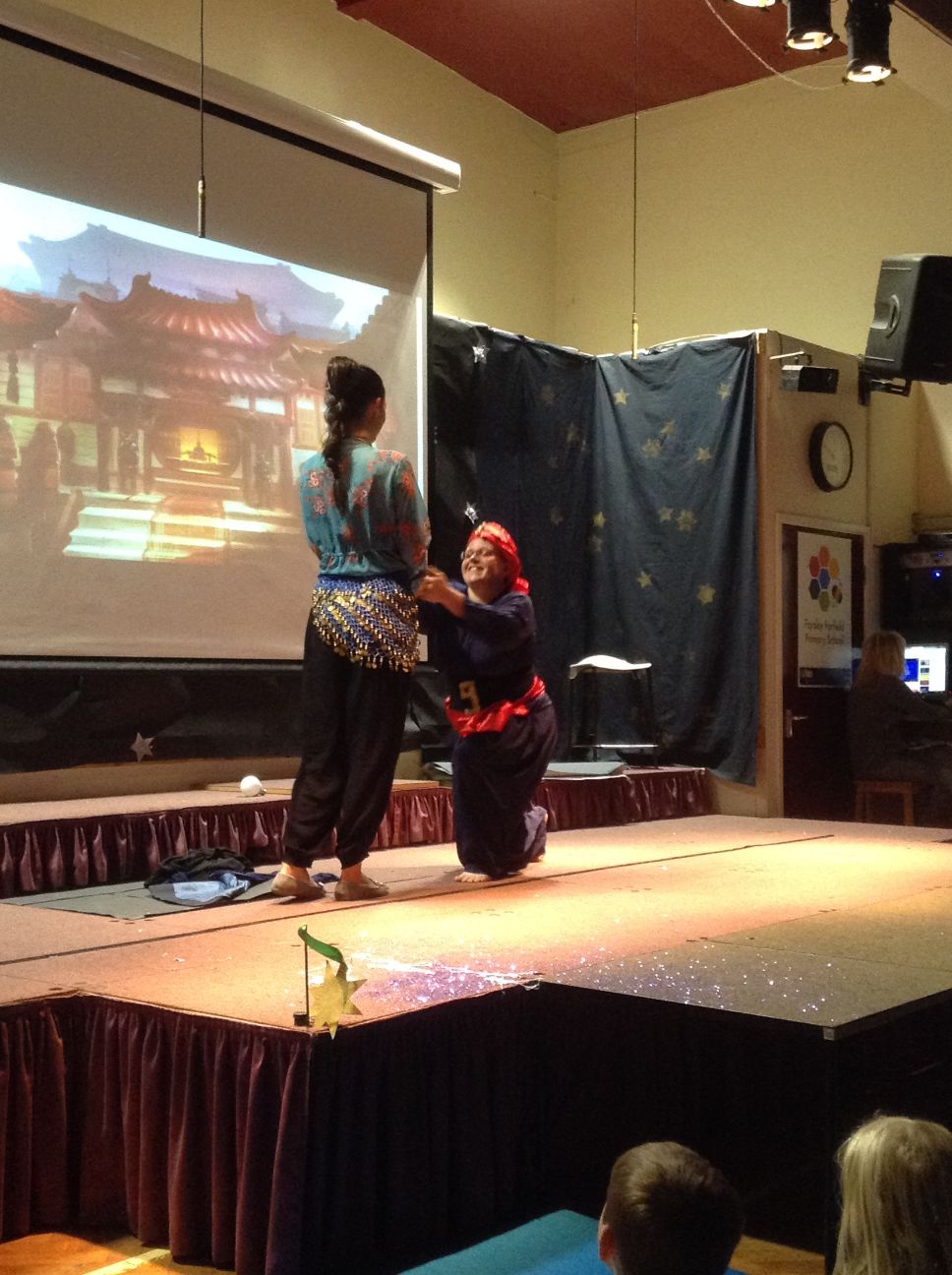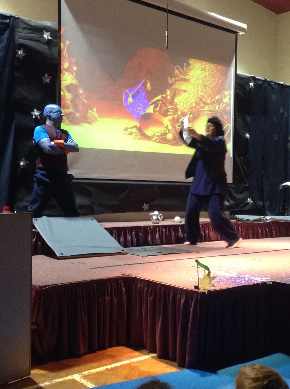 Your child may have come home tonight with strange tales of an unexpected panto at school this morning. I don’t know who the company were, but it was a surreal experience loosely around the story of Aladdin. The children seemed to love it and may have shouted themselves hoarse!