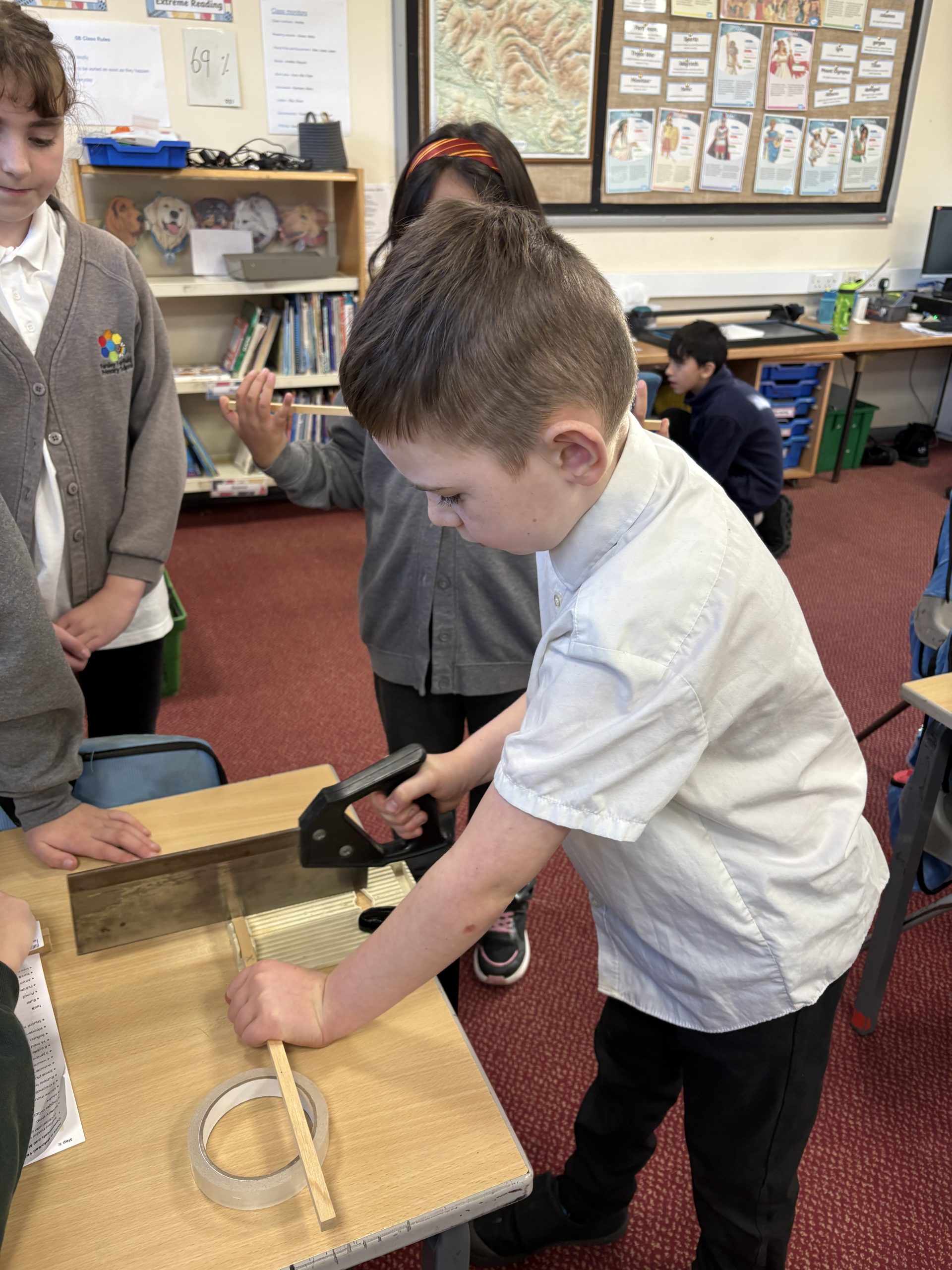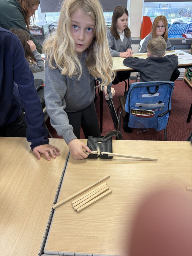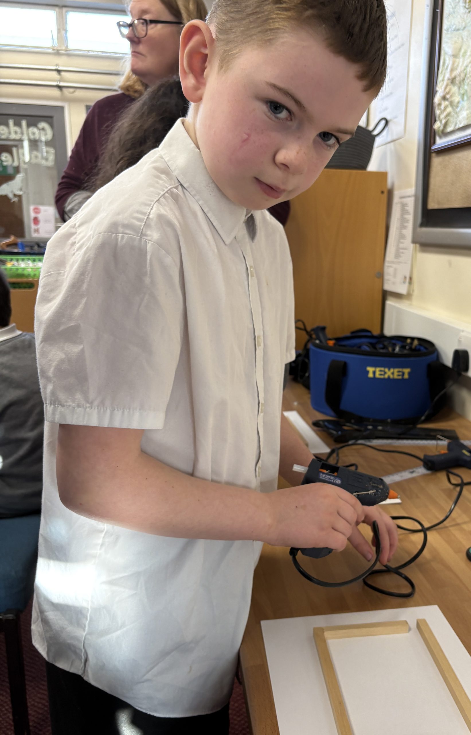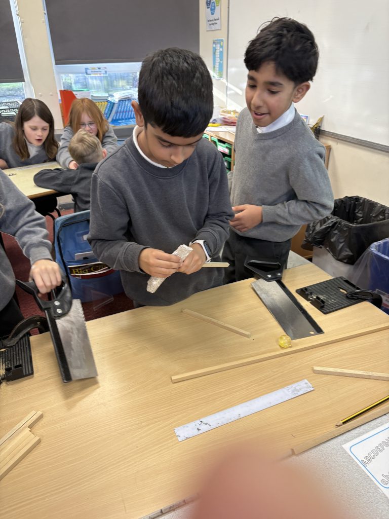 5B have started their DT project of building a moving Mars rover using wood and electrical componants. We have made the frame by sawing the square section wood and using glue guns to attach the pieces together. Due to the hazadous nature of the equipment and the fact that the children need supervising, there are only a few photos of them working. More will be taken when we move to the next stage of construction.