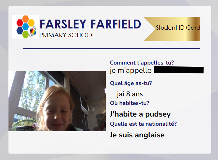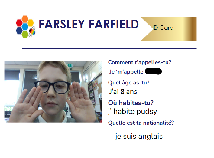 In French this half term we have been learning how to talk about ourselves, including saying our name, age, where we live and our nationality. Following this week’s Picture News assesmbly, 4SL were very interested in ID cards, so we decided to make our own ID cards giving our information in French.