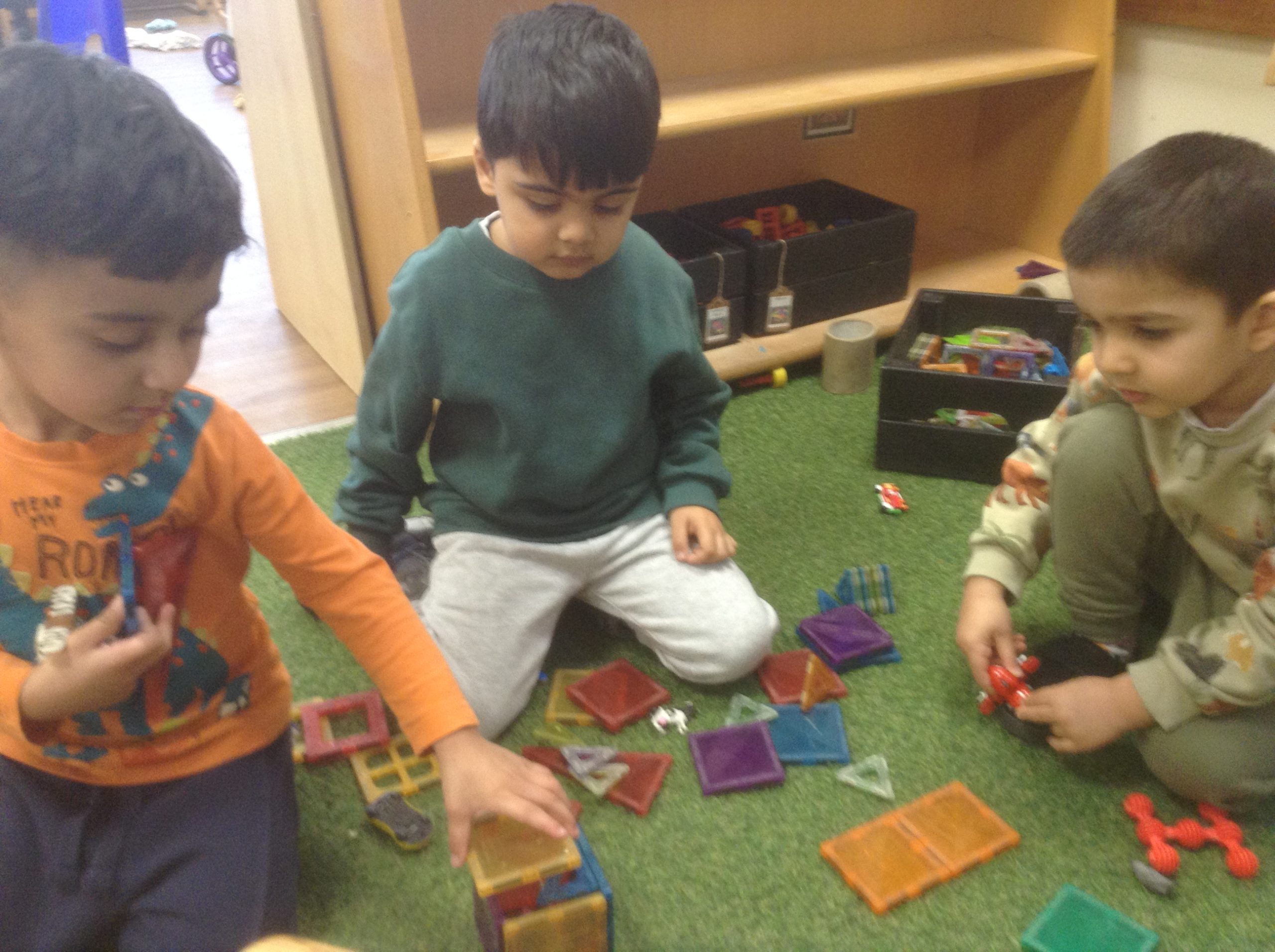 The weather has changed quite a bit this week. We still had a lot of ice on Monday and Tuesday but almost nothing by Wednesday. No ice later in the week meant we were able to get outside! We also spent some time in the hall completing yoga sessions and using the equipment (all exercise is good exercise.) The children have completed this term’s pictures/painting for their lockers, made scented playdough, got messy with jelly, had a go at some traditional Bhangra dancing, and practised our ‘Little Pig’ song.
