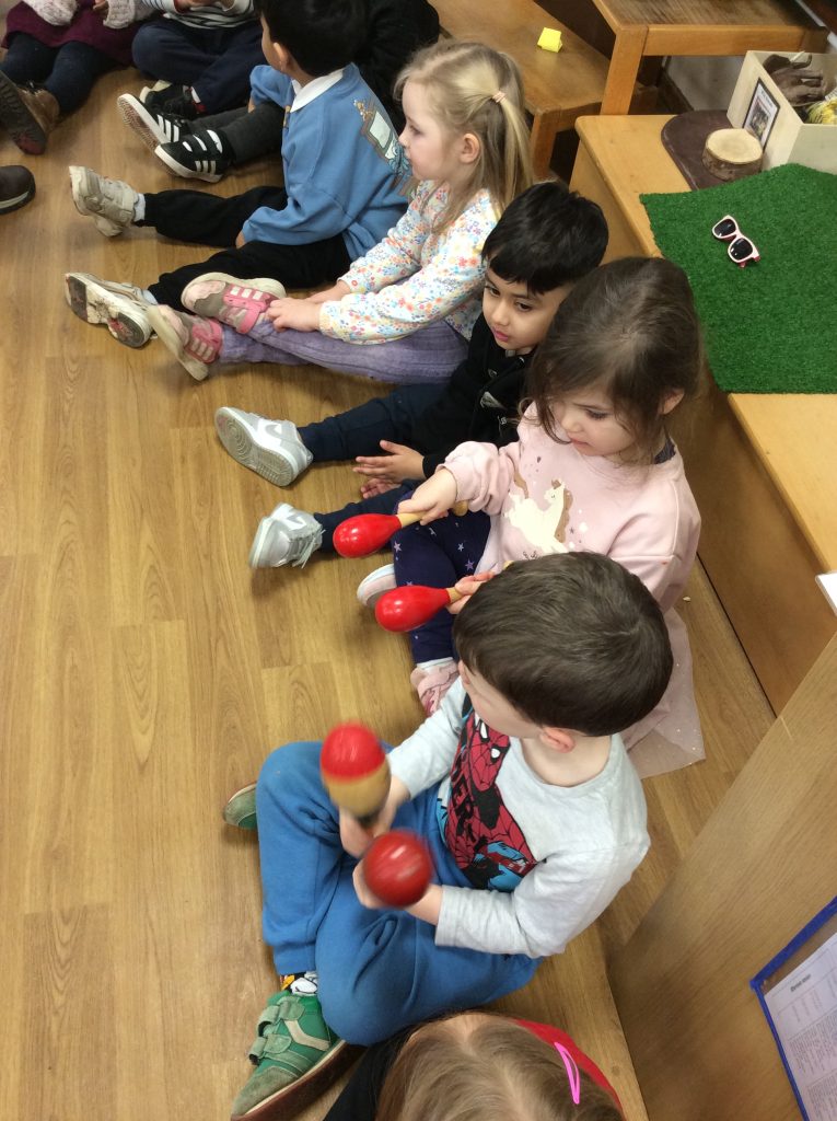 We have been using our listening skills to distinguish between instruments from around the world. The children then listened to sounds produced by an instrument and recreated the sound.