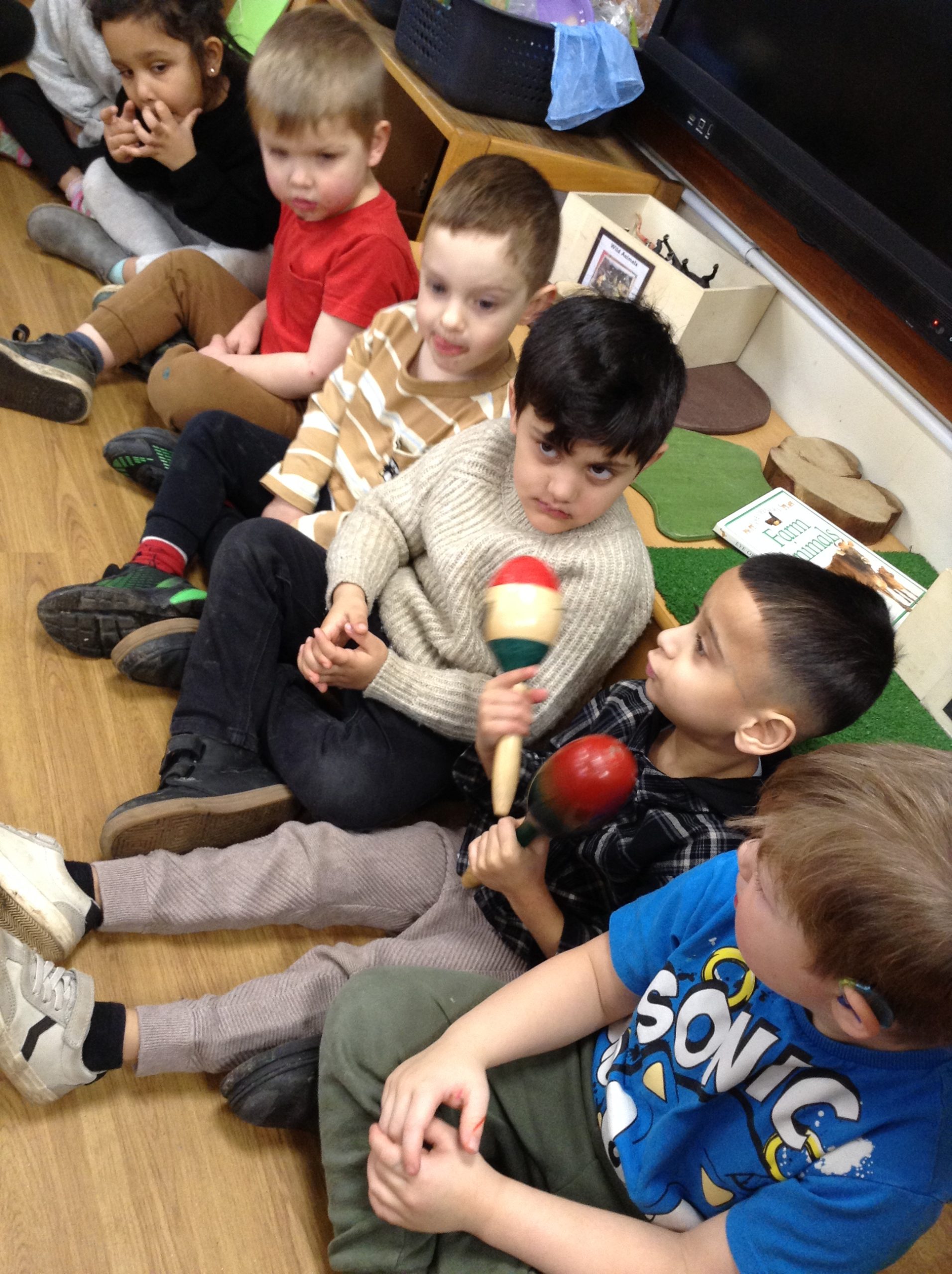 We have been using our listening skills to distinguish between instruments from around the world. The children then listened to sounds produced by an instrument and recreated the sound.