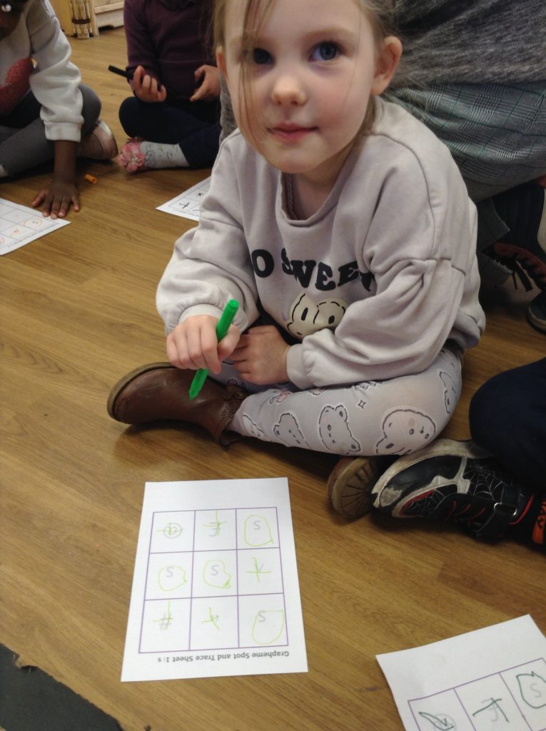 This week, we continued to explore the phoneme/grapheme for ‘s’. The children practised forming the grapheme and also used a grid to find it amongst different symbols. We are really impressed with their formation.