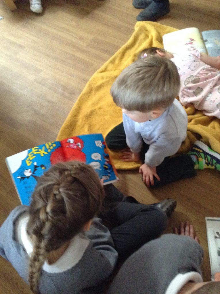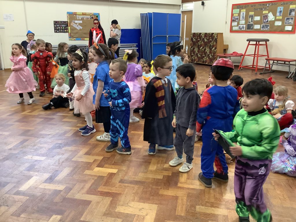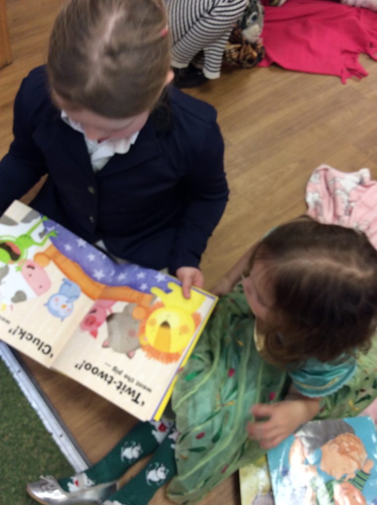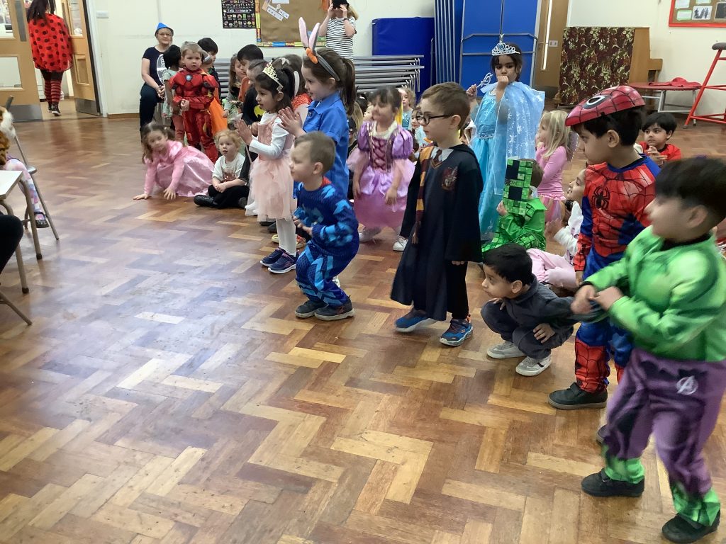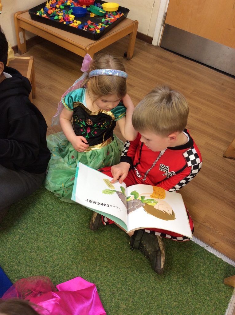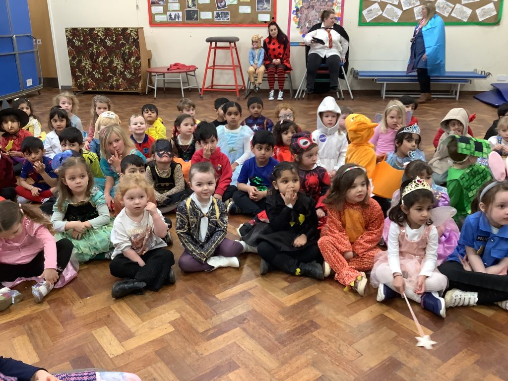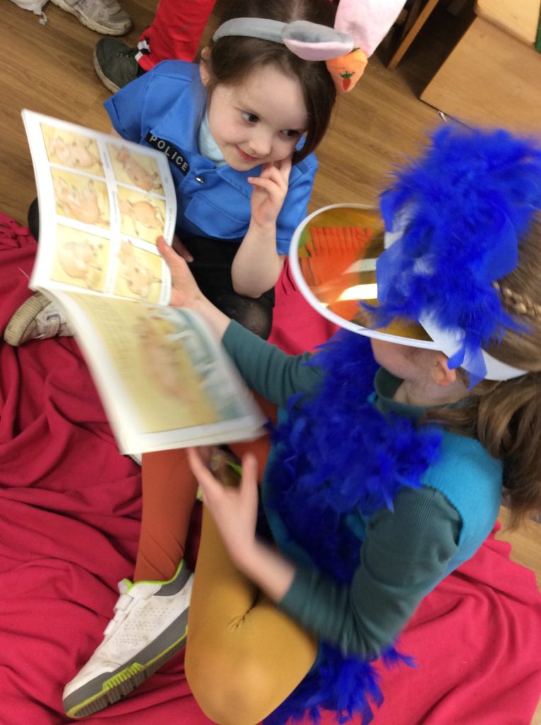 We celebrated over several days to ensure that every child in our nursery could participate. I hope everyone has taken home a new book to read and keep. Each child should also have received a book voucher. We welcomed our Year 3 reading buddies on Tuesday and Thursday, and we enjoyed having older children read stories to us. We got to show off our outfits and listen to lots of stories.