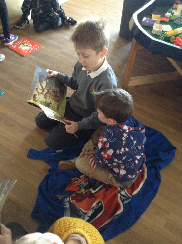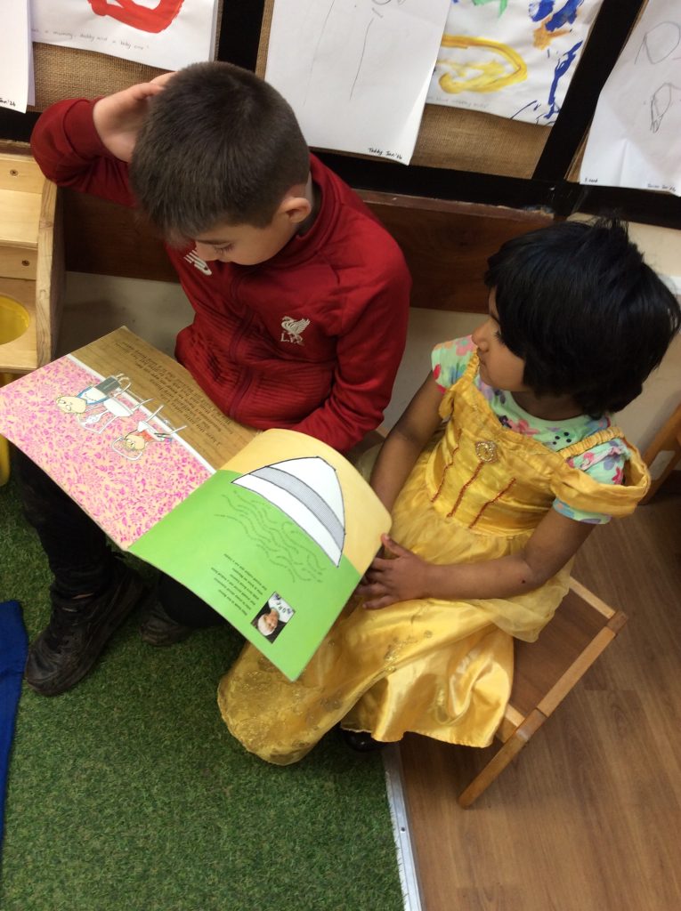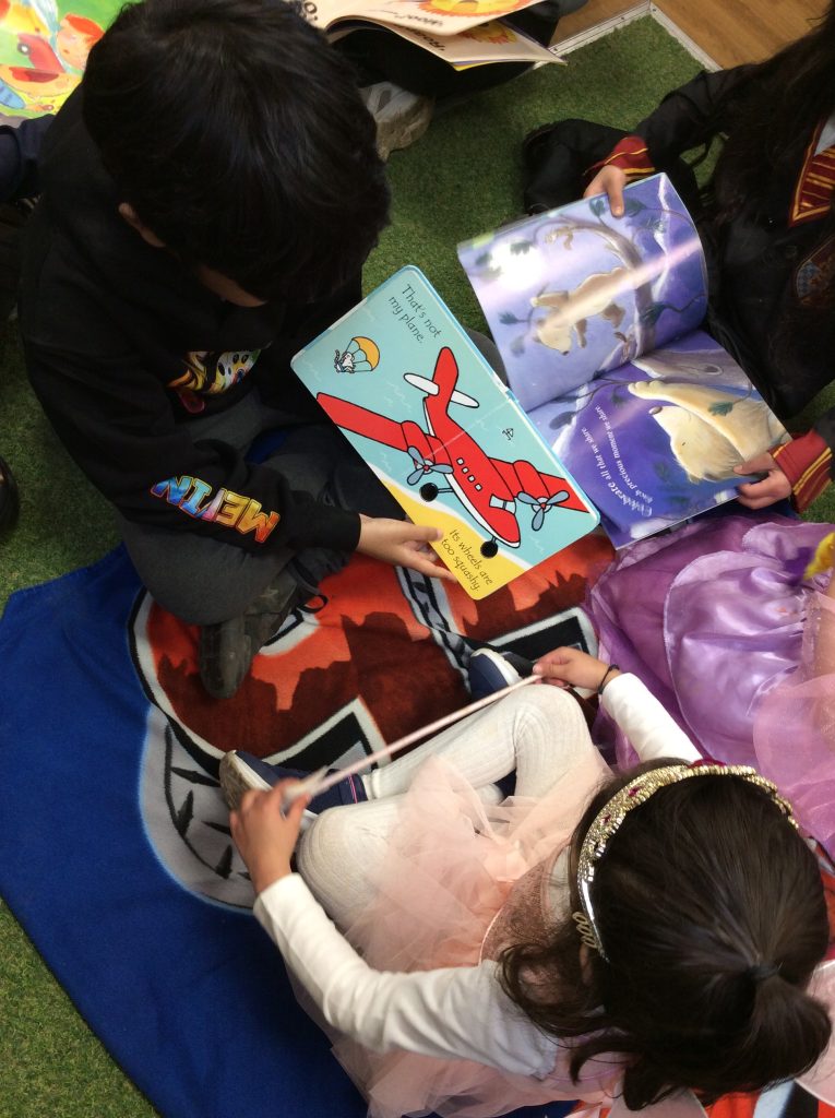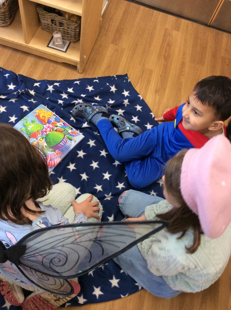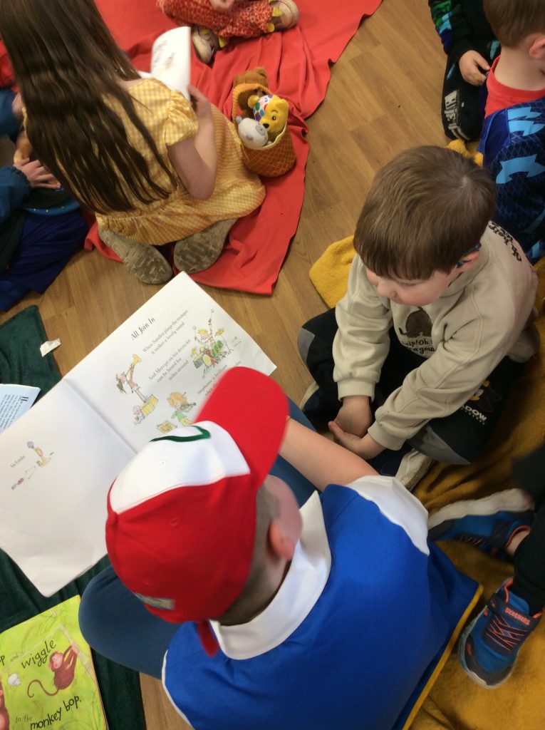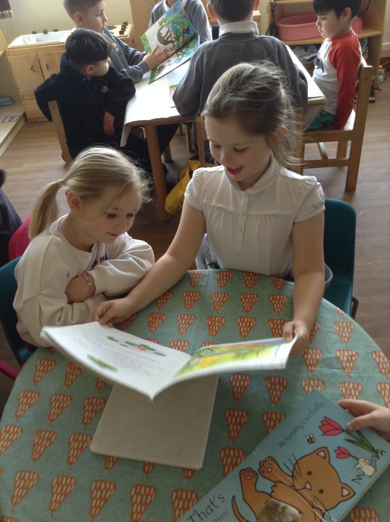We celebrated over several days to ensure that every child in our nursery could participate. I hope everyone has taken home a new book to read and keep. Each child should also have received a book voucher. We welcomed our Year 3 reading buddies on Tuesday and Thursday, and we enjoyed having older children read stories to us. We got to show off our outfits and listen to lots of stories.