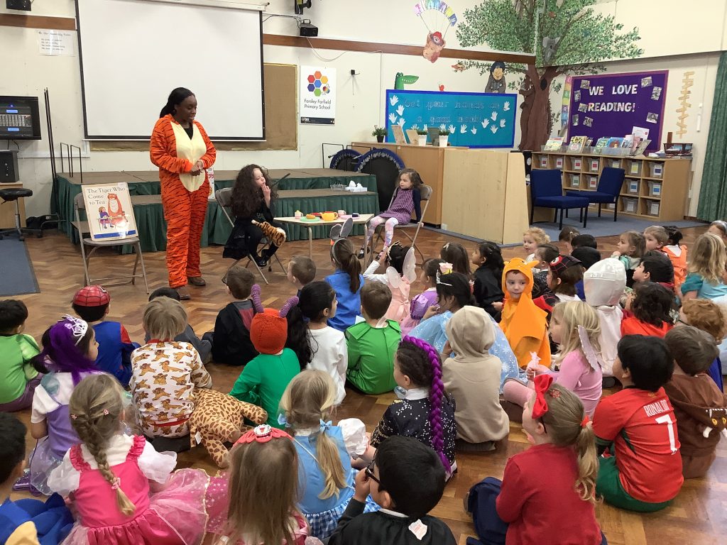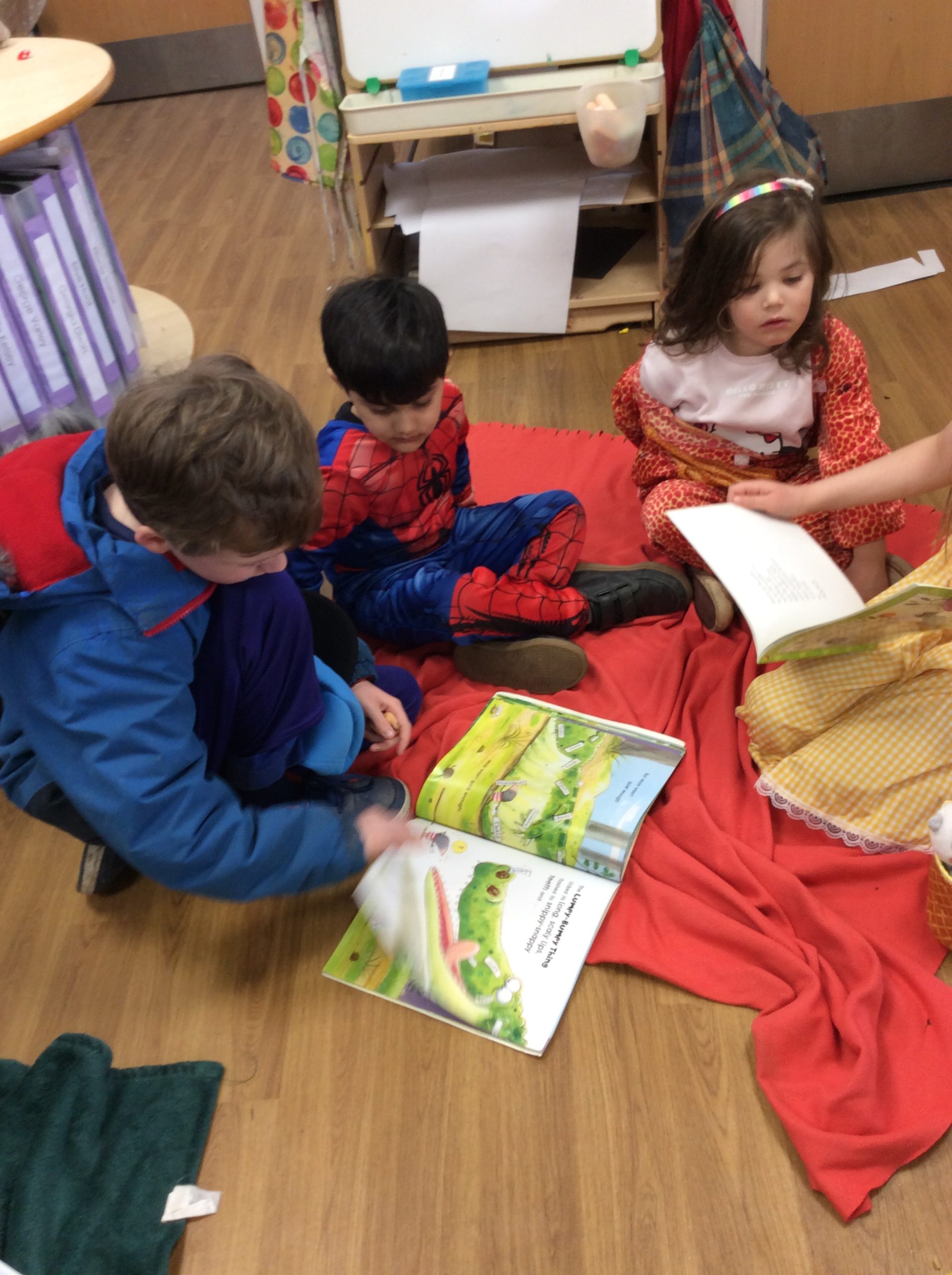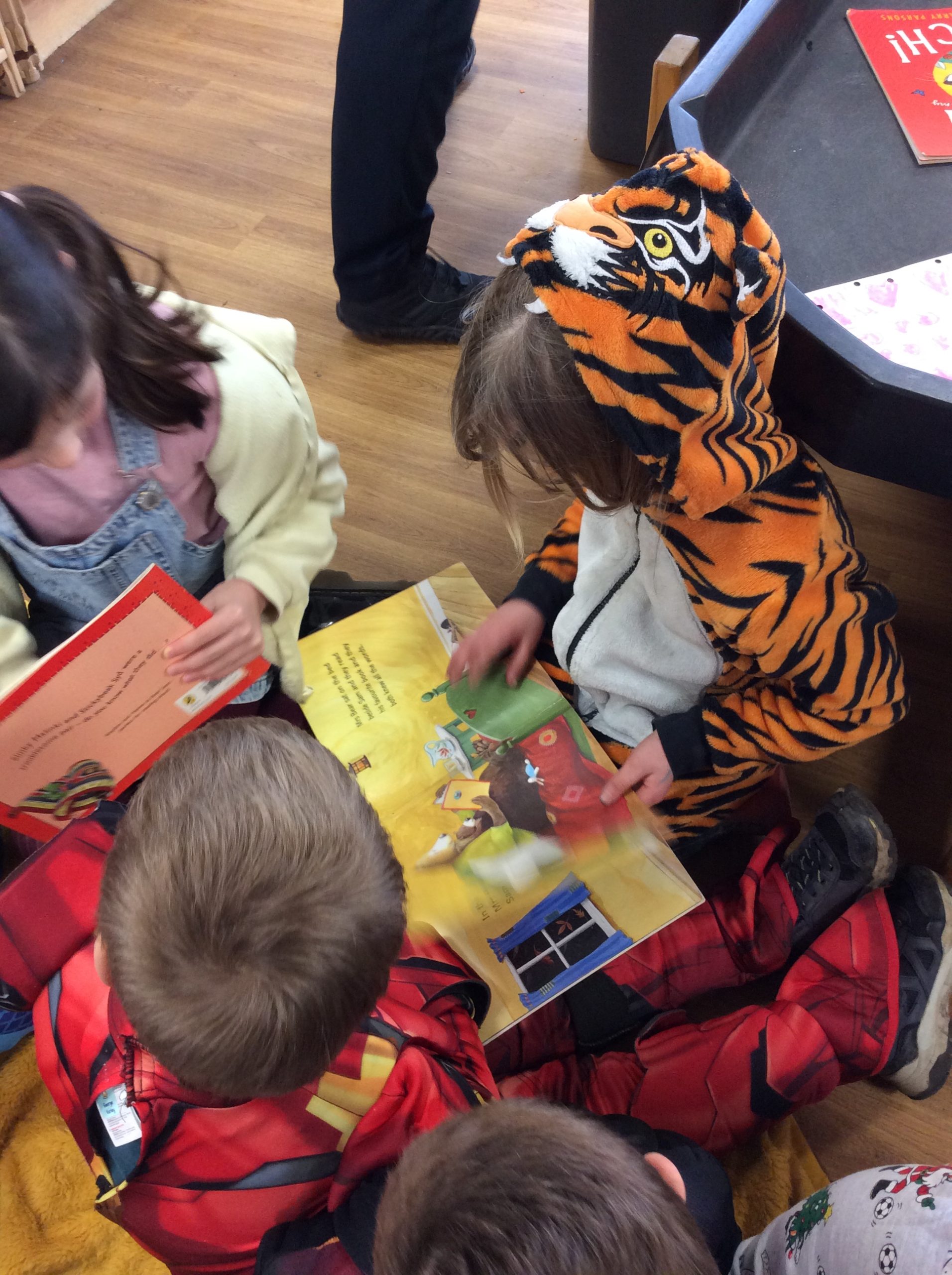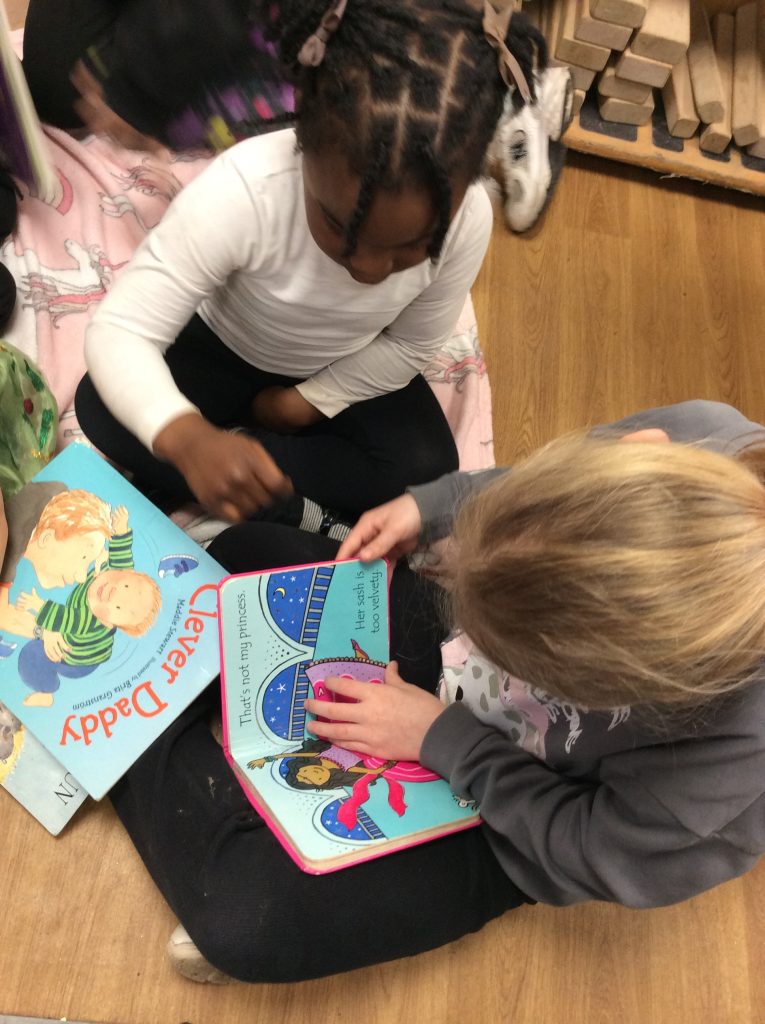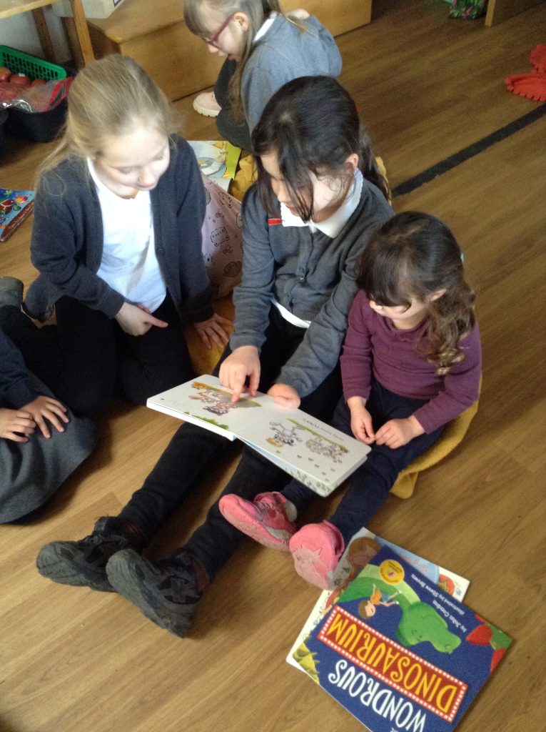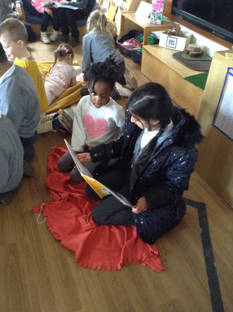 We celebrated over several days to ensure that every child in our nursery could participate. I hope everyone has taken home a new book to read and keep. Each child should also have received a book voucher. We welcomed our Year 3 reading buddies on Tuesday and Thursday, and we enjoyed having older children read stories to us. We got to show off our outfits and listen to lots of stories.