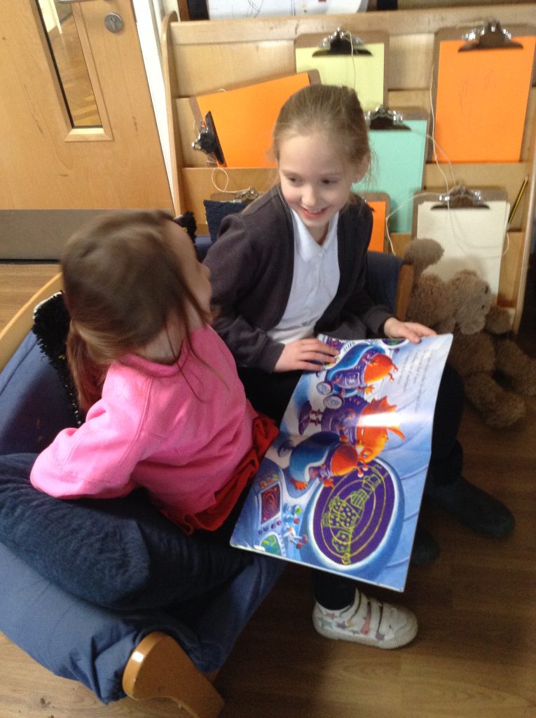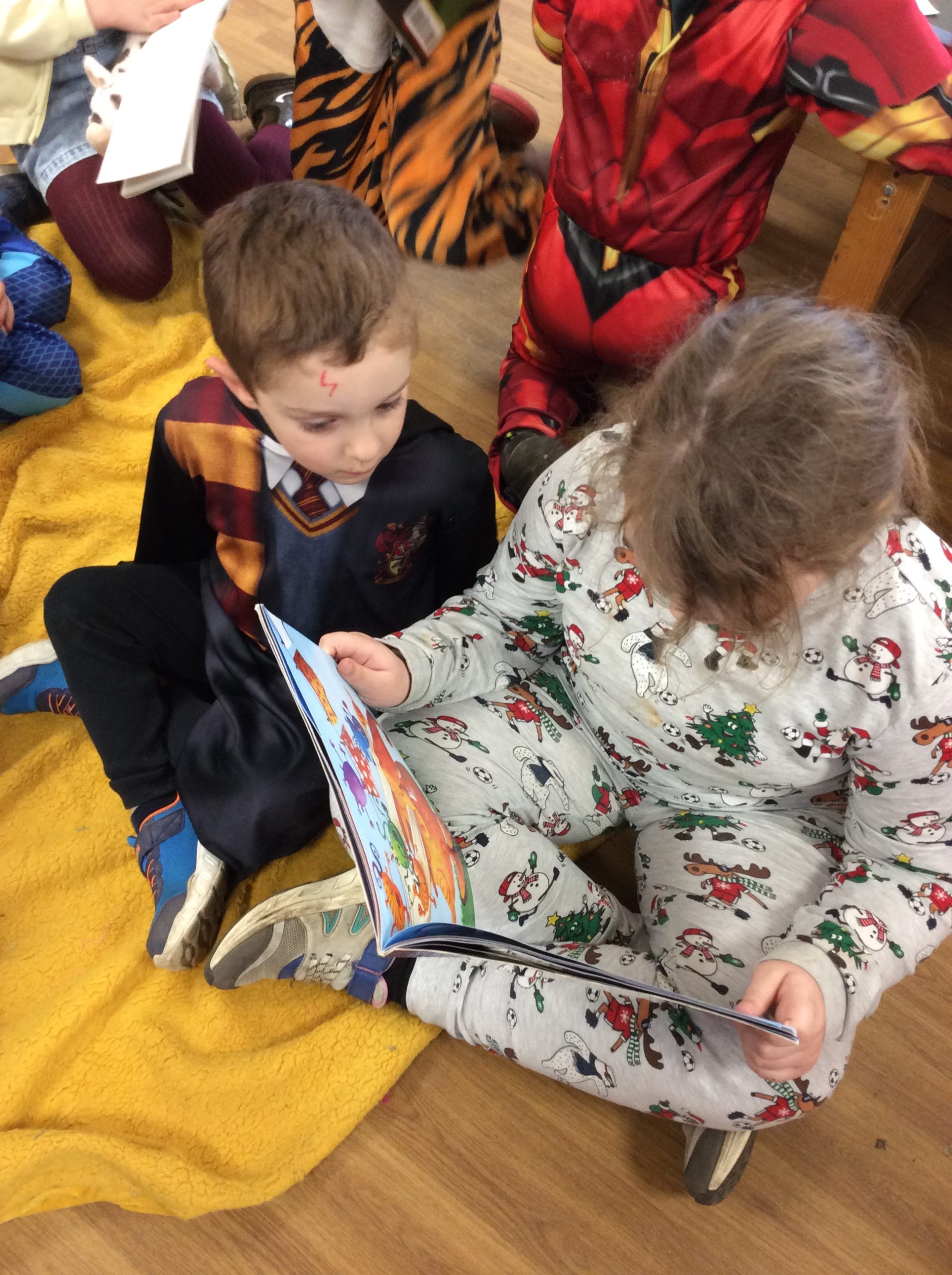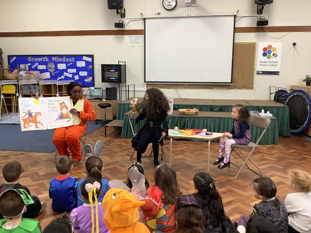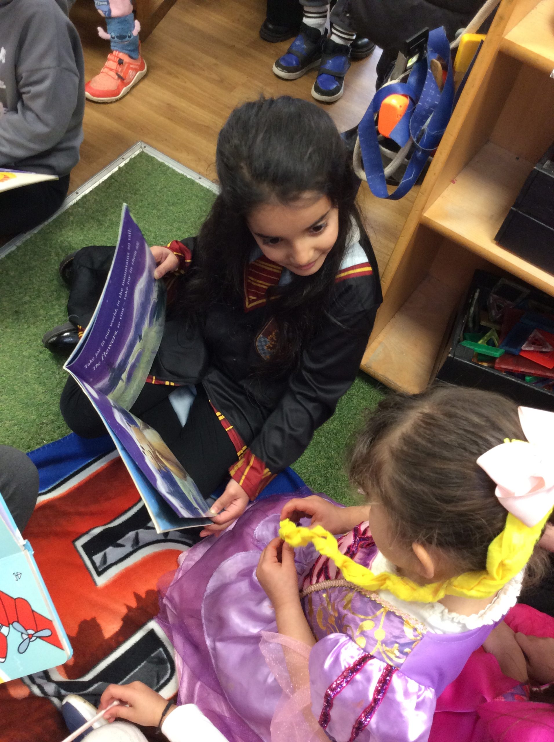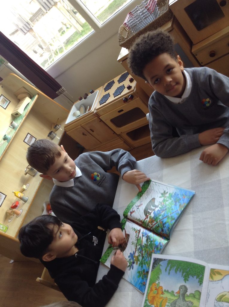 We celebrated over several days to ensure that every child in our nursery could participate. I hope everyone has taken home a new book to read and keep. Each child should also have received a book voucher. We welcomed our Year 3 reading buddies on Tuesday and Thursday, and we enjoyed having older children read stories to us. We got to show off our outfits and listen to lots of stories.