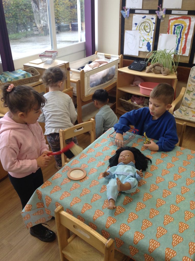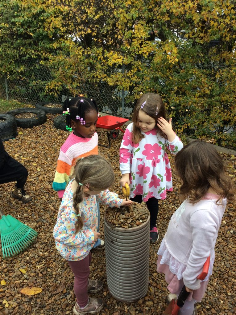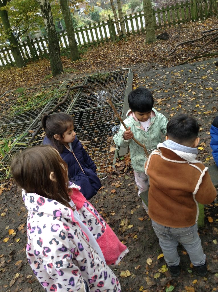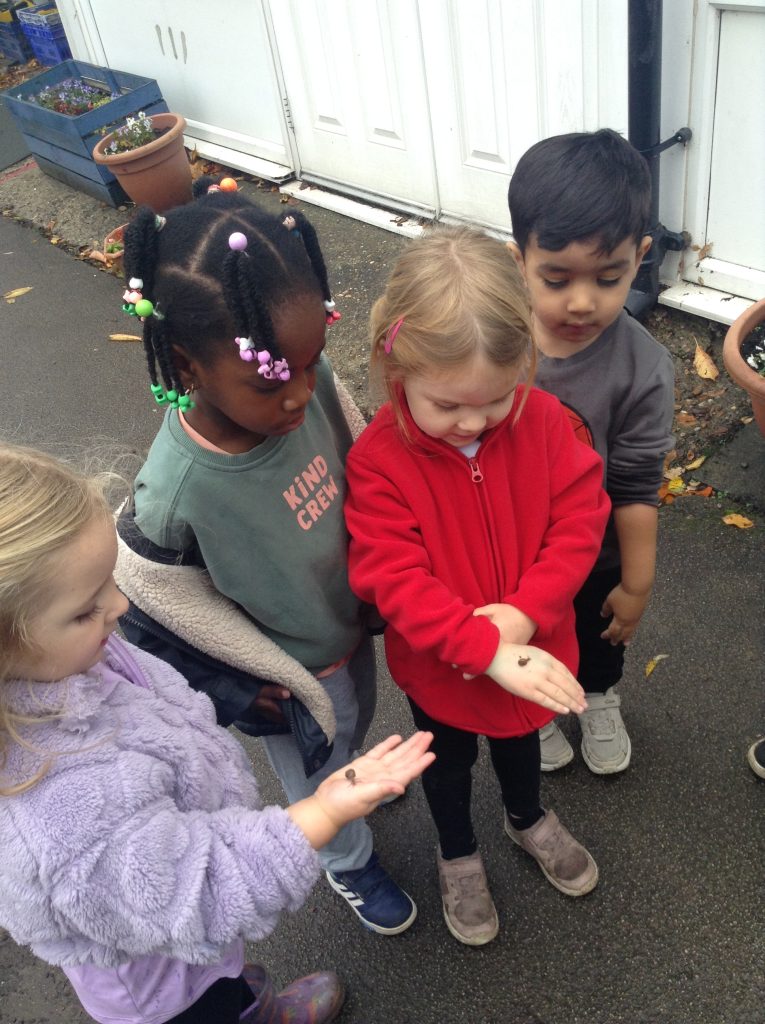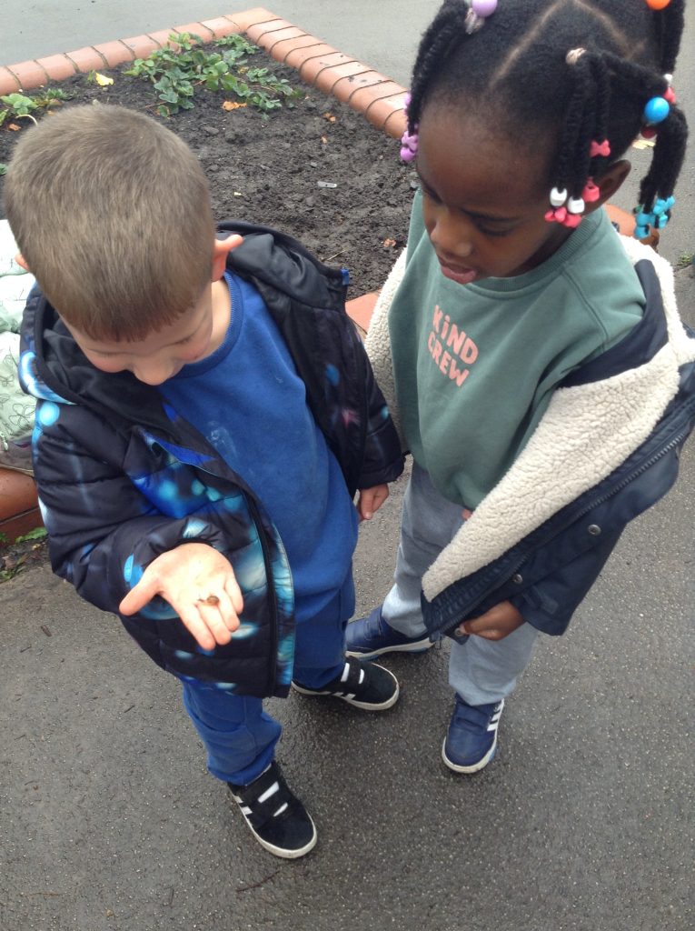 This week, the children explored different emotions and used puppets and mirrors to express and match those emotions. We discovered some snails and observed them as they moved, leaving trails behind. The children were also curious about the creatures that inhabit the ocean. We spent some time in the conservation area, where some children made “dancing sticks.” To keep our outdoor area tidy, we have been sweeping up a lot of leaves, although more continue to fall…