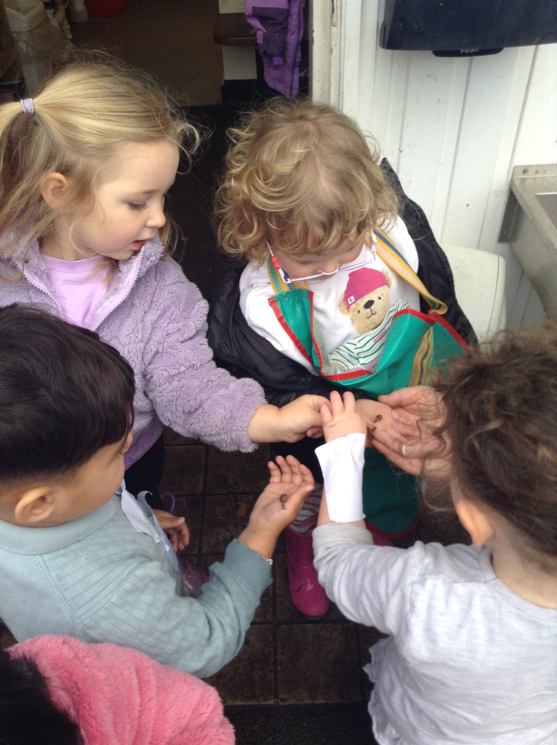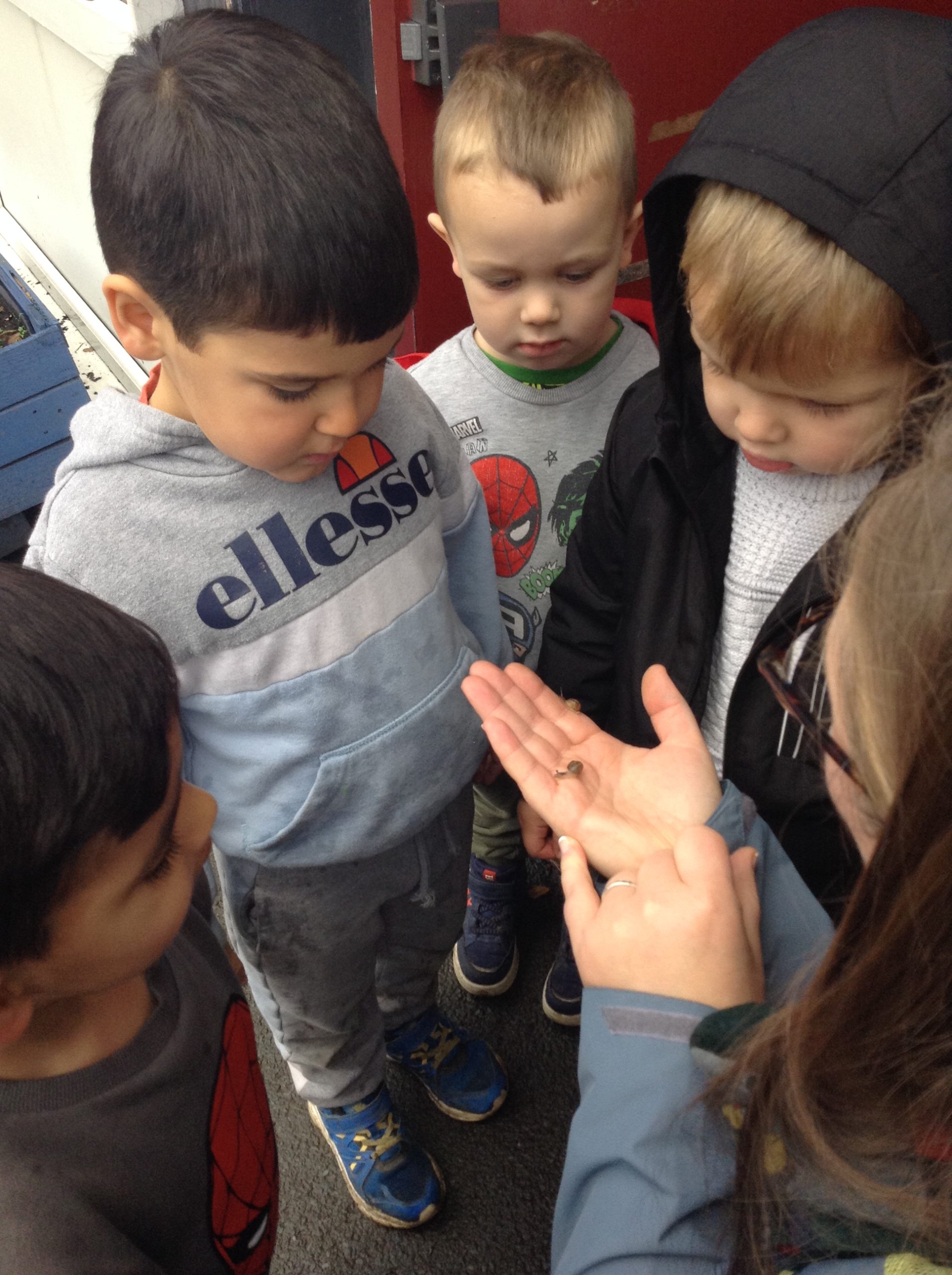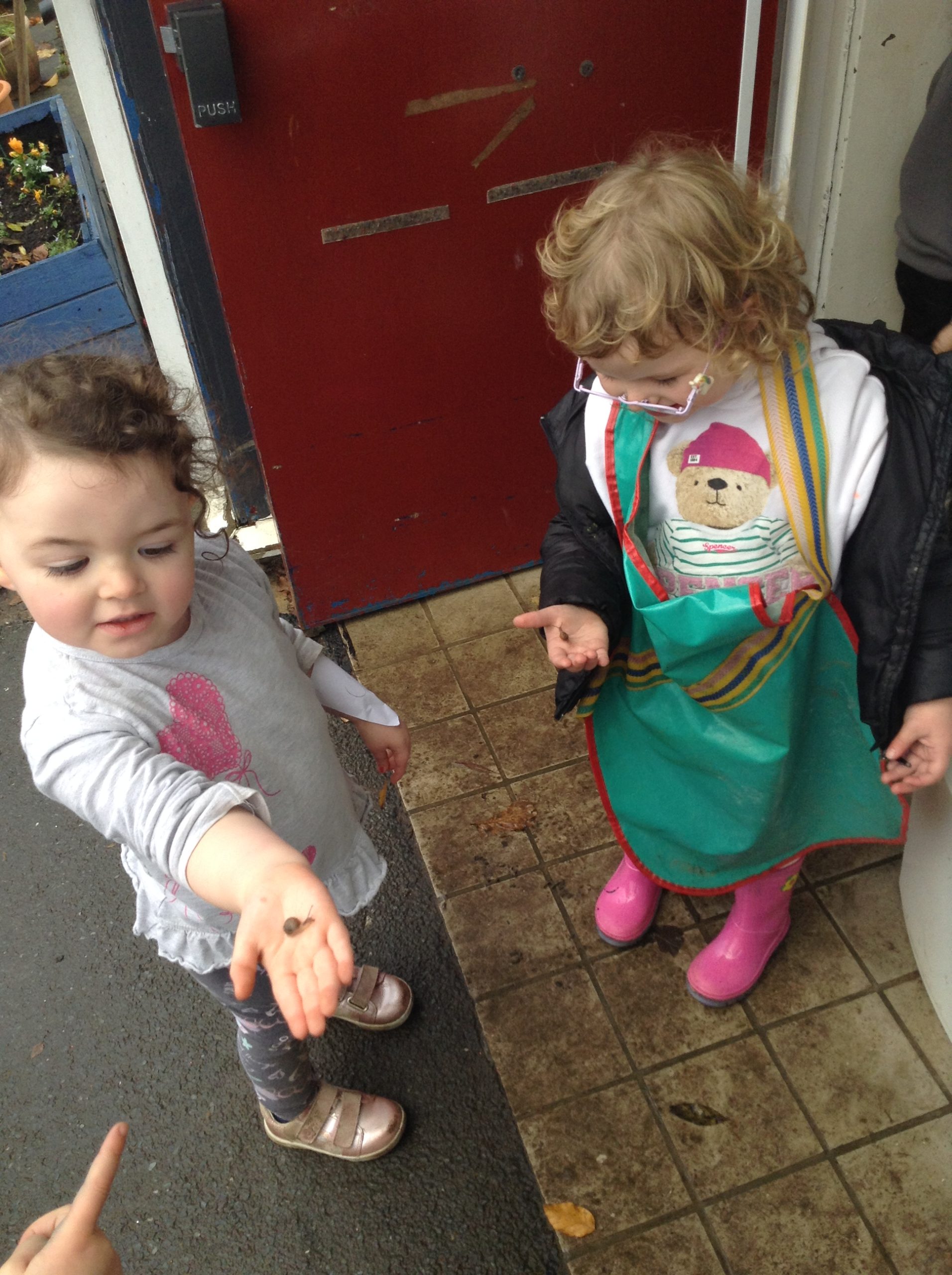 This week, the children explored different emotions and used puppets and mirrors to express and match those emotions. We discovered some snails and observed them as they moved, leaving trails behind. The children were also curious about the creatures that inhabit the ocean. We spent some time in the conservation area, where some children made “dancing sticks.” To keep our outdoor area tidy, we have been sweeping up a lot of leaves, although more continue to fall…