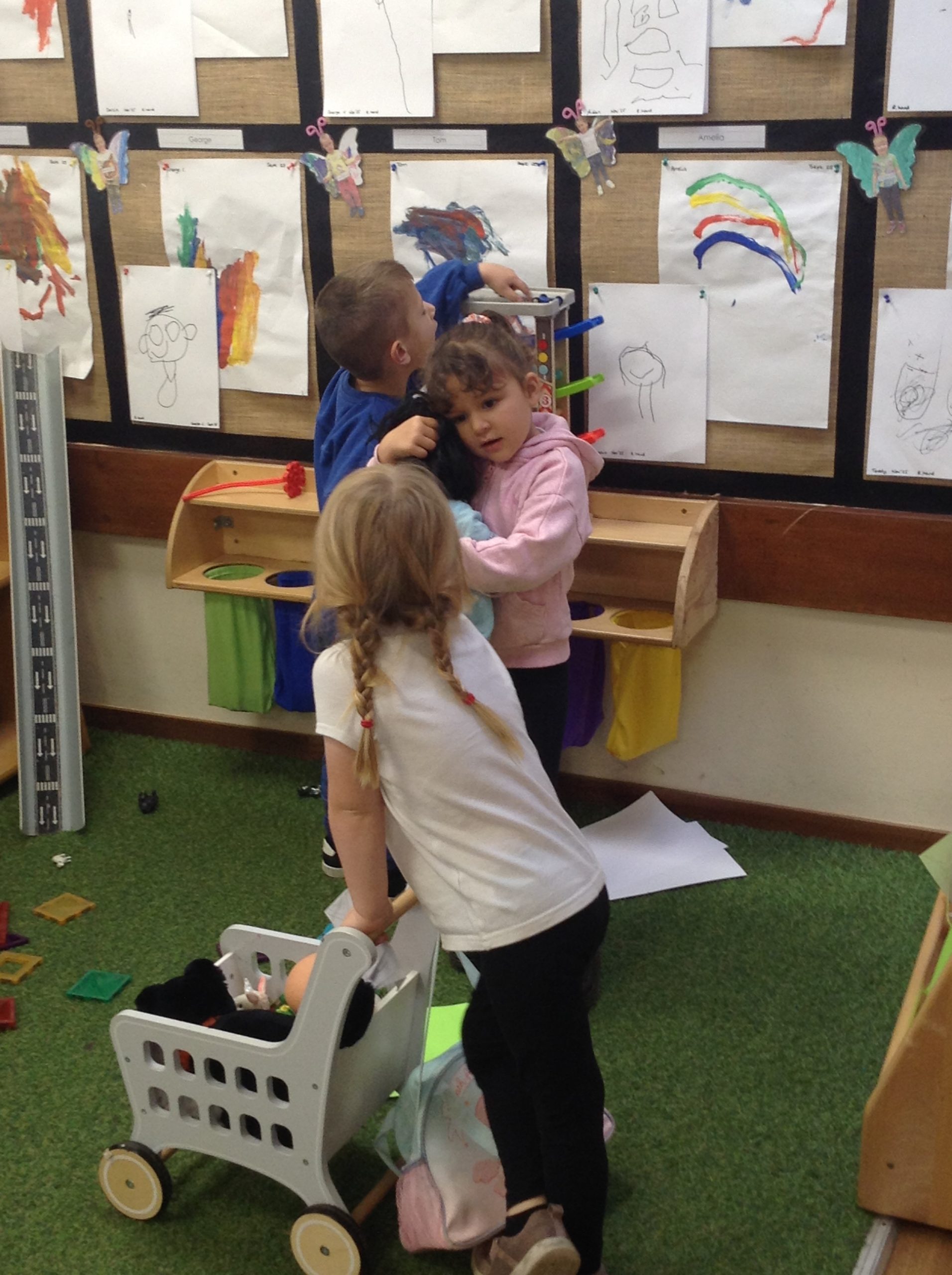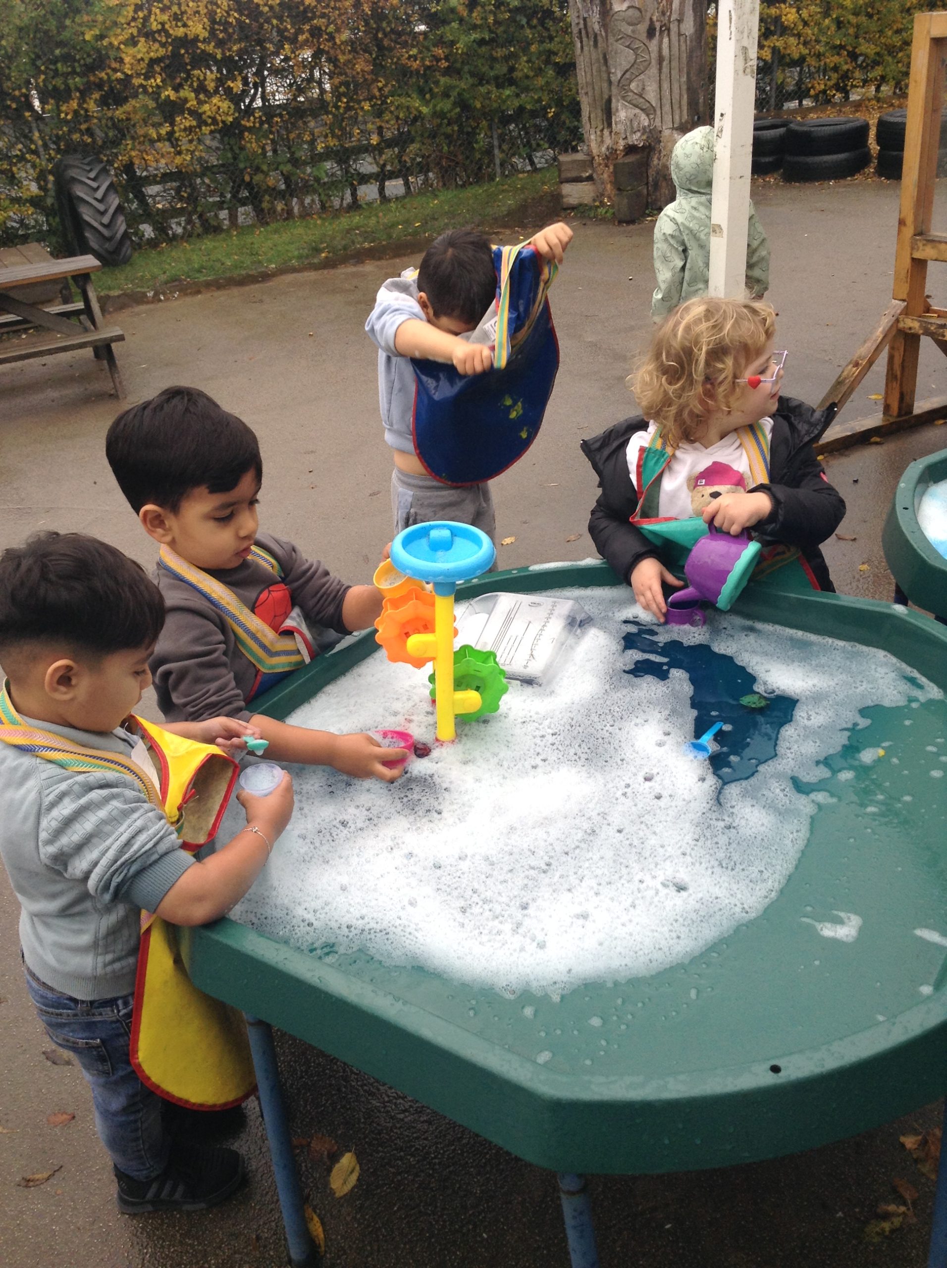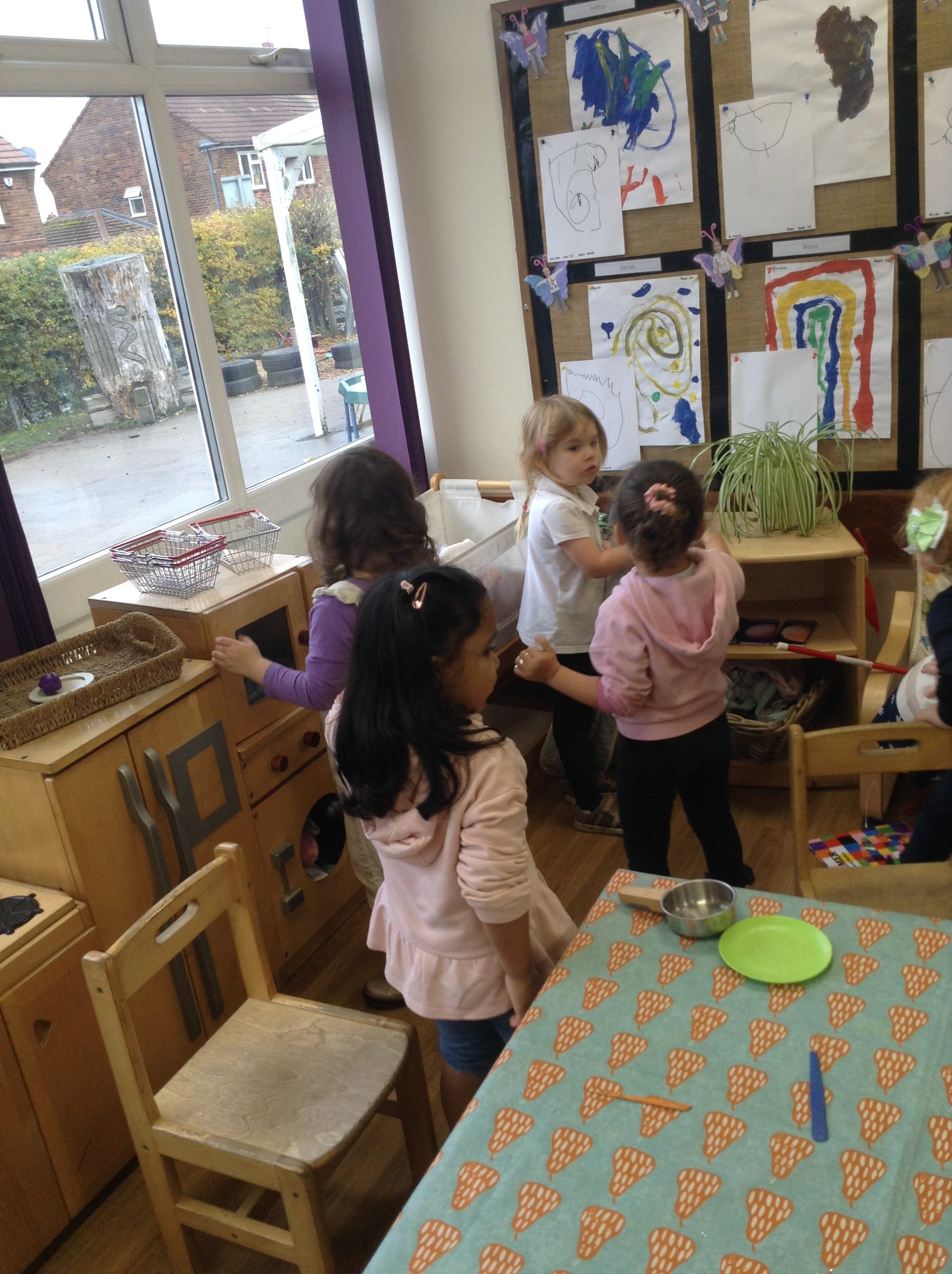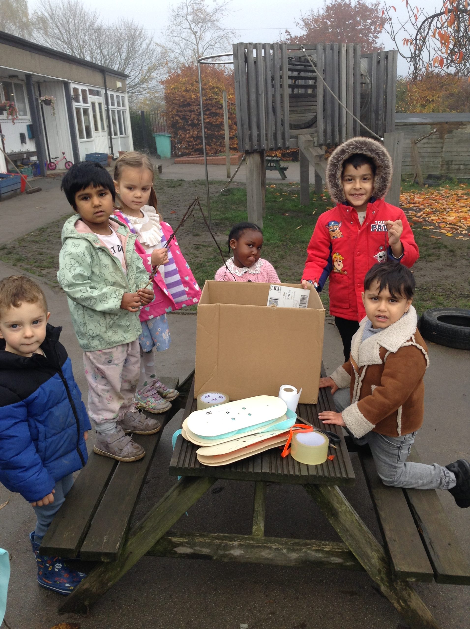 This week, the children explored different emotions and used puppets and mirrors to express and match those emotions. We discovered some snails and observed them as they moved, leaving trails behind. The children were also curious about the creatures that inhabit the ocean. We spent some time in the conservation area, where some children made “dancing sticks.” To keep our outdoor area tidy, we have been sweeping up a lot of leaves, although more continue to fall…