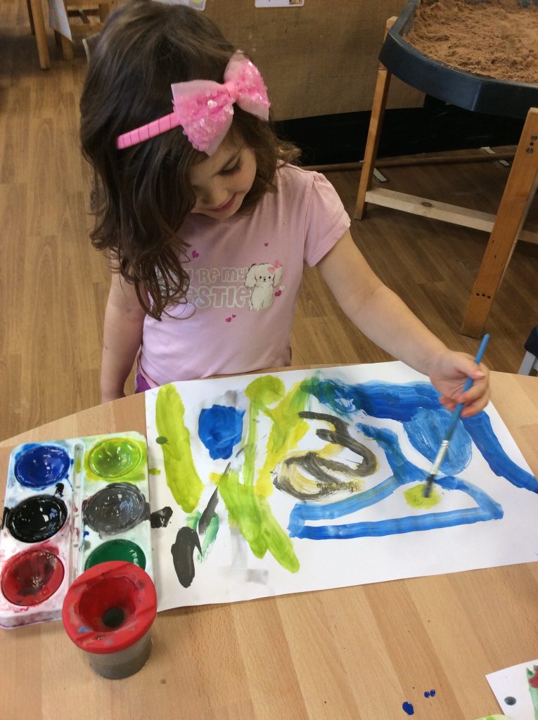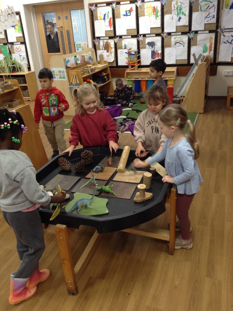 What a week it has been! We started the week by focusing on how to use our powers for good. The children came up with some fantastic ideas on how to make their friends smile. We watched a Remembrance Day video and respectfully observed two minutes of silence. The children received some new dinosaur toys that required a lot of thought to assemble. We used screwdrivers to attach the pieces and discussed the concepts of clockwise and anti-clockwise. This week, we also brought out some solid paint palettes and water for the children to explore and create with, resulting in some amazing artwork. As the week came to a wet end, there was nothing better than jumping in some muddy puddles!
