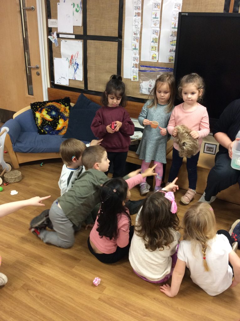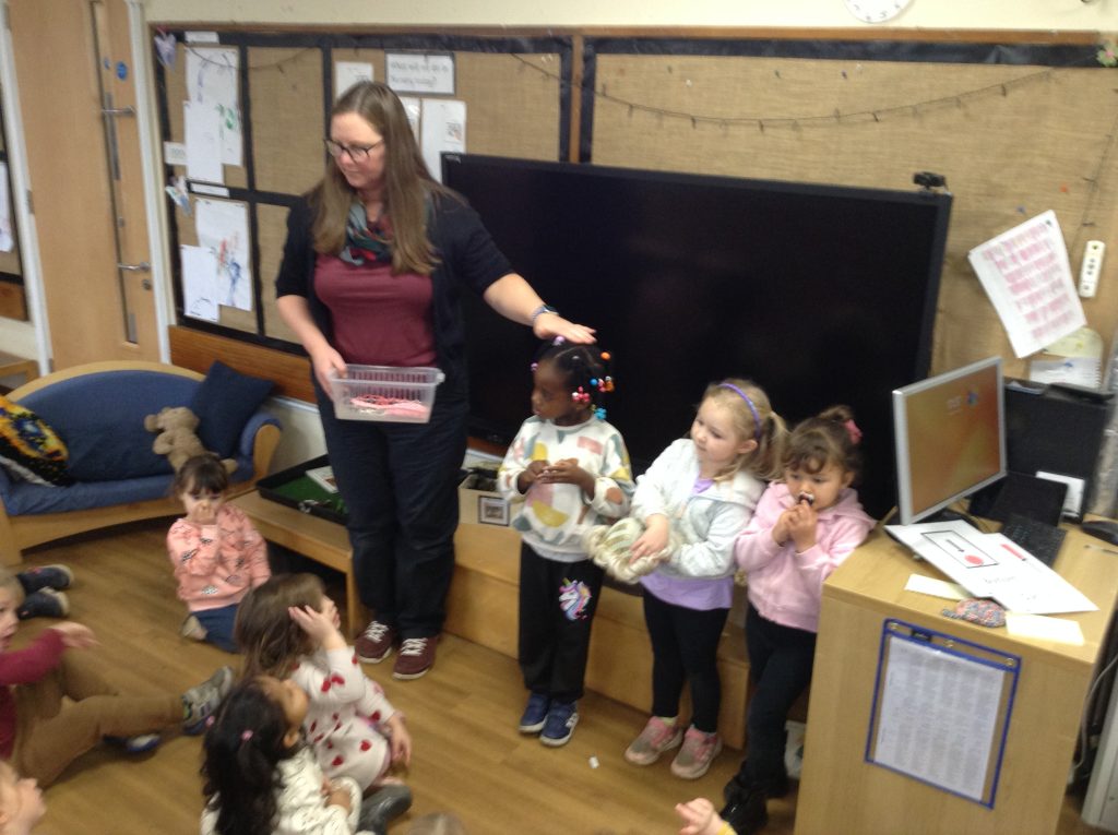 This week, the children played a game called ‘Out One Out.’ We found three items, but one of them did not have the same initial sound as the others. The children did well with this activity. We also continued our exploration of ‘alliteration’ and shared some silly stories.
