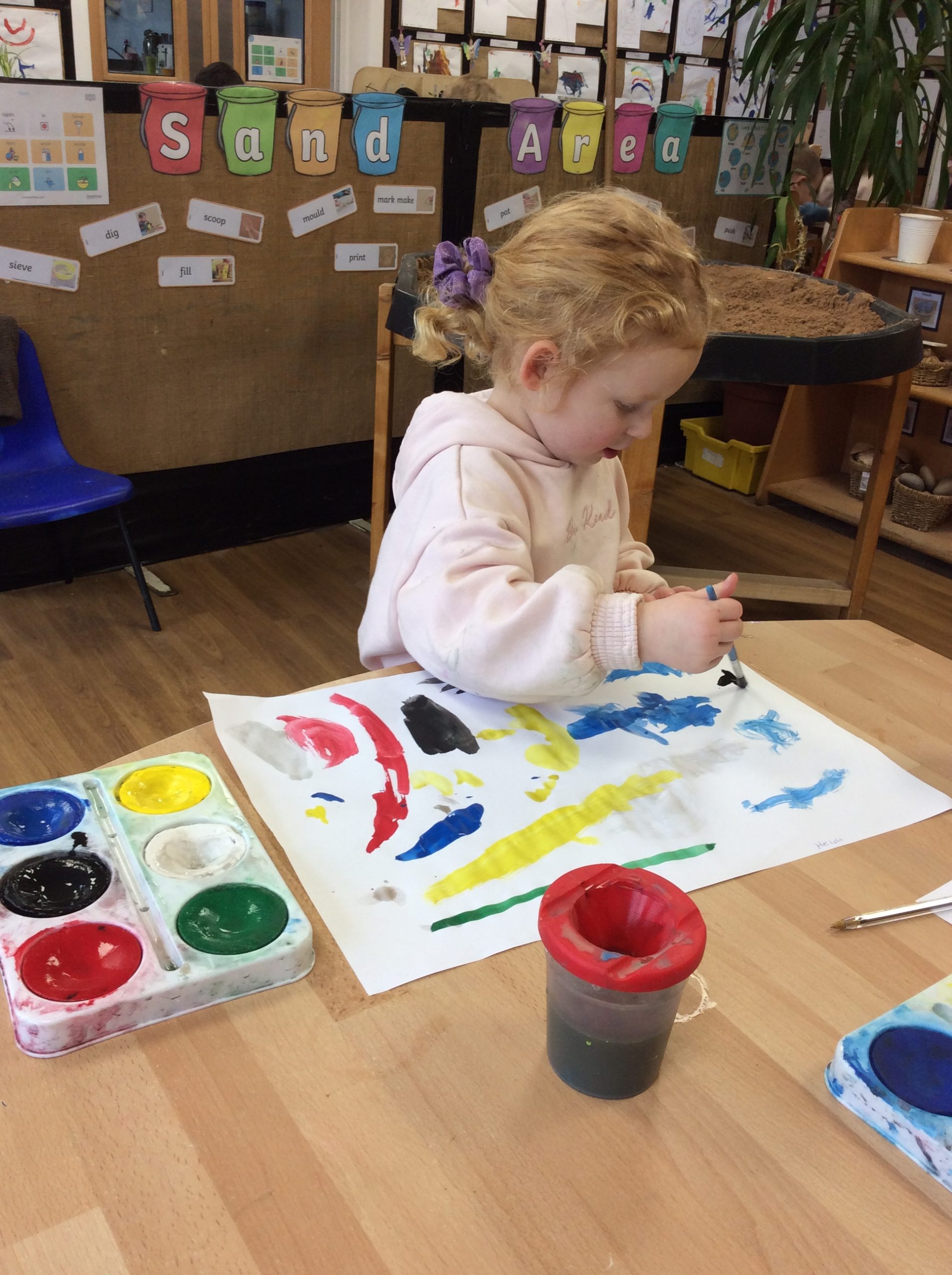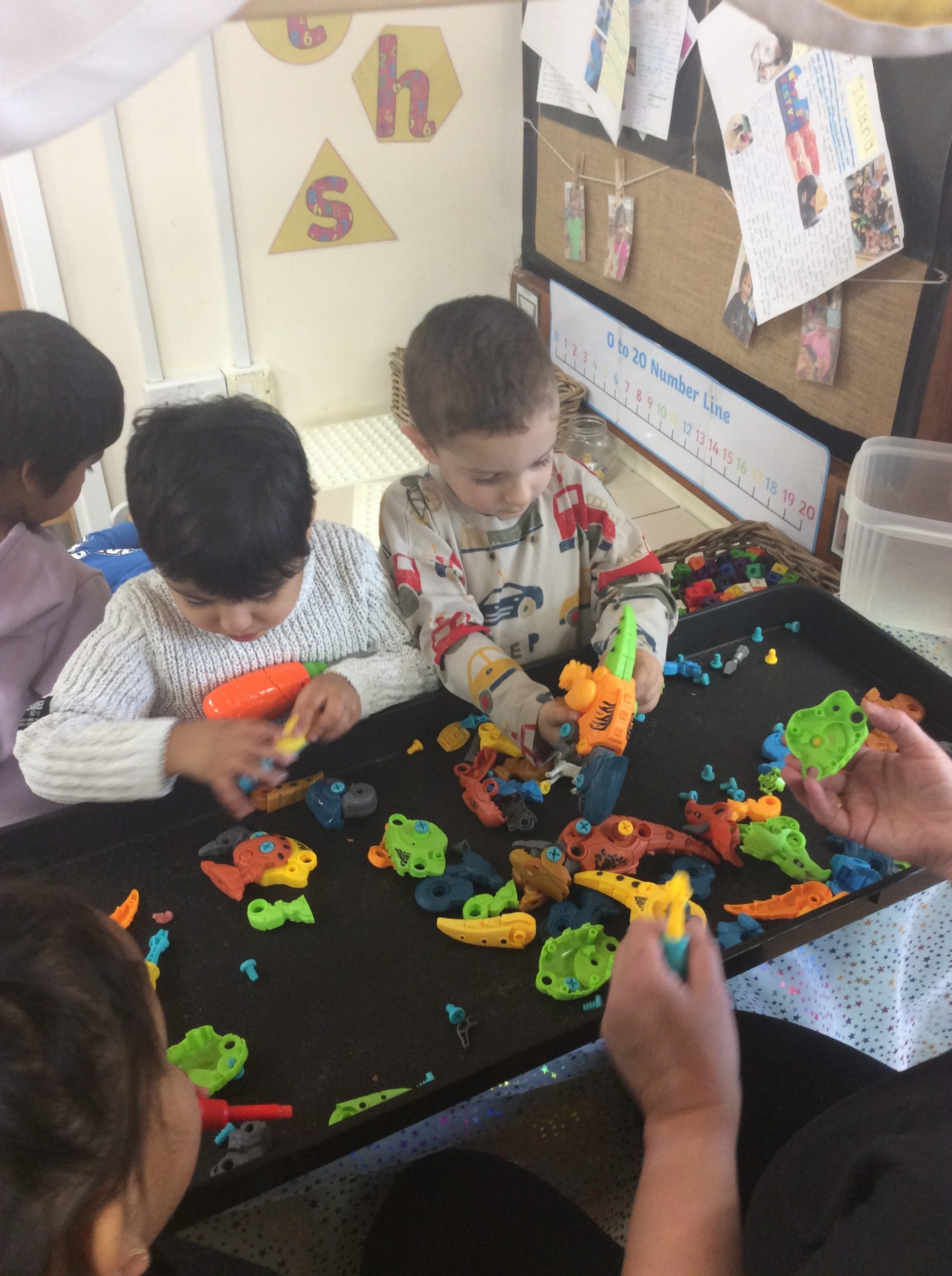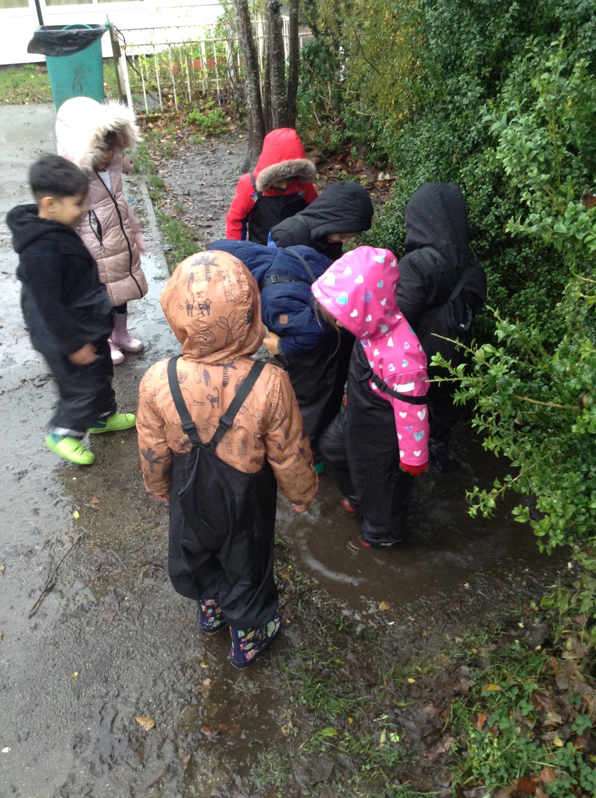 What a week it has been! We started the week by focusing on how to use our powers for good. The children came up with some fantastic ideas on how to make their friends smile. We watched a Remembrance Day video and respectfully observed two minutes of silence. The children received some new dinosaur toys that required a lot of thought to assemble. We used screwdrivers to attach the pieces and discussed the concepts of clockwise and anti-clockwise. This week, we also brought out some solid paint palettes and water for the children to explore and create with, resulting in some amazing artwork. As the week came to a wet end, there was nothing better than jumping in some muddy puddles!