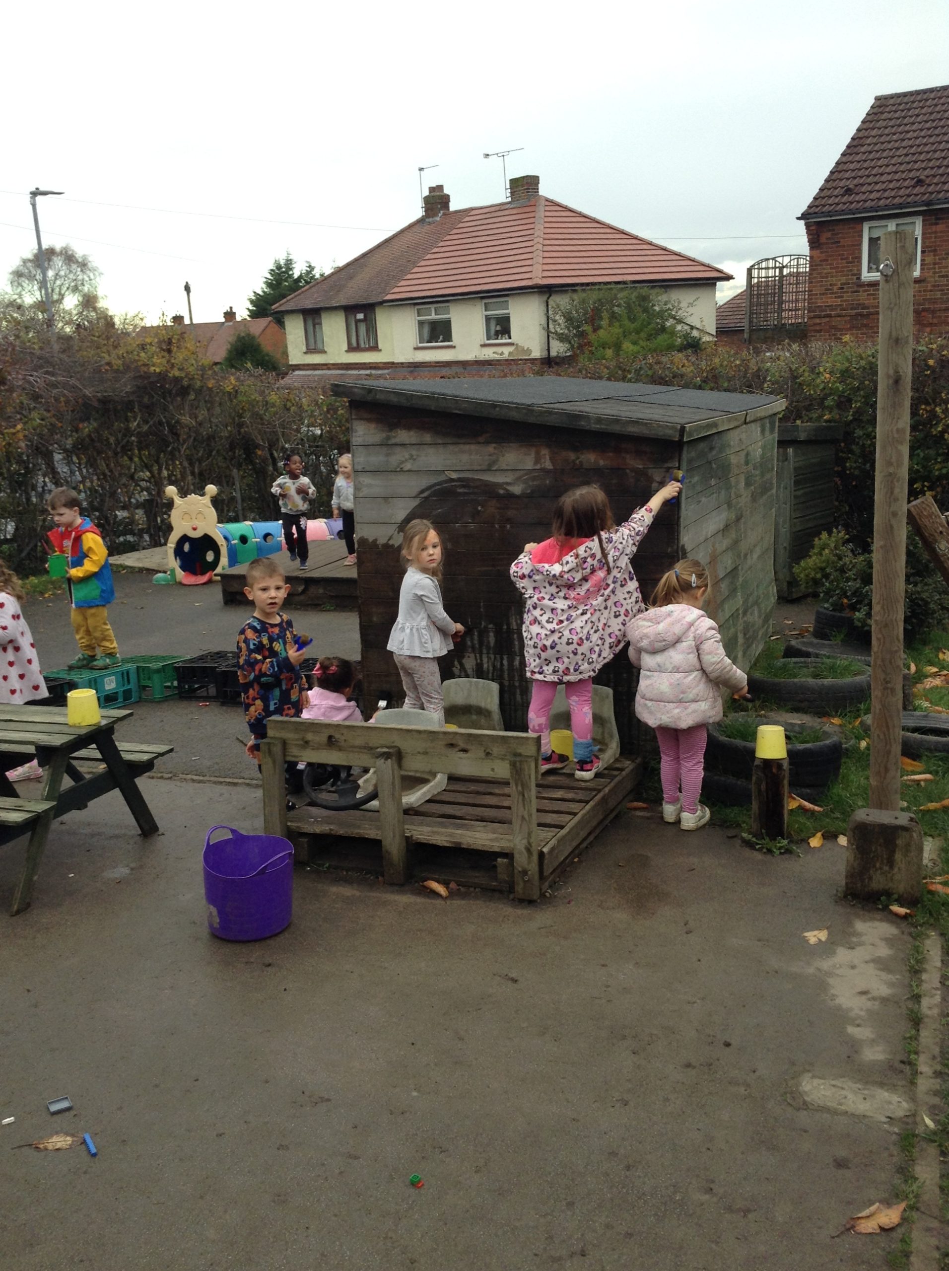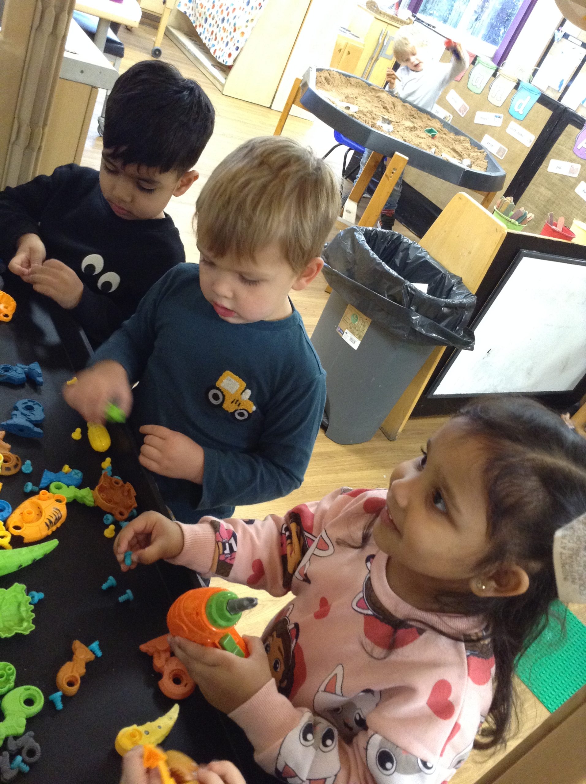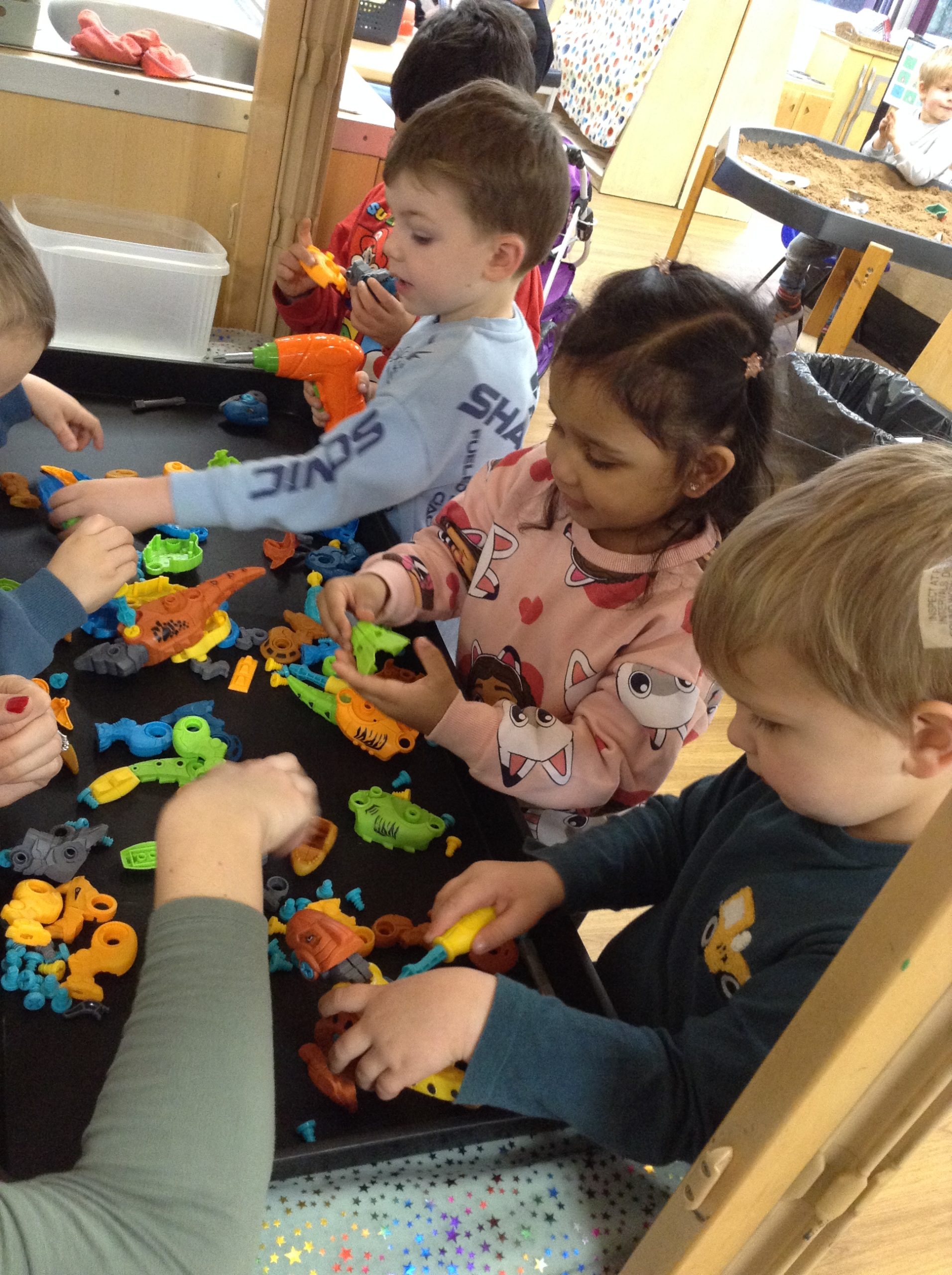 What a week it has been! We started the week by focusing on how to use our powers for good. The children came up with some fantastic ideas on how to make their friends smile. We watched a Remembrance Day video and respectfully observed two minutes of silence. The children received some new dinosaur toys that required a lot of thought to assemble. We used screwdrivers to attach the pieces and discussed the concepts of clockwise and anti-clockwise. This week, we also brought out some solid paint palettes and water for the children to explore and create with, resulting in some amazing artwork. As the week came to a wet end, there was nothing better than jumping in some muddy puddles!