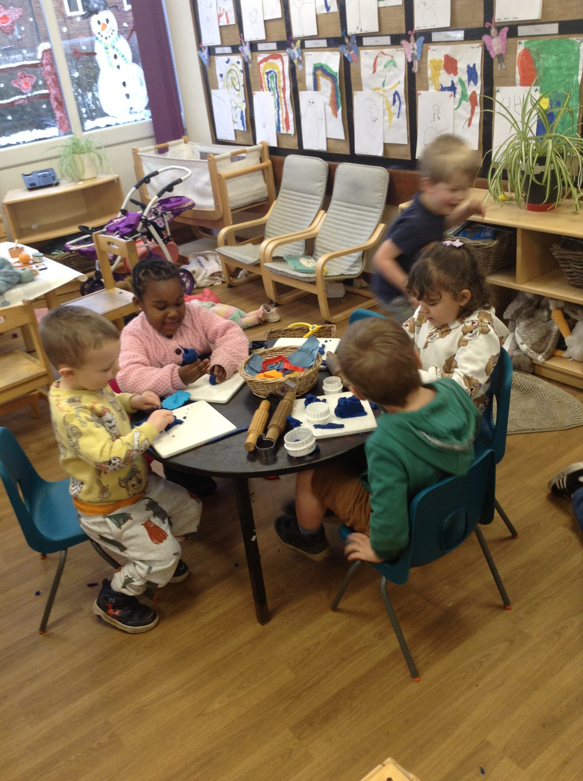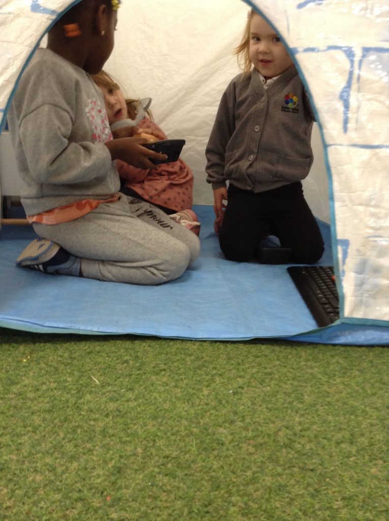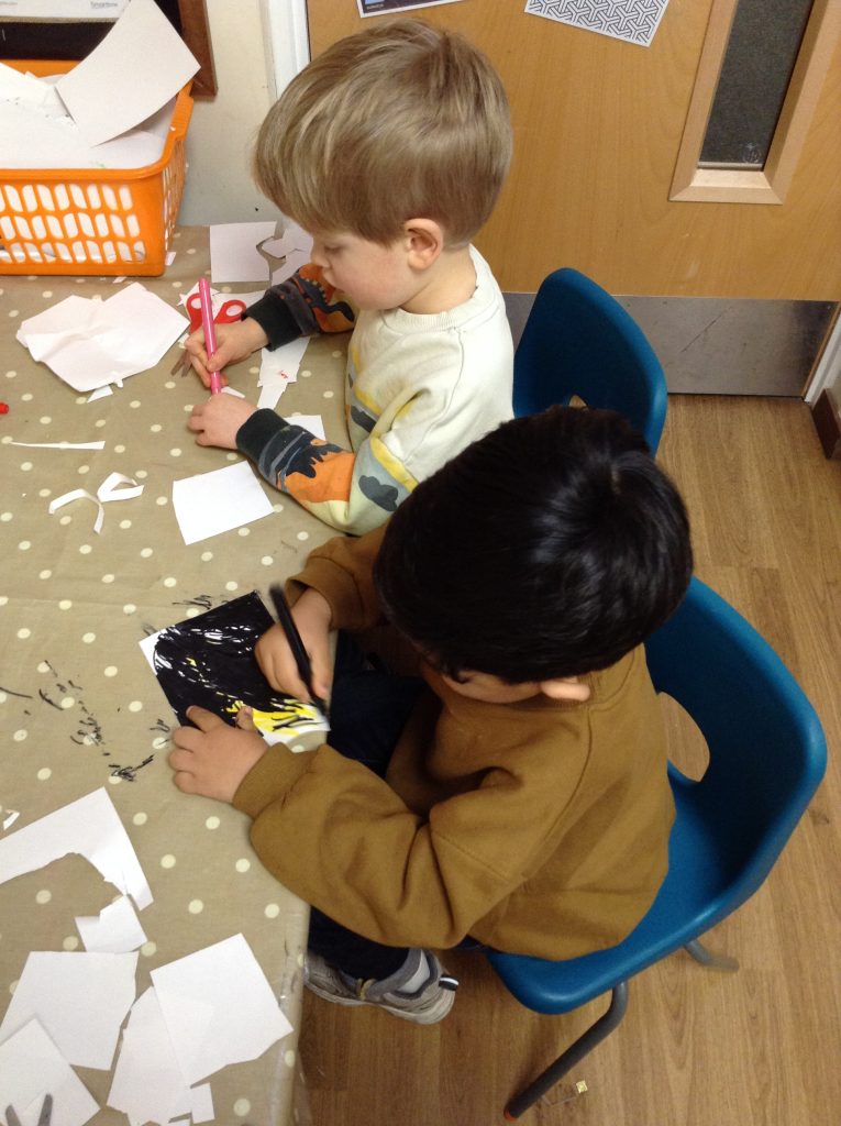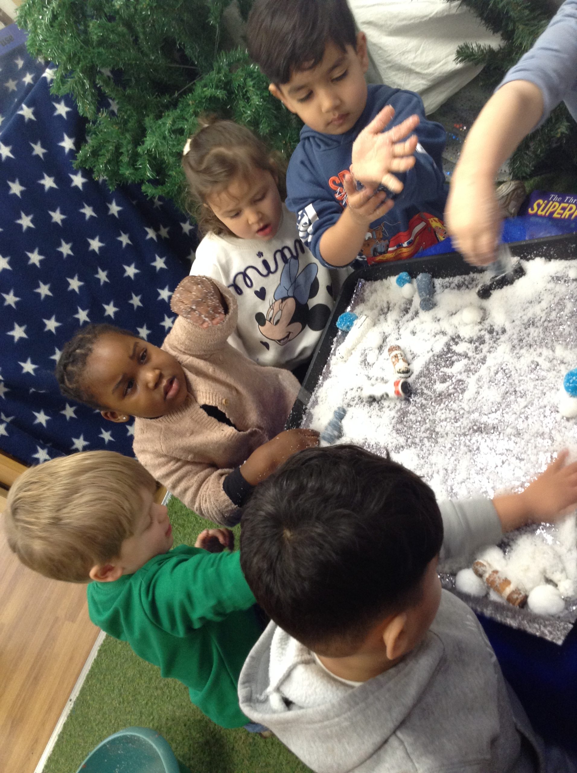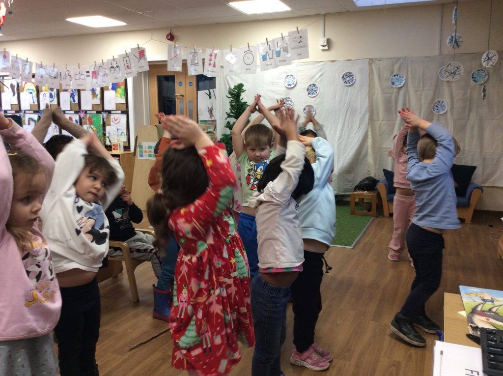 This week, the children explored ‘cool’ colours and mixed powder paint to create various shades of blue. We will continue this activity next week. They also examined ‘snow’ in a tray and learned about animals that inhabit snowy environments. We have also continued with many of our usual activities.