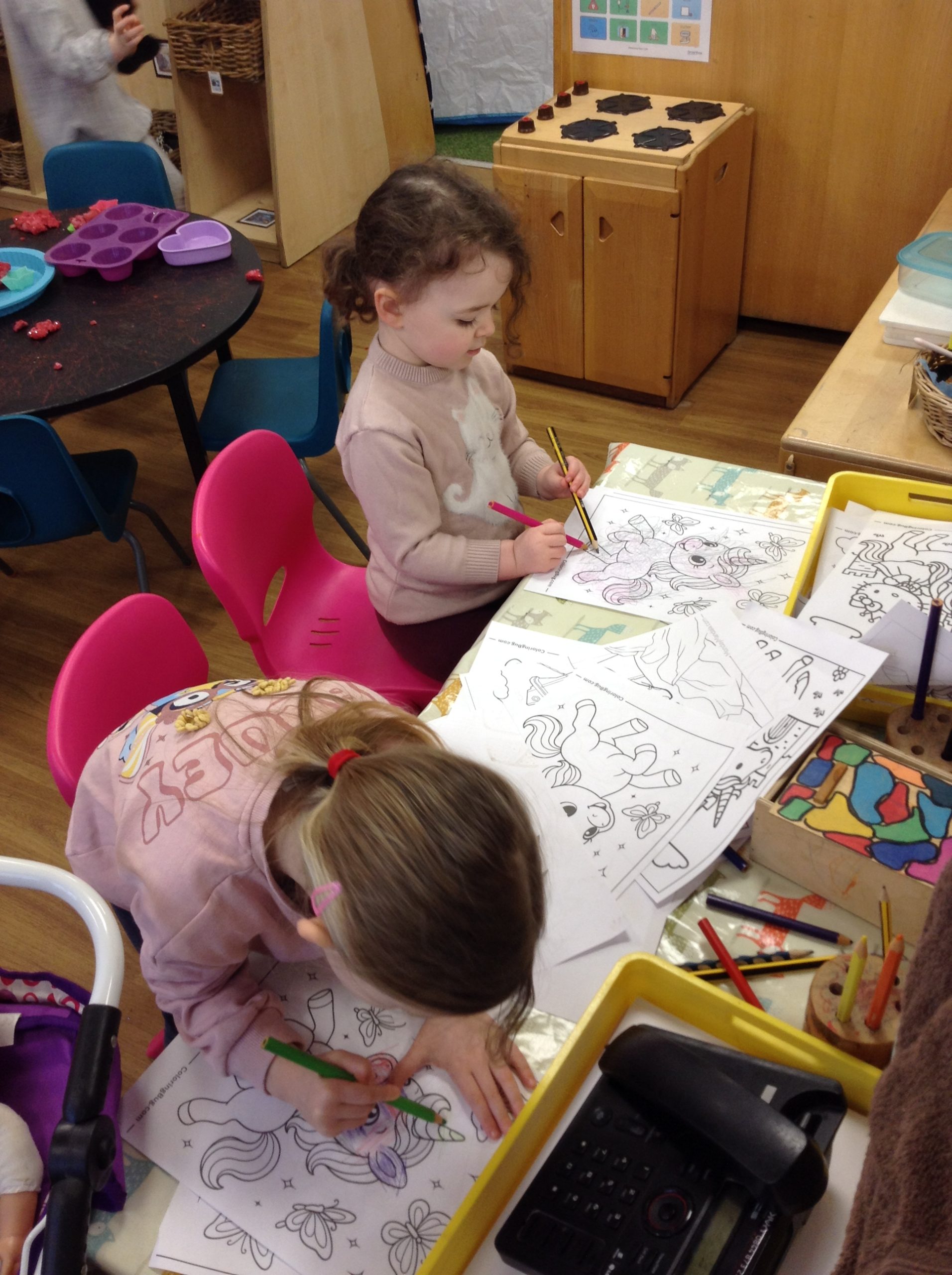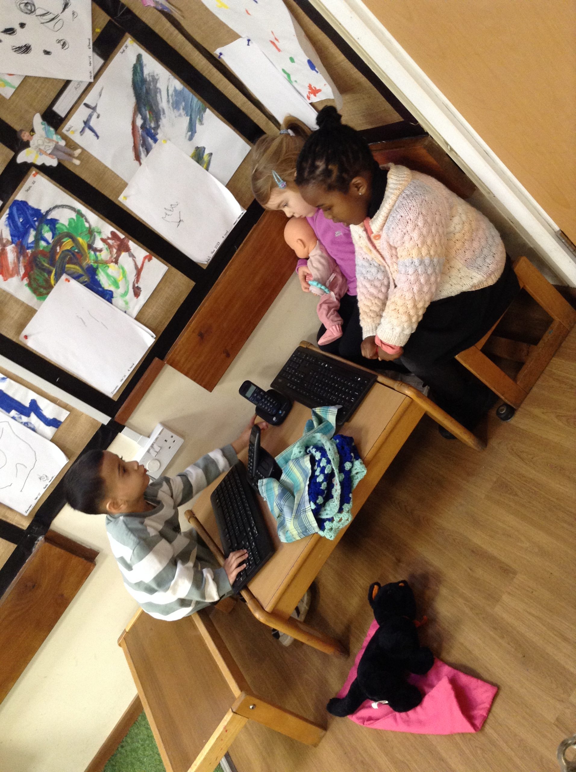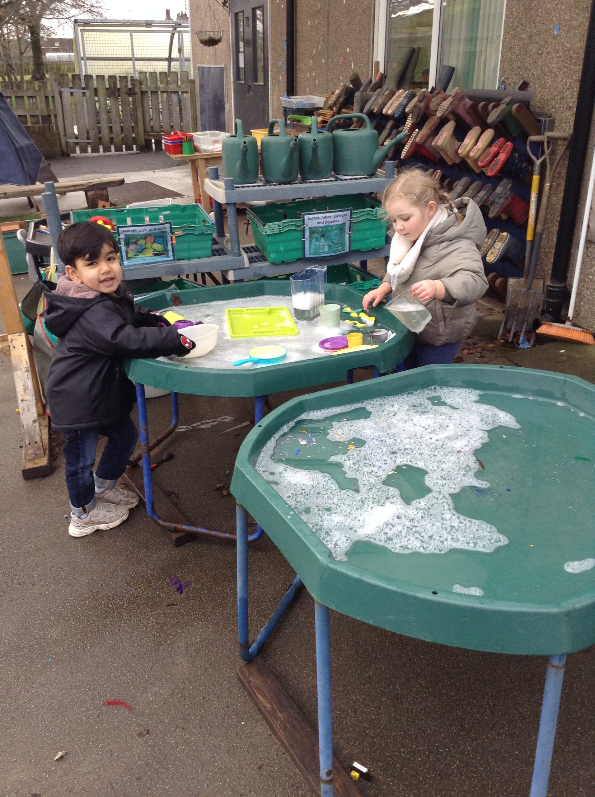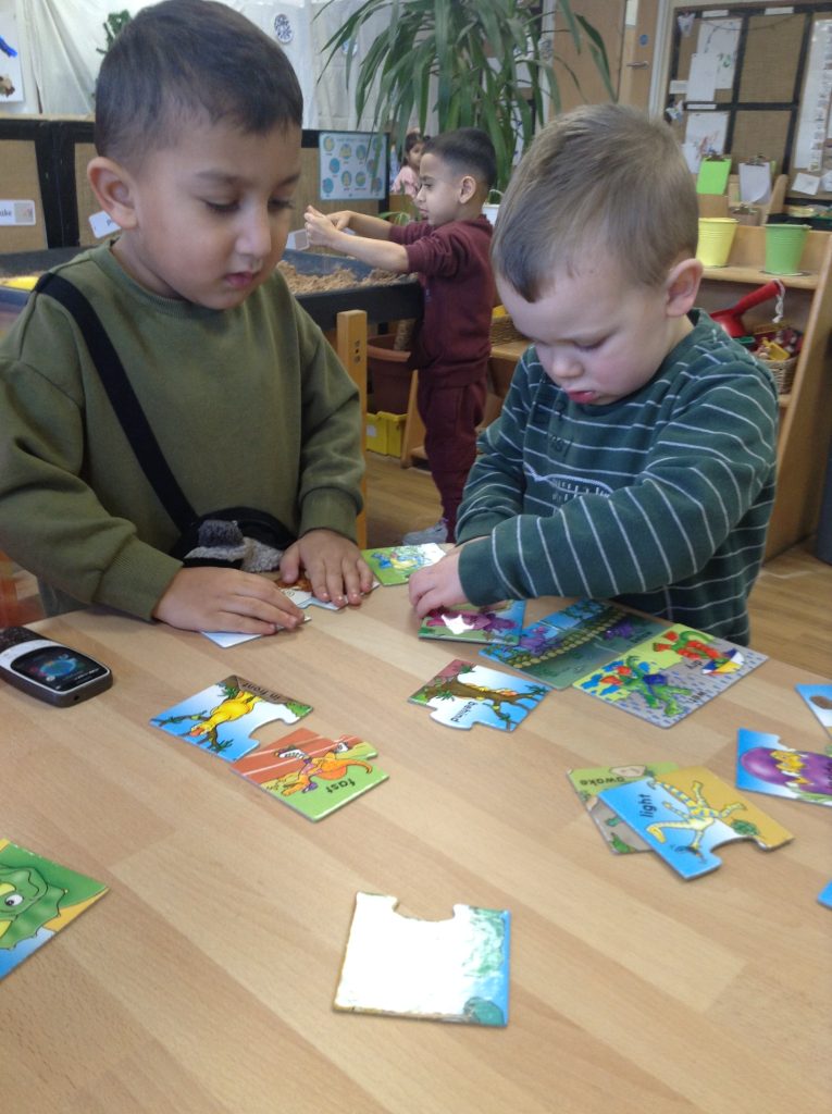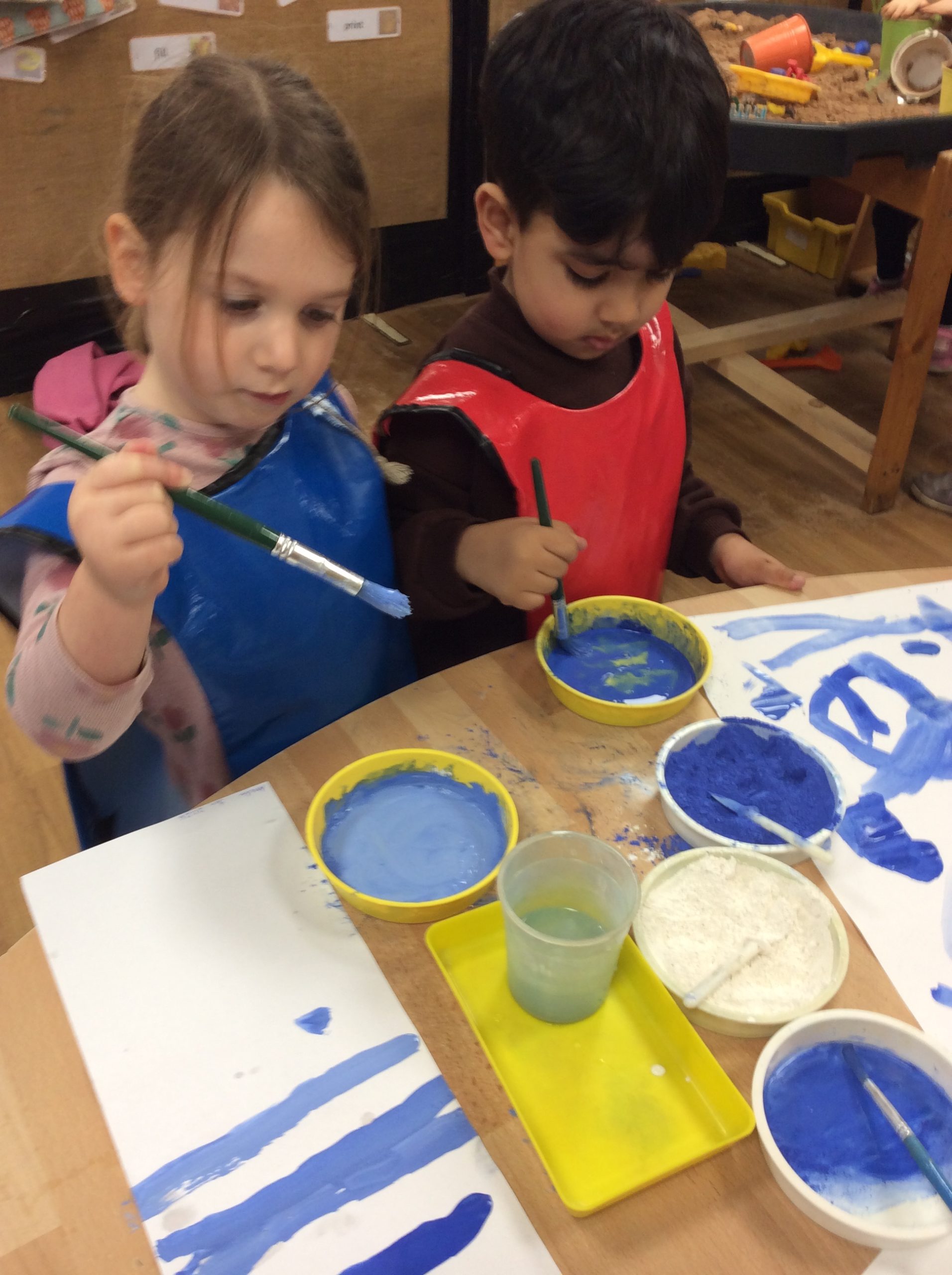 This week, the children explored ‘cool’ colours and mixed powder paint to create various shades of blue. We will continue this activity next week. They also examined ‘snow’ in a tray and learned about animals that inhabit snowy environments. We have also continued with many of our usual activities.