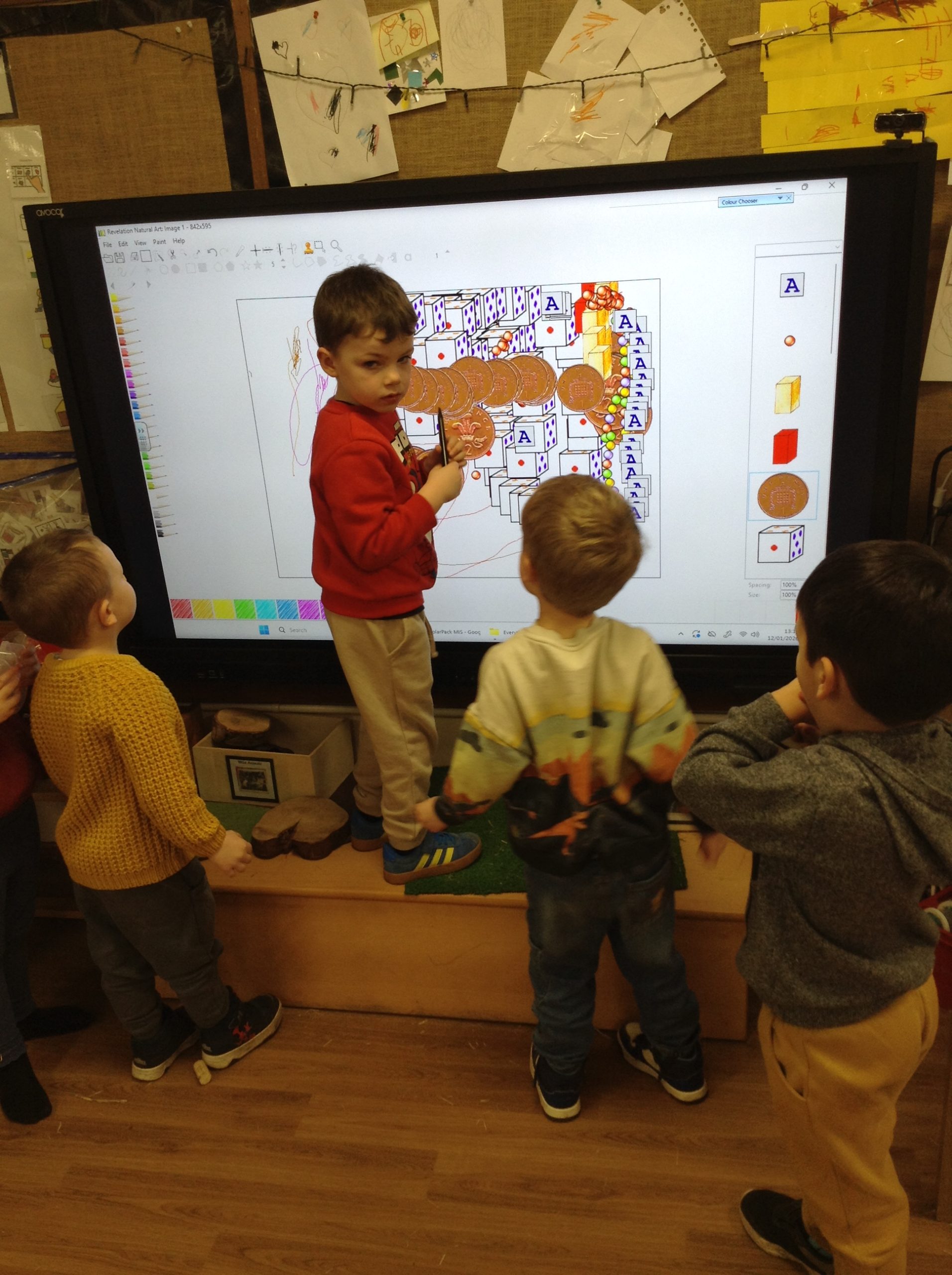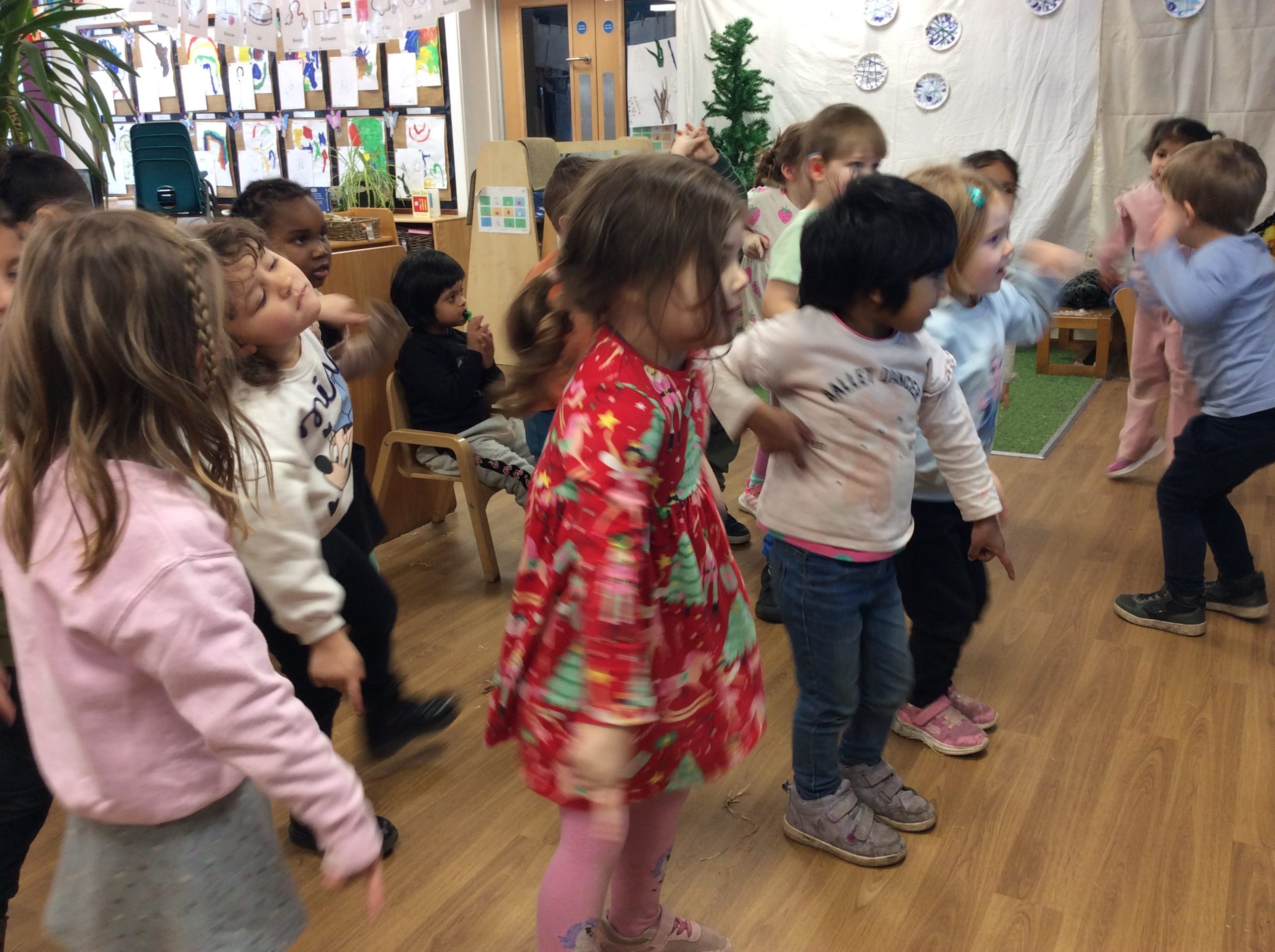 In our phonics sessions, we examined pictures displayed on the screen and discussed the sounds we might associate with each image. After this discussion, we listened to some of the actual sounds. The children also participated by listening to and imitating various body percussion sounds.