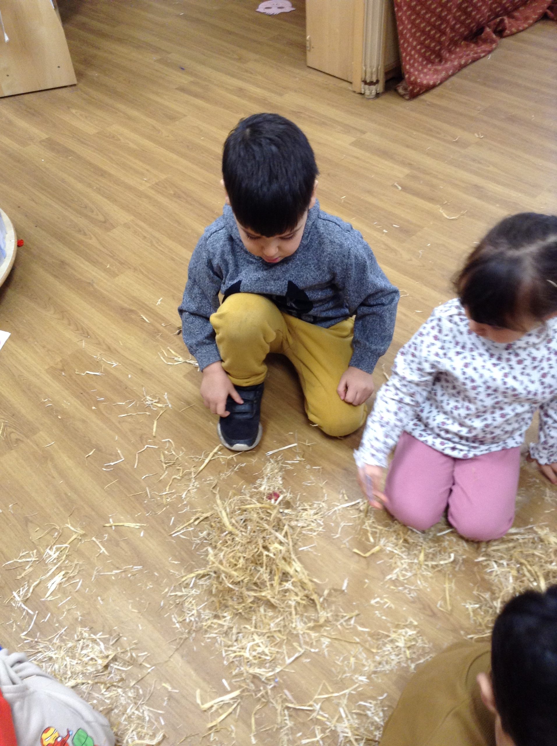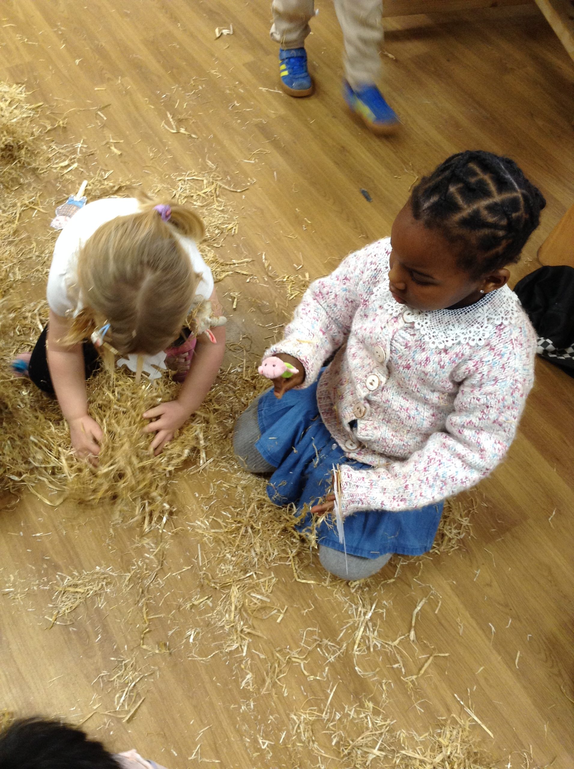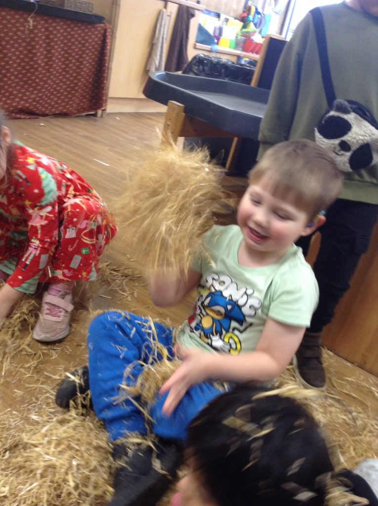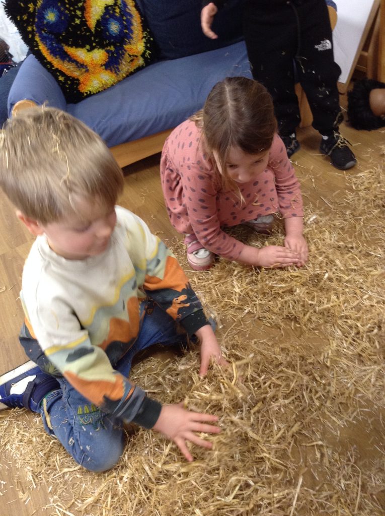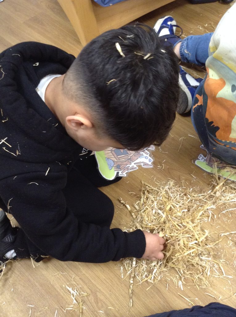 The children had a messy time this week. We decided to try build some house using straw, which turned out to be a poor building material. However, the children had lots of fun playing with it afterwards.