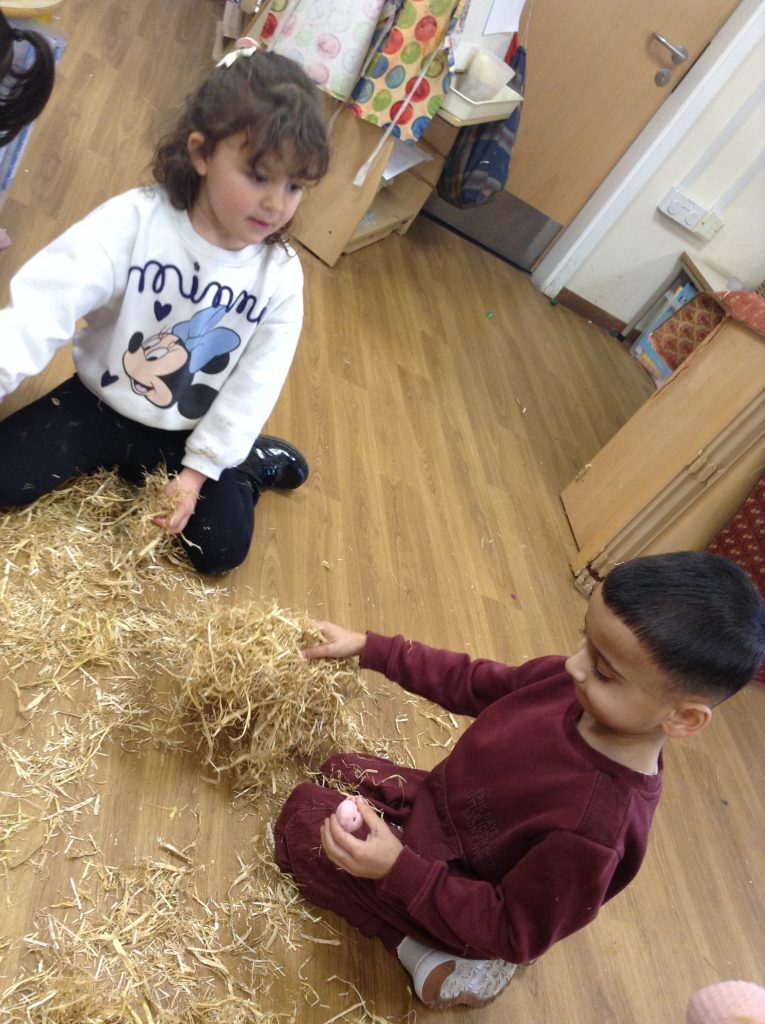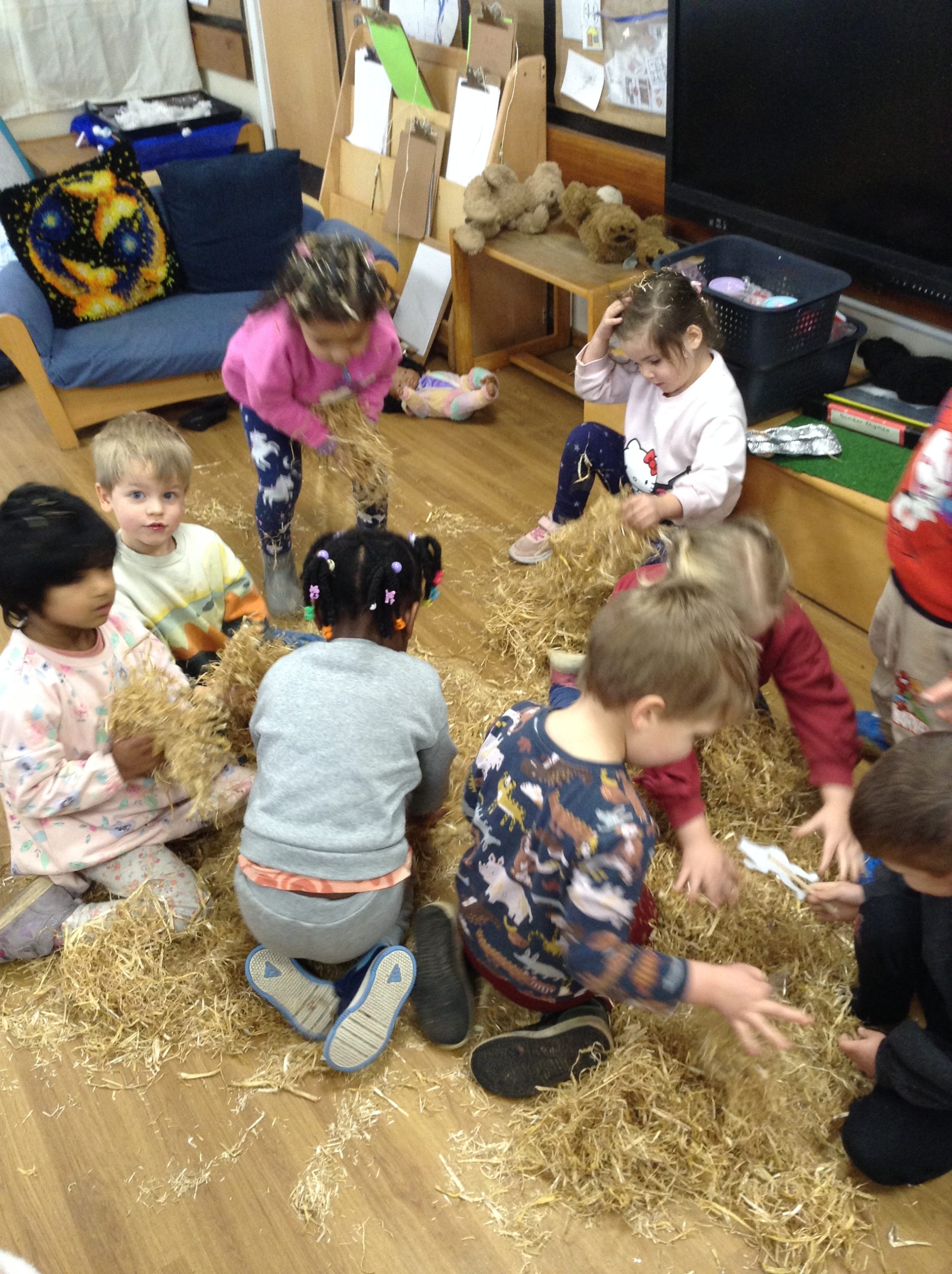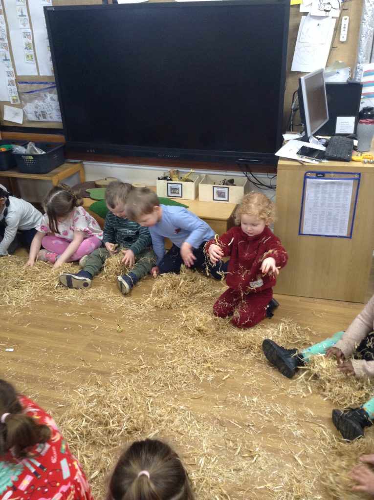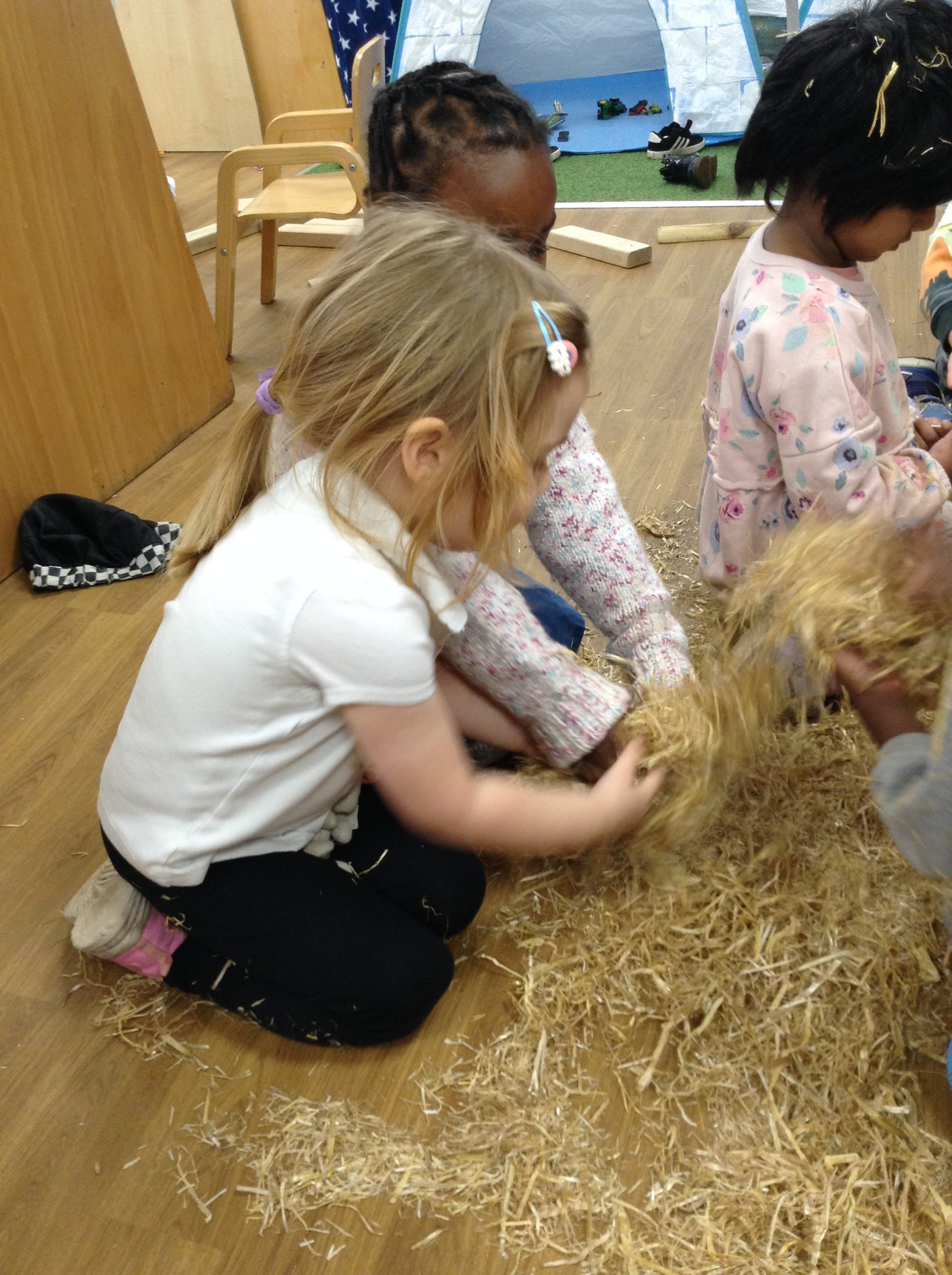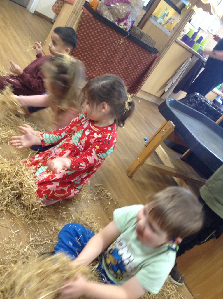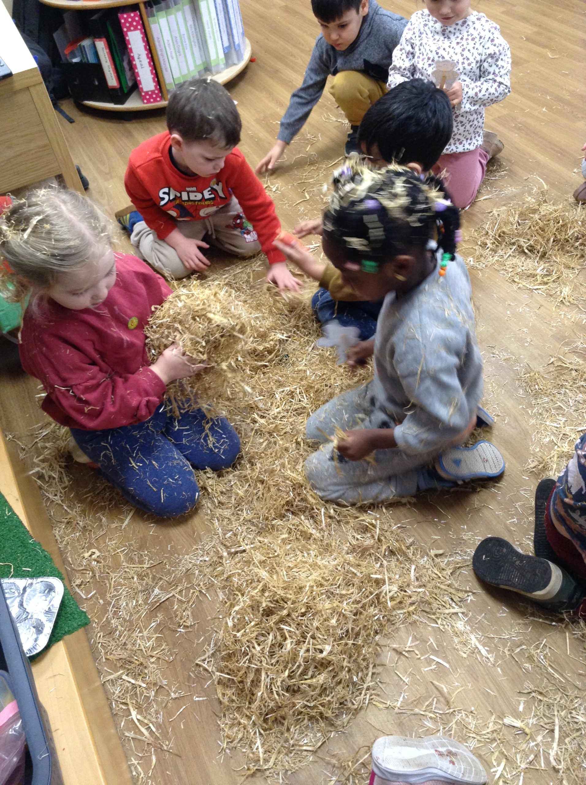 The children had a messy time this week. We decided to try build some house using straw, which turned out to be a poor building material. However, the children had lots of fun playing with it afterwards.