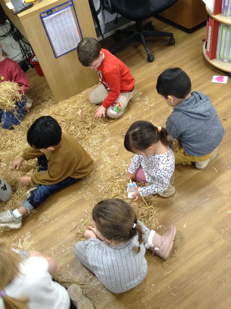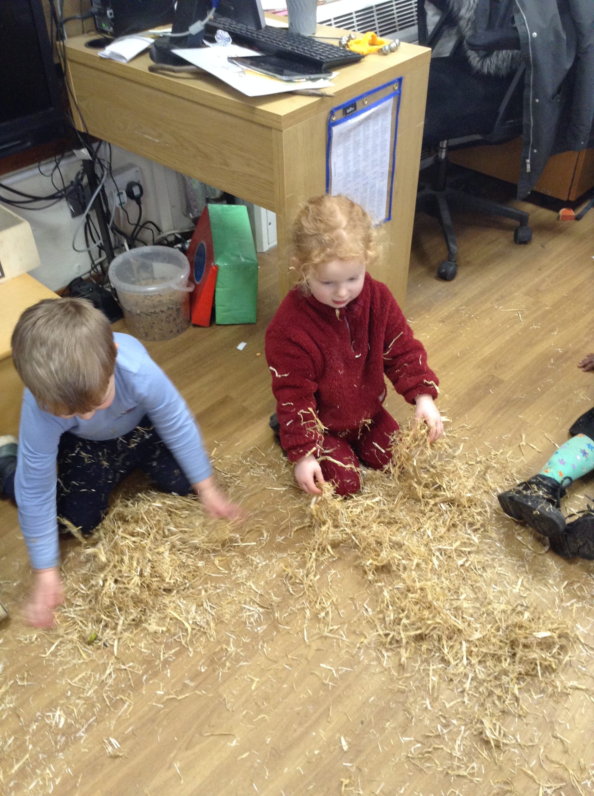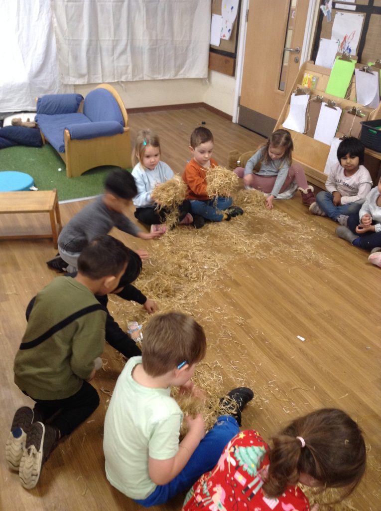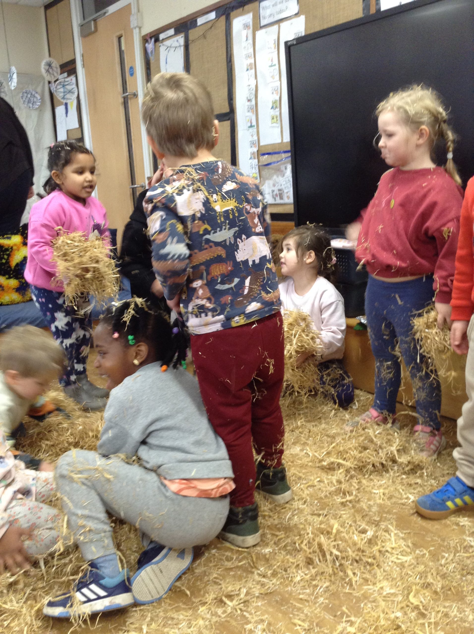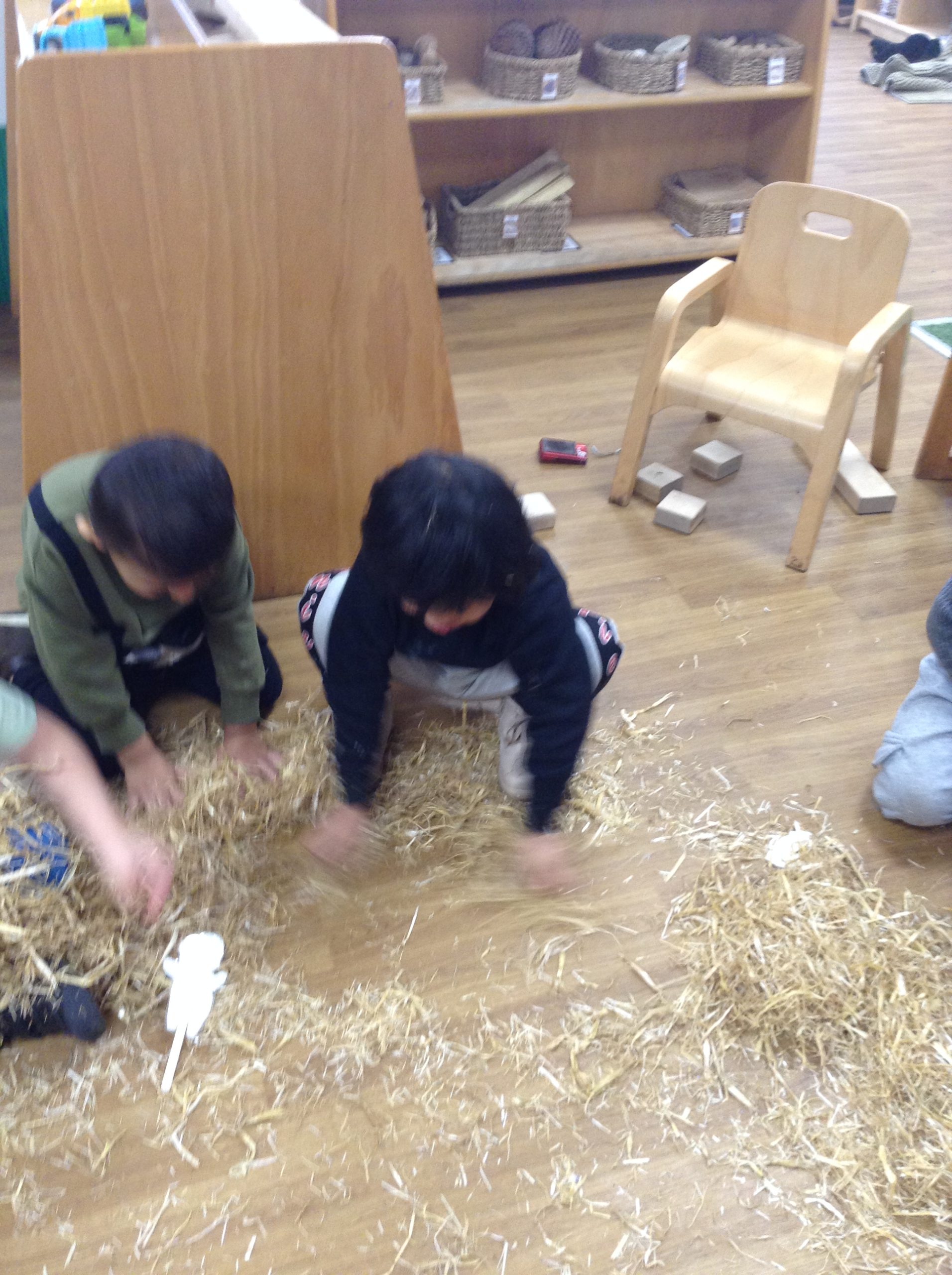 The children had a messy time this week. We decided to try build some house using straw, which turned out to be a poor building material. However, the children had lots of fun playing with it afterwards.
