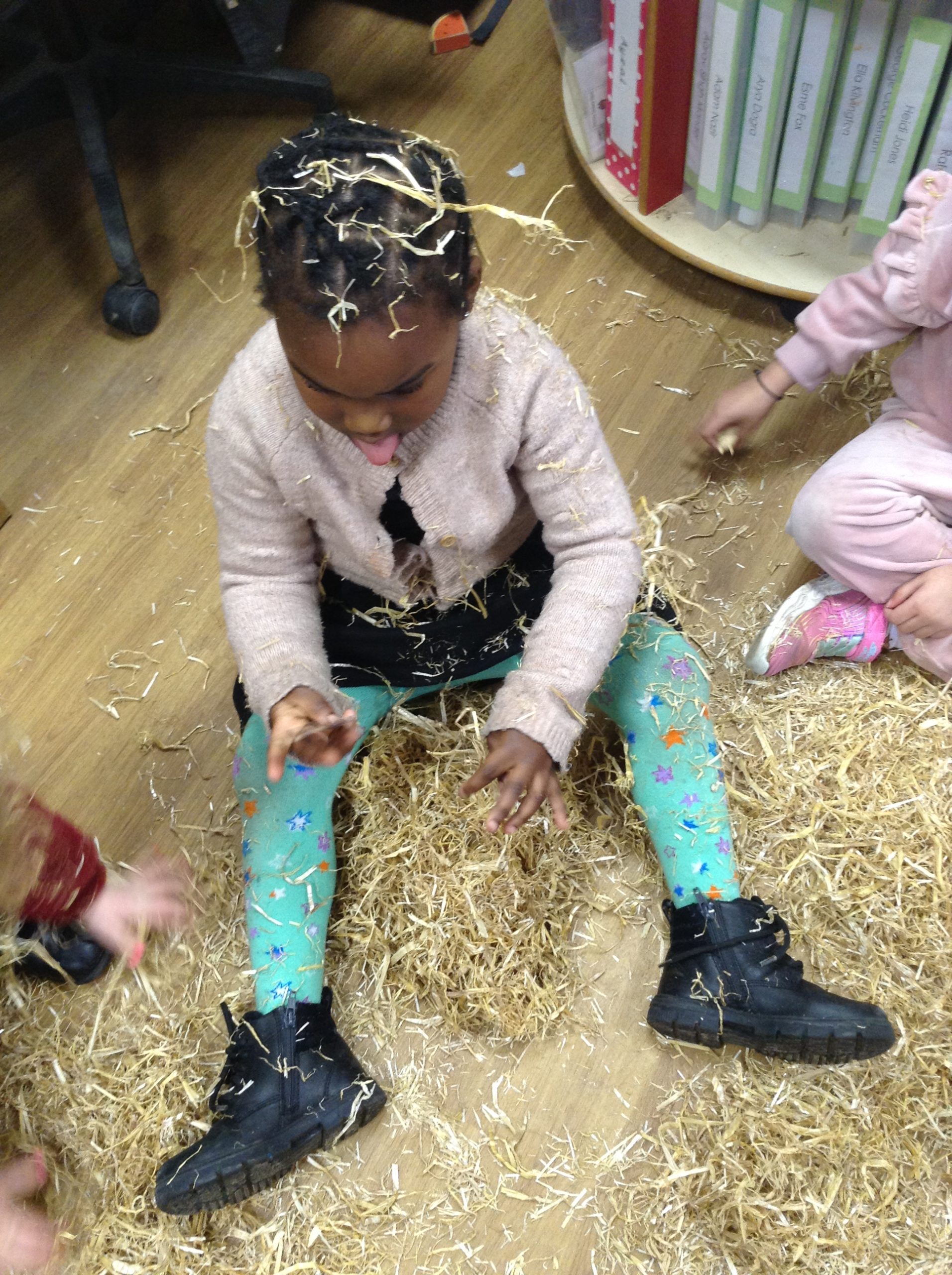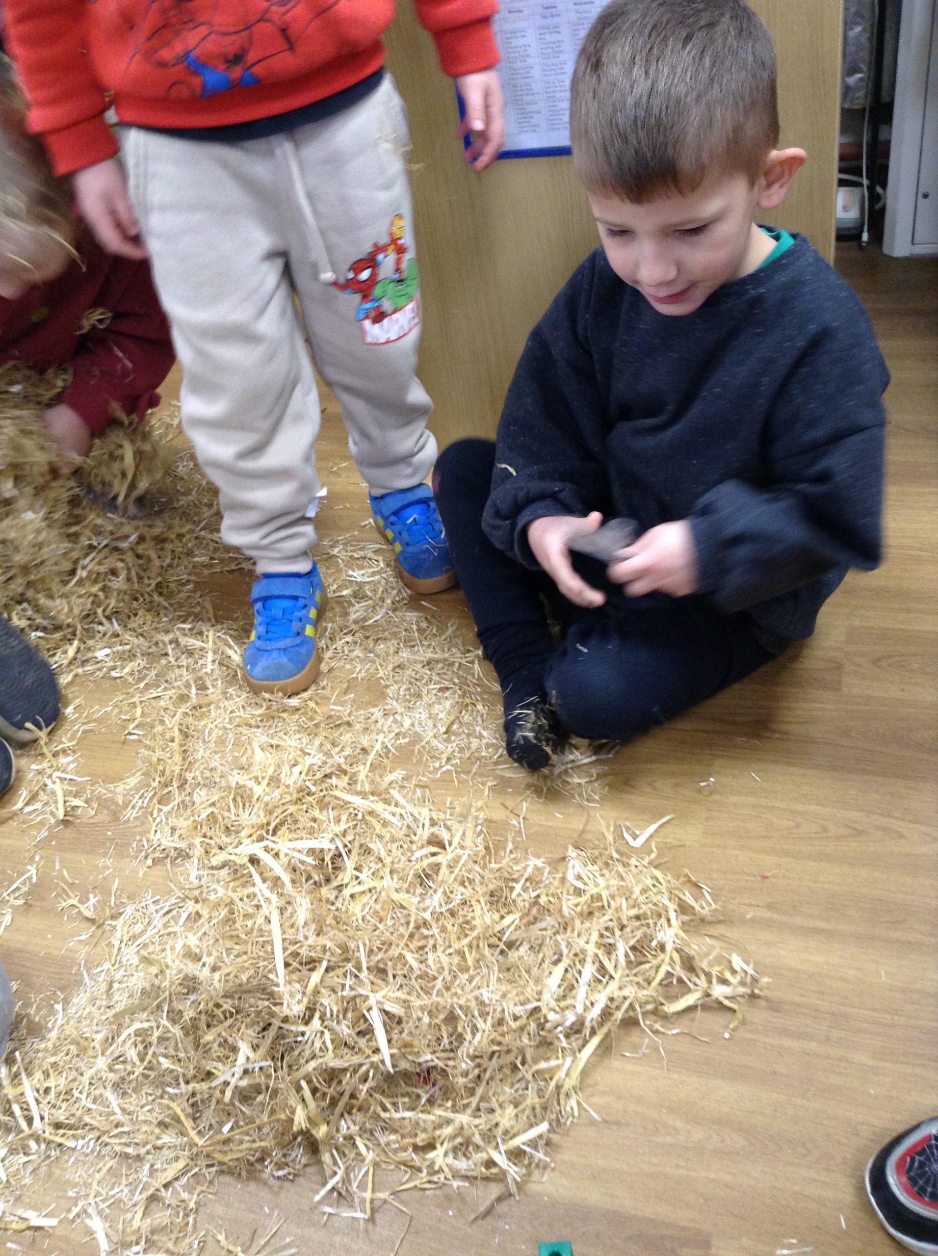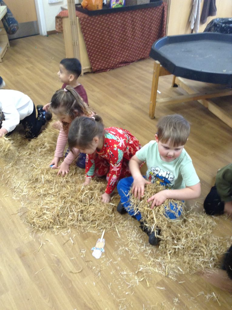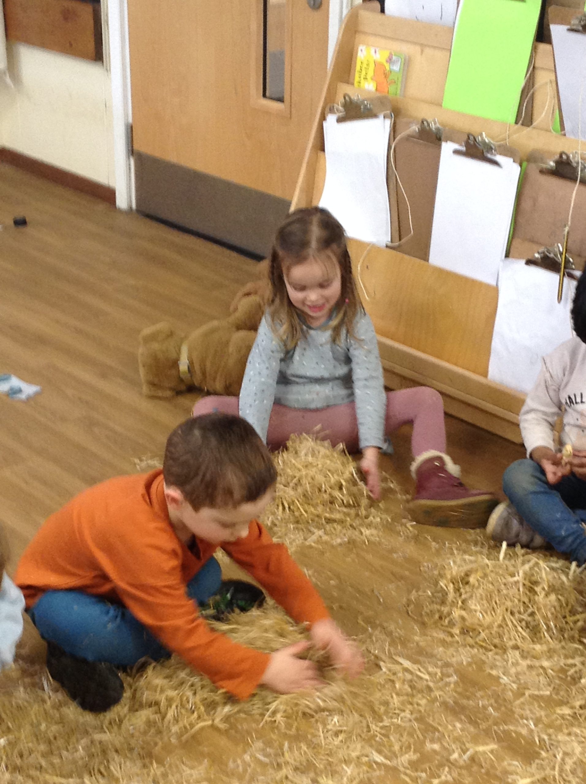The children had a messy time this week. We decided to try build some house using straw, which turned out to be a poor building material. However, the children had lots of fun playing with it afterwards.