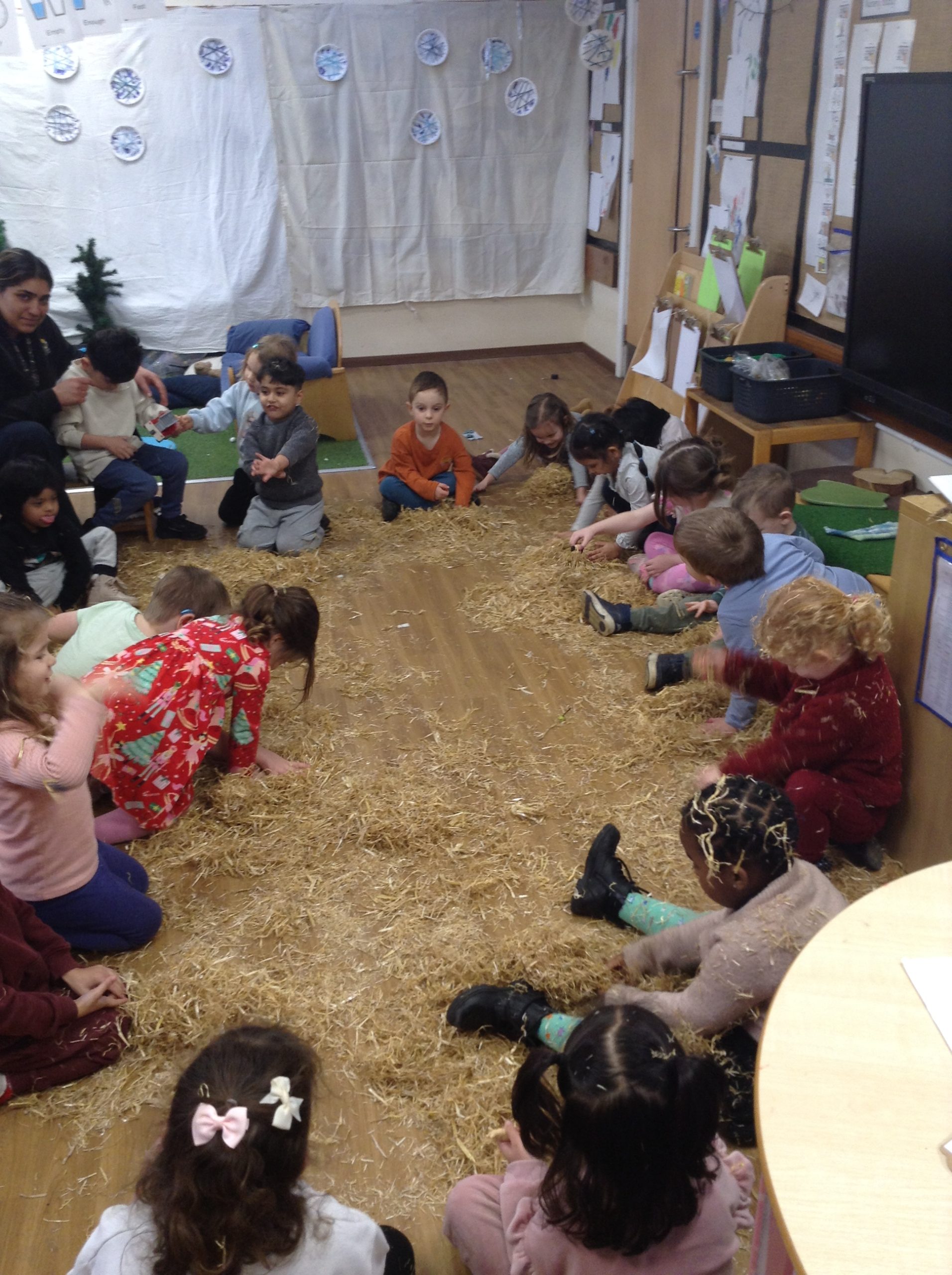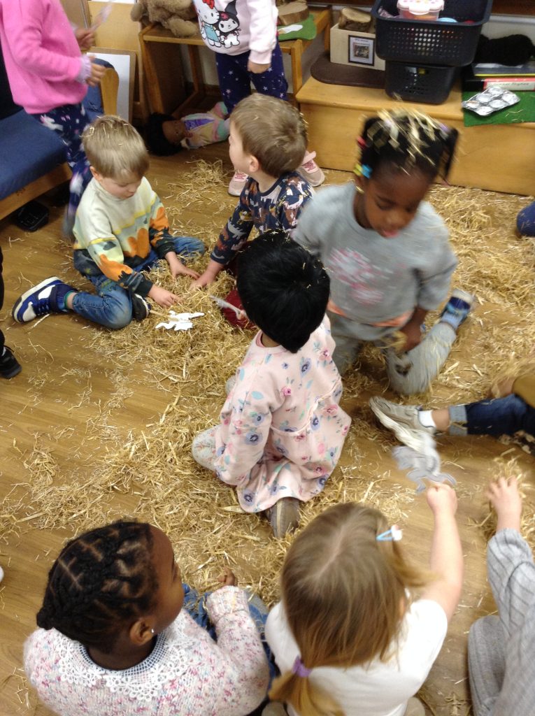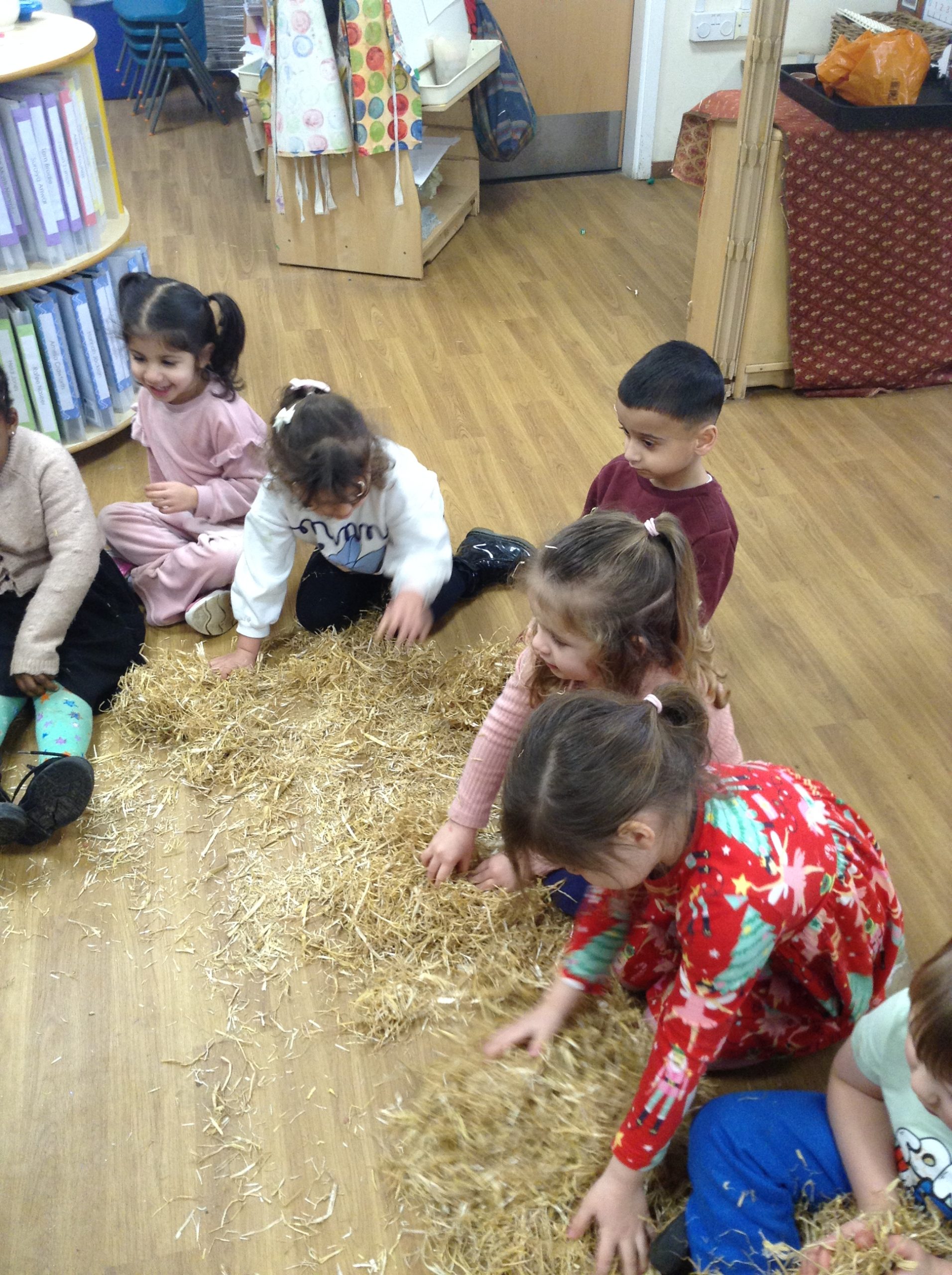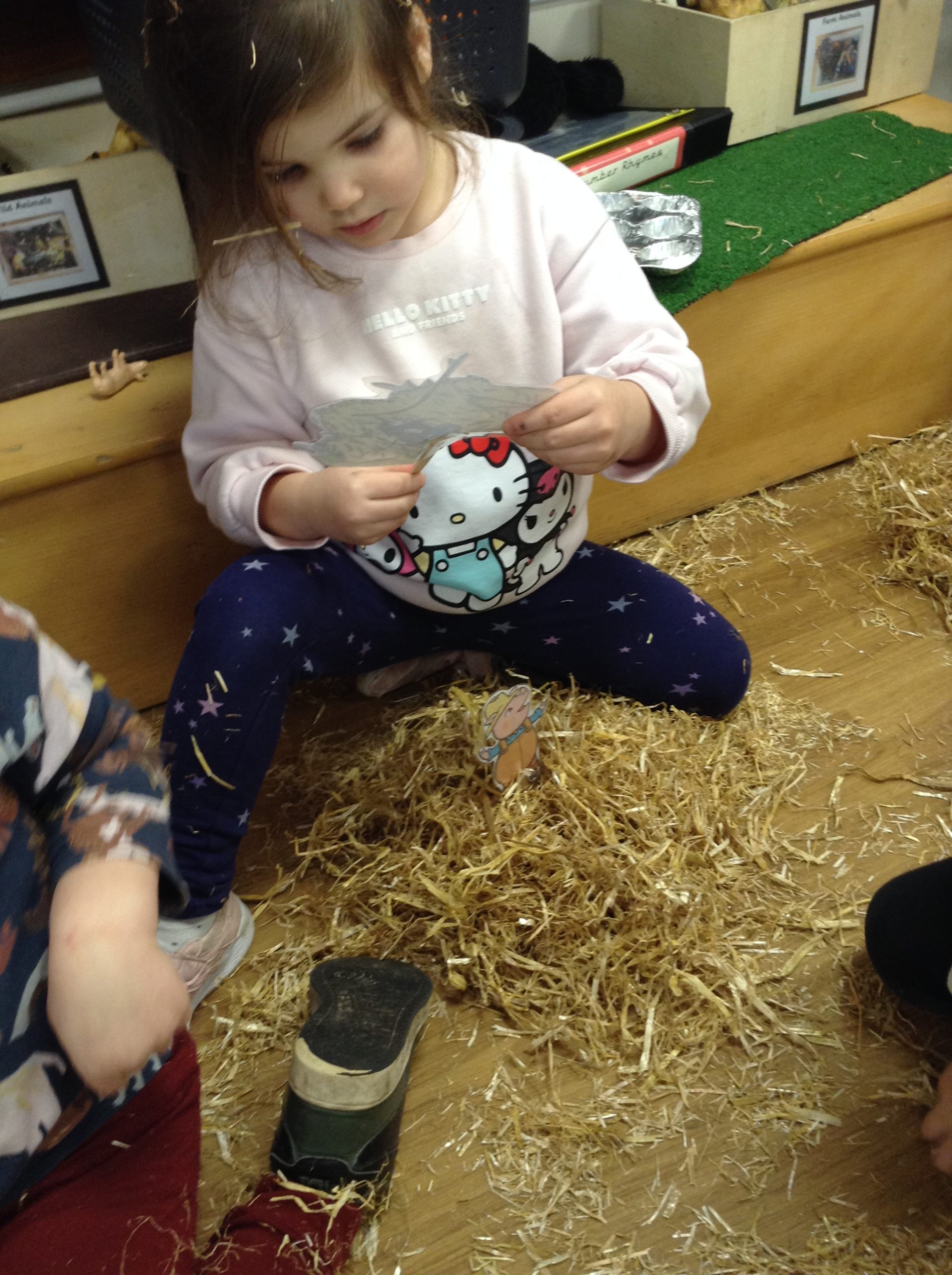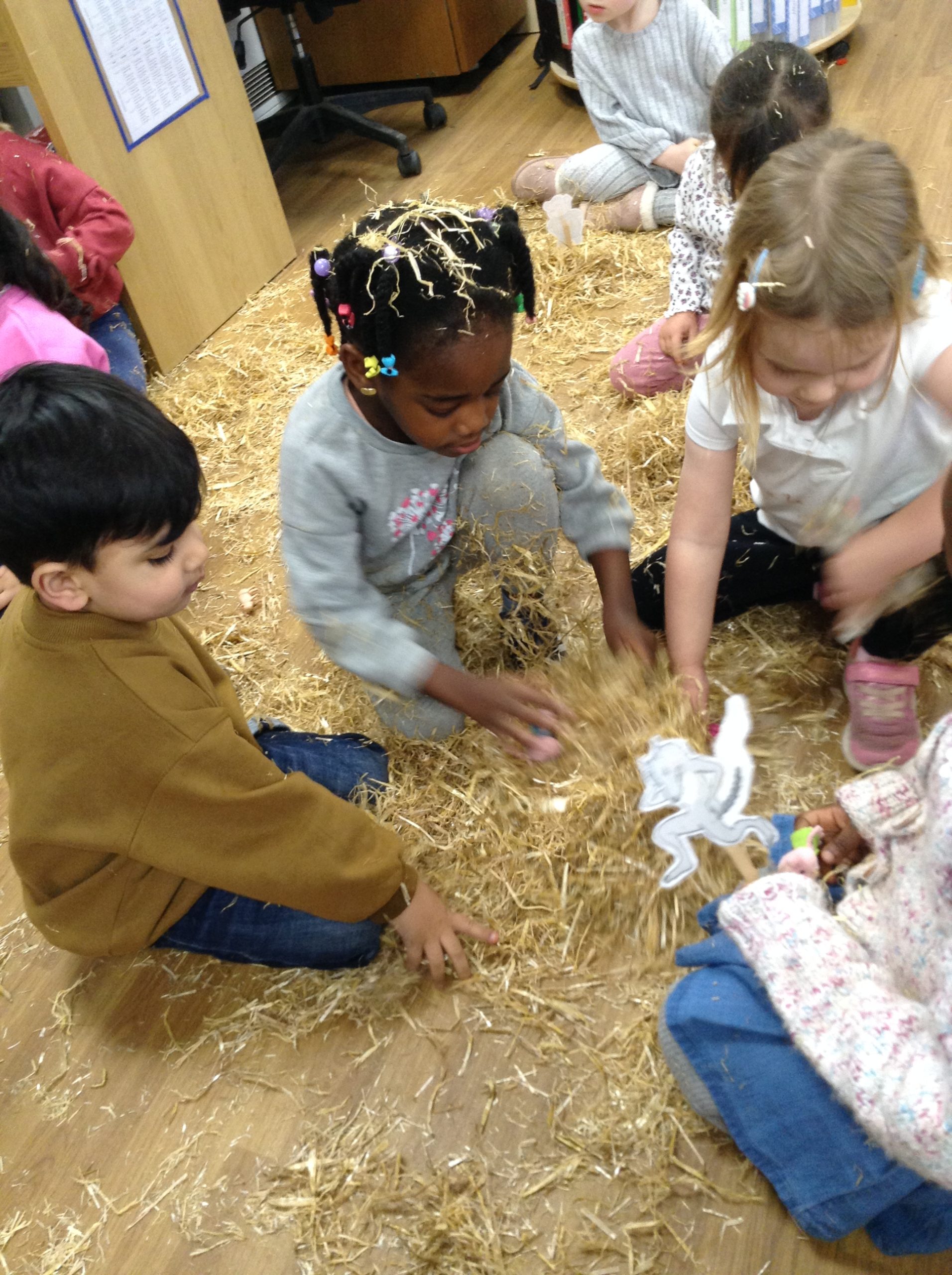 The children had a messy time this week. We decided to try build some house using straw, which turned out to be a poor building material. However, the children had lots of fun playing with it afterwards.
