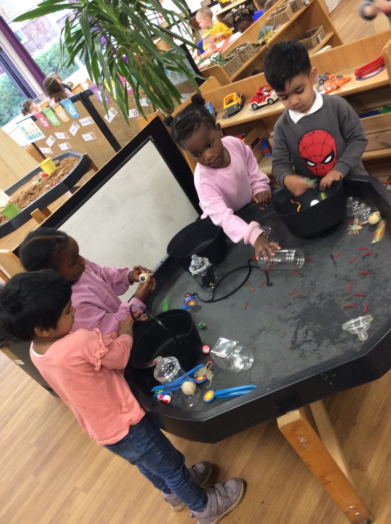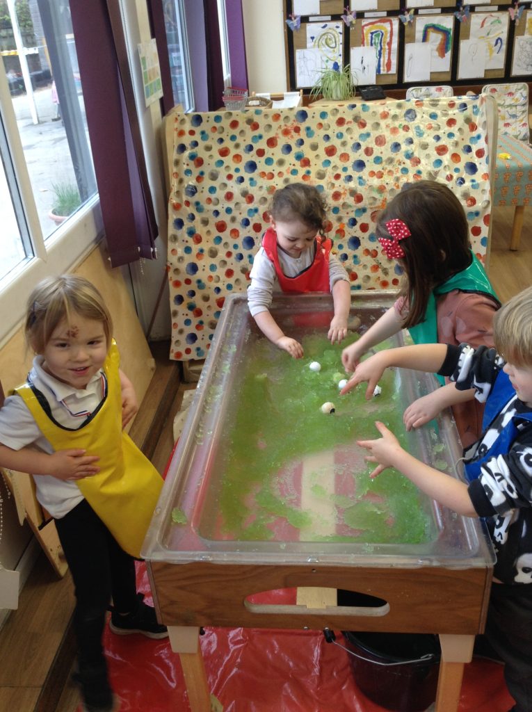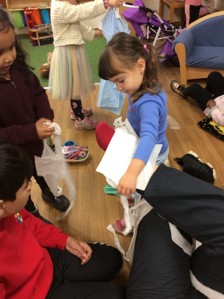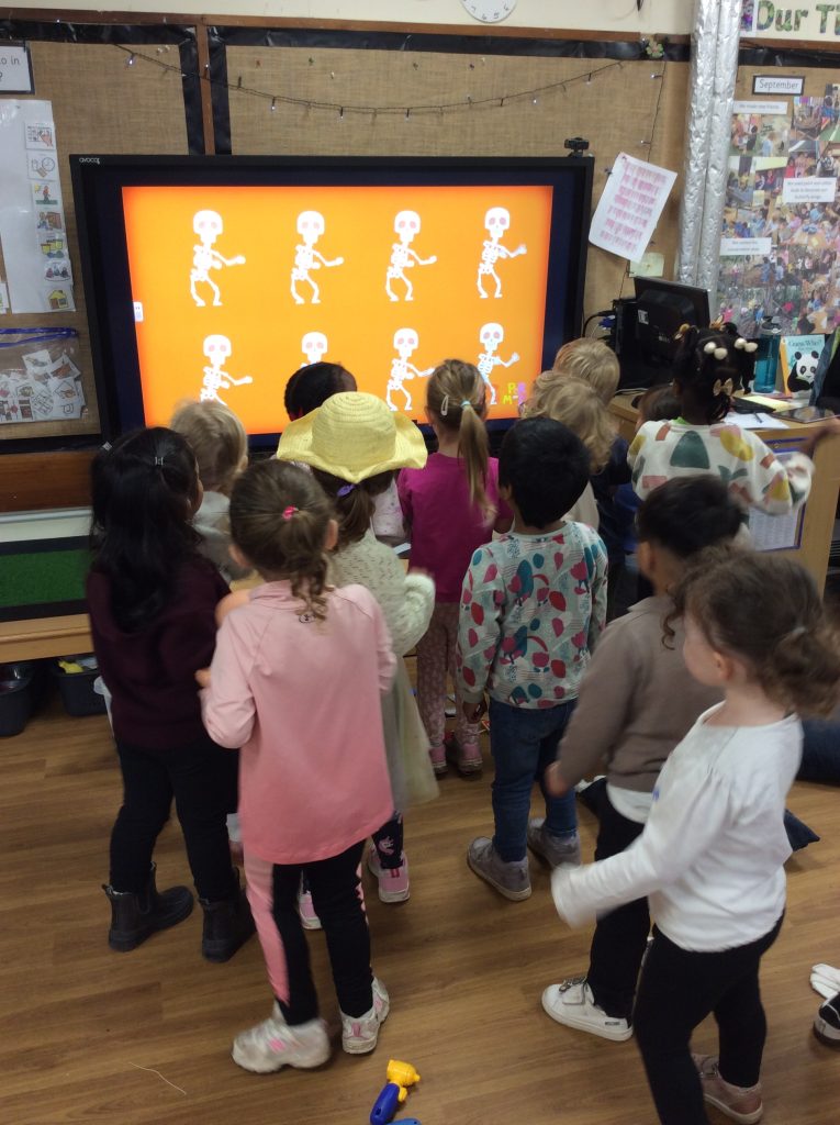 We’ve had another busy week. The children enjoyed bandaging me up while acting out the roles of doctors and nurses! This led the children to examine different bones and dance to the ‘Skeleton Dance’. We have looked at giraffe facts and charged around like rhinos! A favorite song this week has been ‘Lava Chicken’, which is apparently the ‘best’ song ever. Things have been a little spooky in our classroom. Halloween is approaching, so we have been busy making potions and playing with slime!