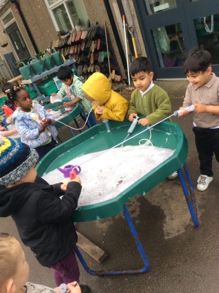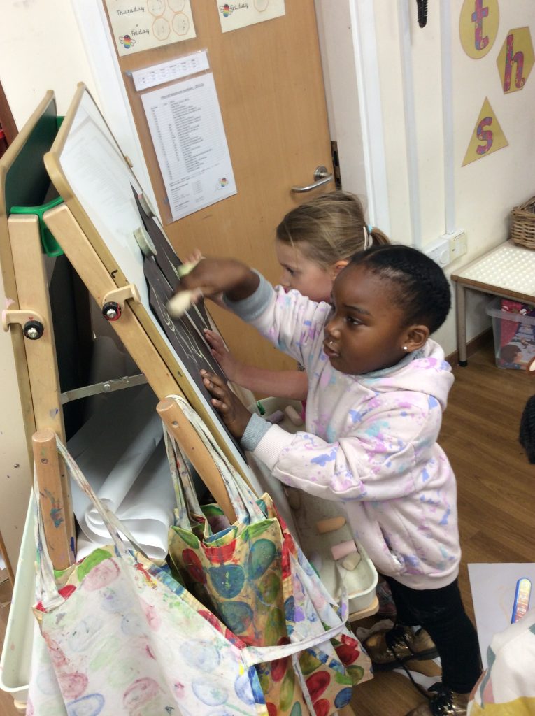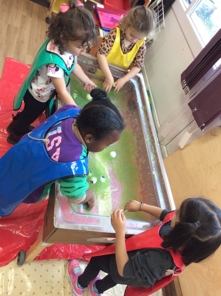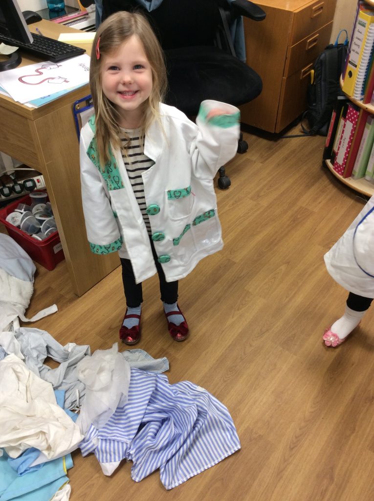 We’ve had another busy week. The children enjoyed bandaging me up while acting out the roles of doctors and nurses! This led the children to examine different bones and dance to the ‘Skeleton Dance’. We have looked at giraffe facts and charged around like rhinos! A favorite song this week has been ‘Lava Chicken’, which is apparently the ‘best’ song ever. Things have been a little spooky in our classroom. Halloween is approaching, so we have been busy making potions and playing with slime!