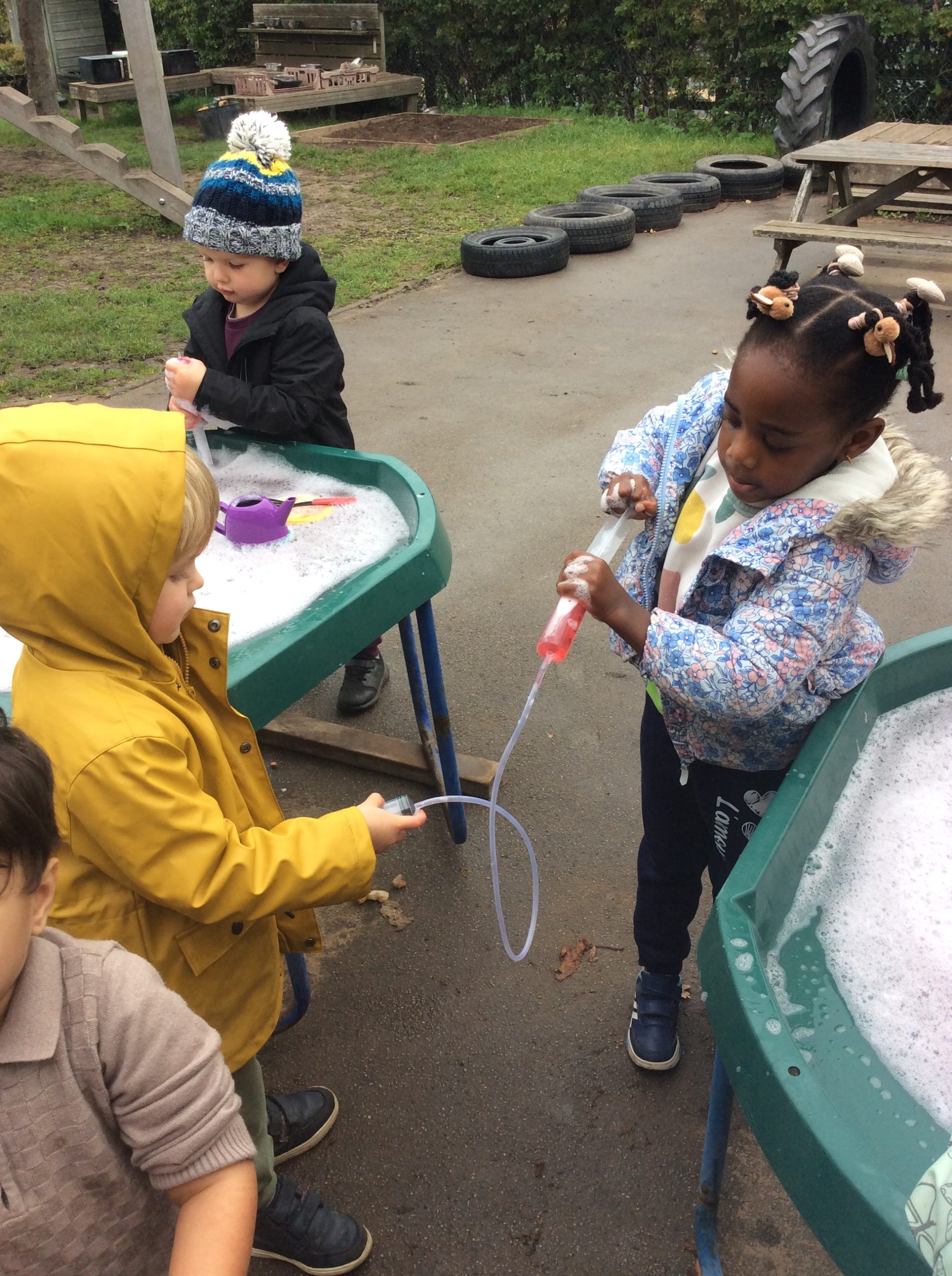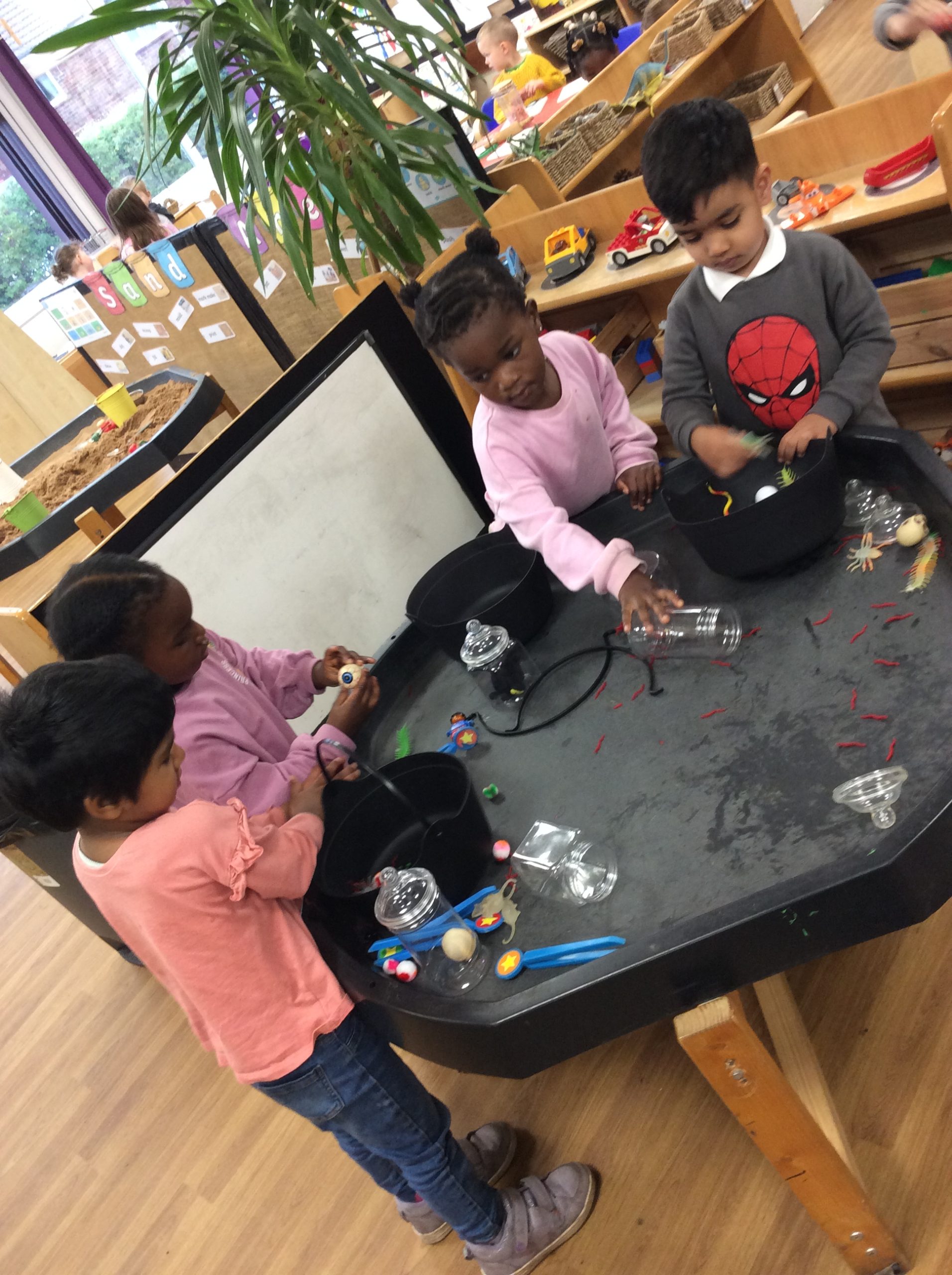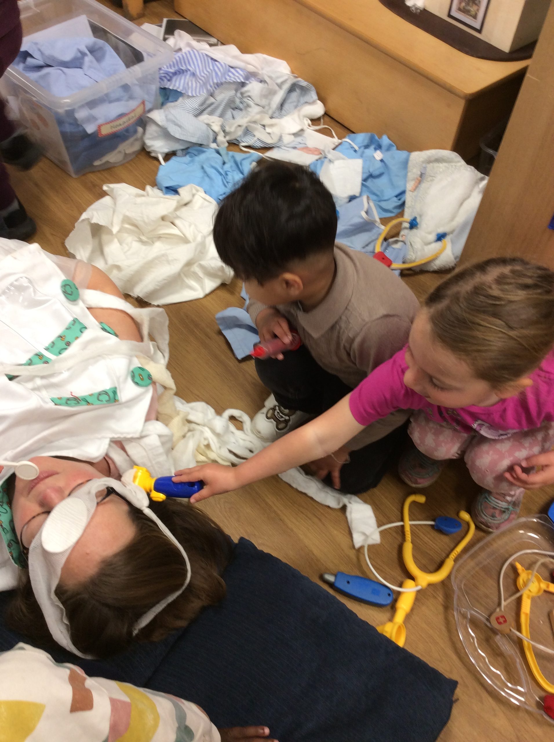 We’ve had another busy week. The children enjoyed bandaging me up while acting out the roles of doctors and nurses! This led the children to examine different bones and dance to the ‘Skeleton Dance’. We have looked at giraffe facts and charged around like rhinos! A favorite song this week has been ‘Lava Chicken’, which is apparently the ‘best’ song ever. Things have been a little spooky in our classroom. Halloween is approaching, so we have been busy making potions and playing with slime!