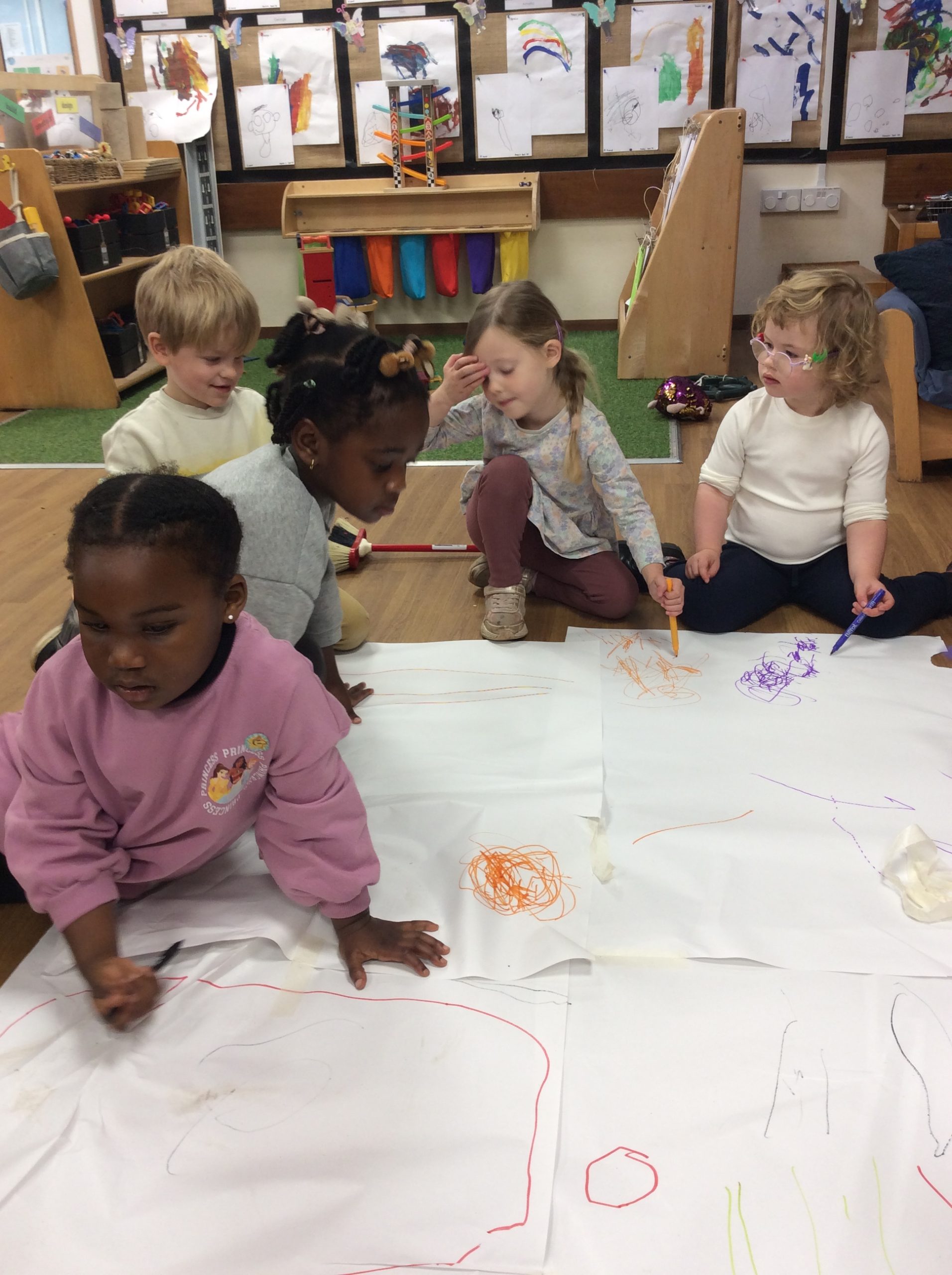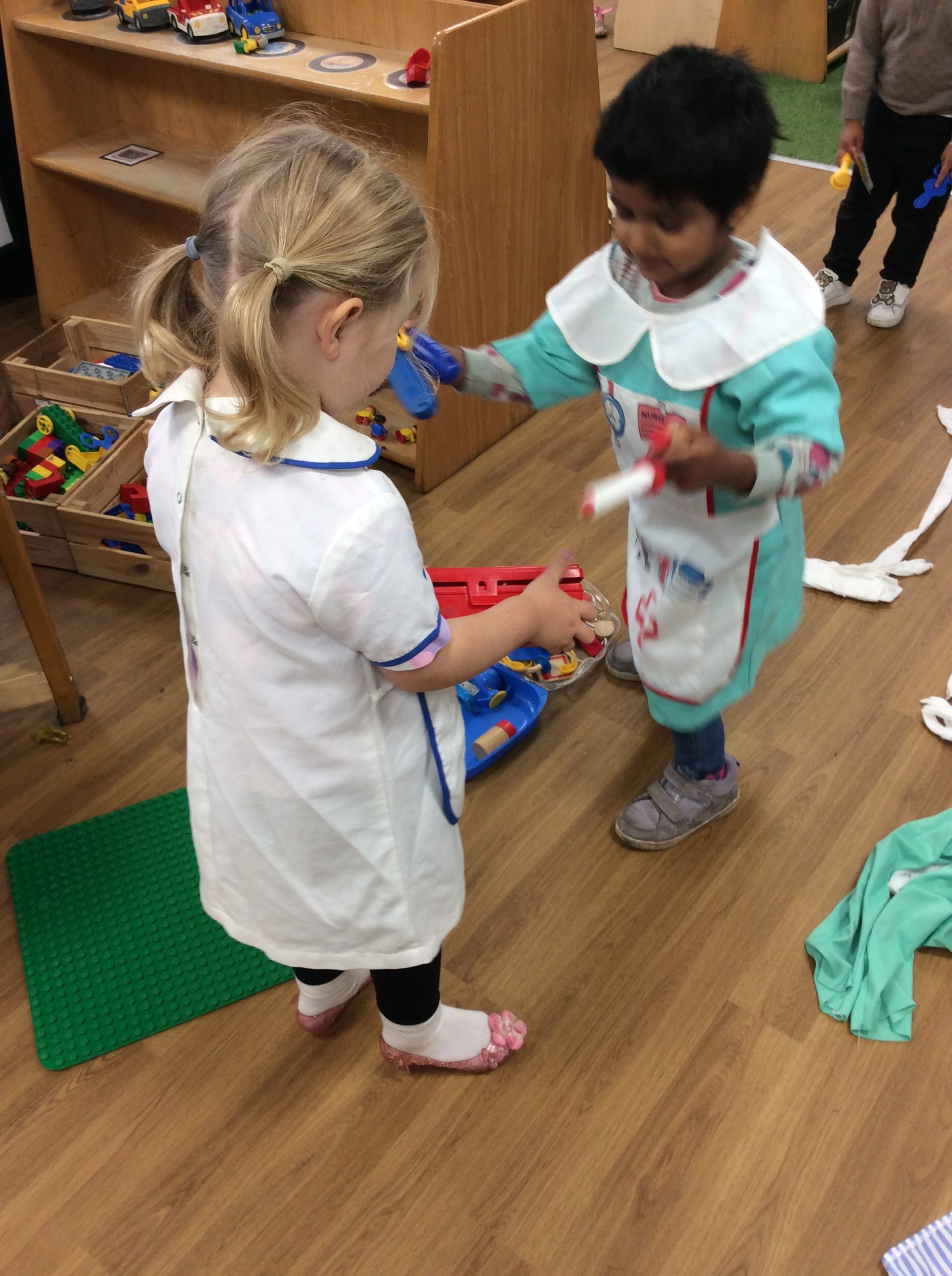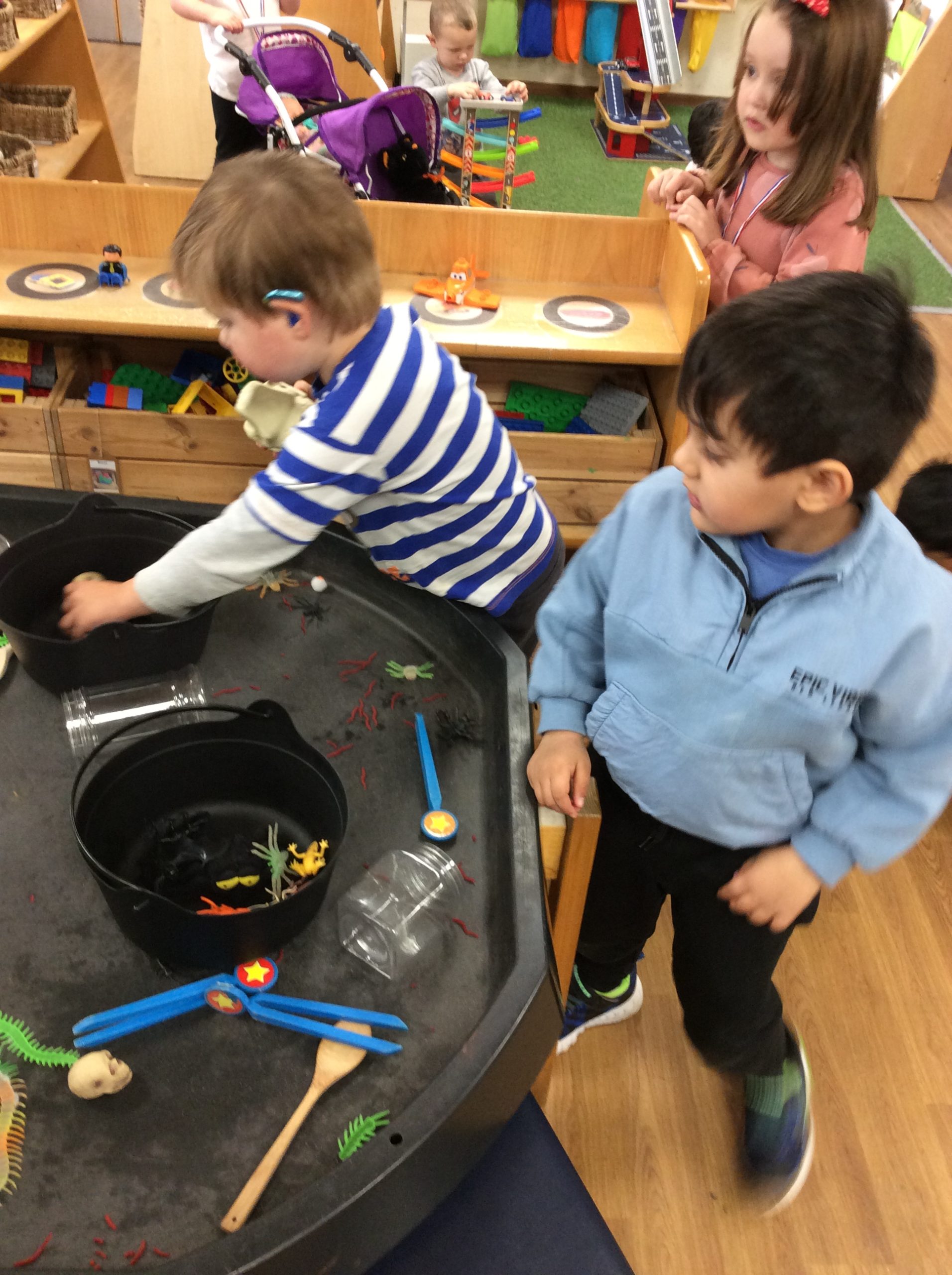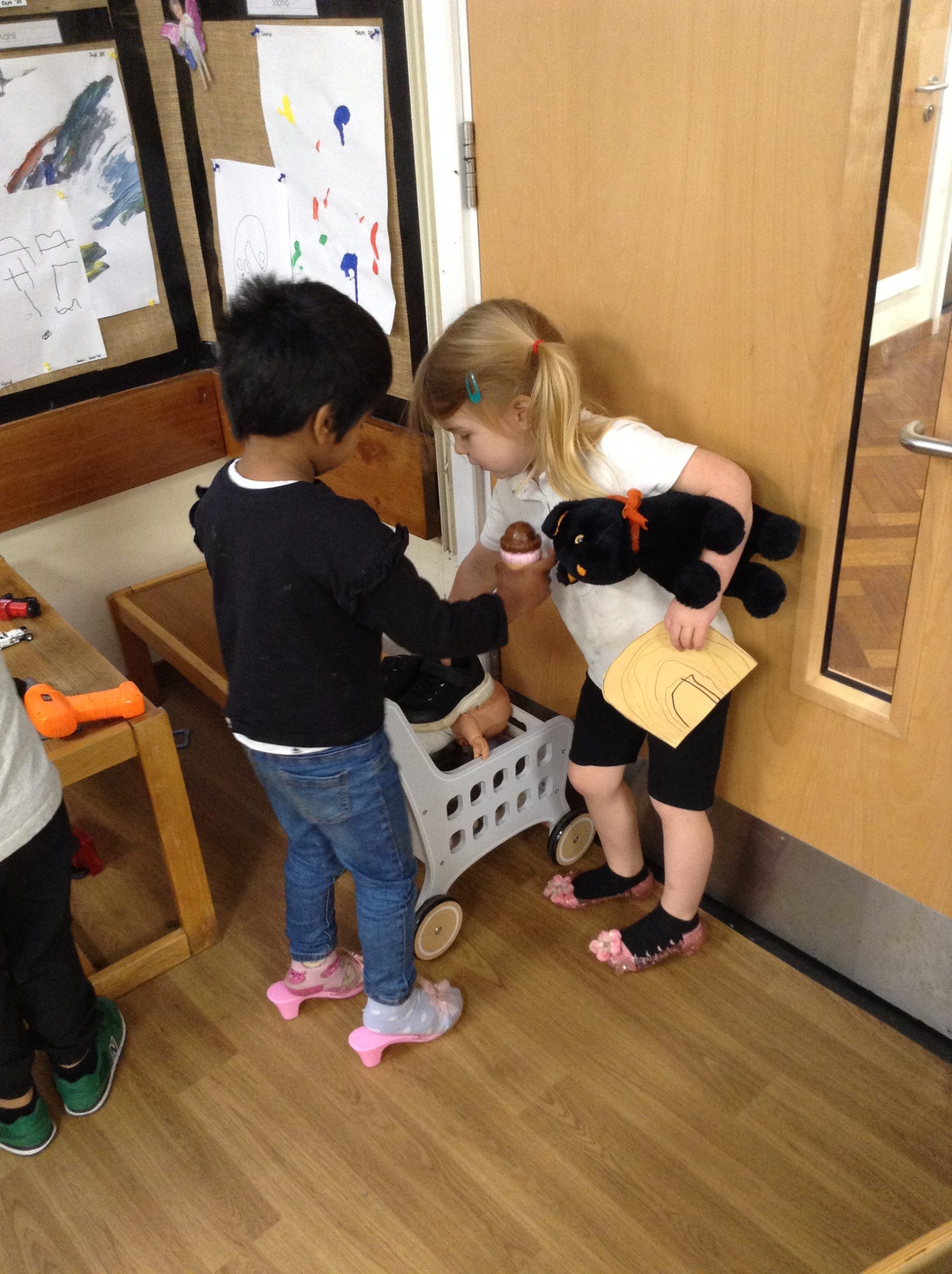 We’ve had another busy week. The children enjoyed bandaging me up while acting out the roles of doctors and nurses! This led the children to examine different bones and dance to the ‘Skeleton Dance’. We have looked at giraffe facts and charged around like rhinos! A favorite song this week has been ‘Lava Chicken’, which is apparently the ‘best’ song ever. Things have been a little spooky in our classroom. Halloween is approaching, so we have been busy making potions and playing with slime!