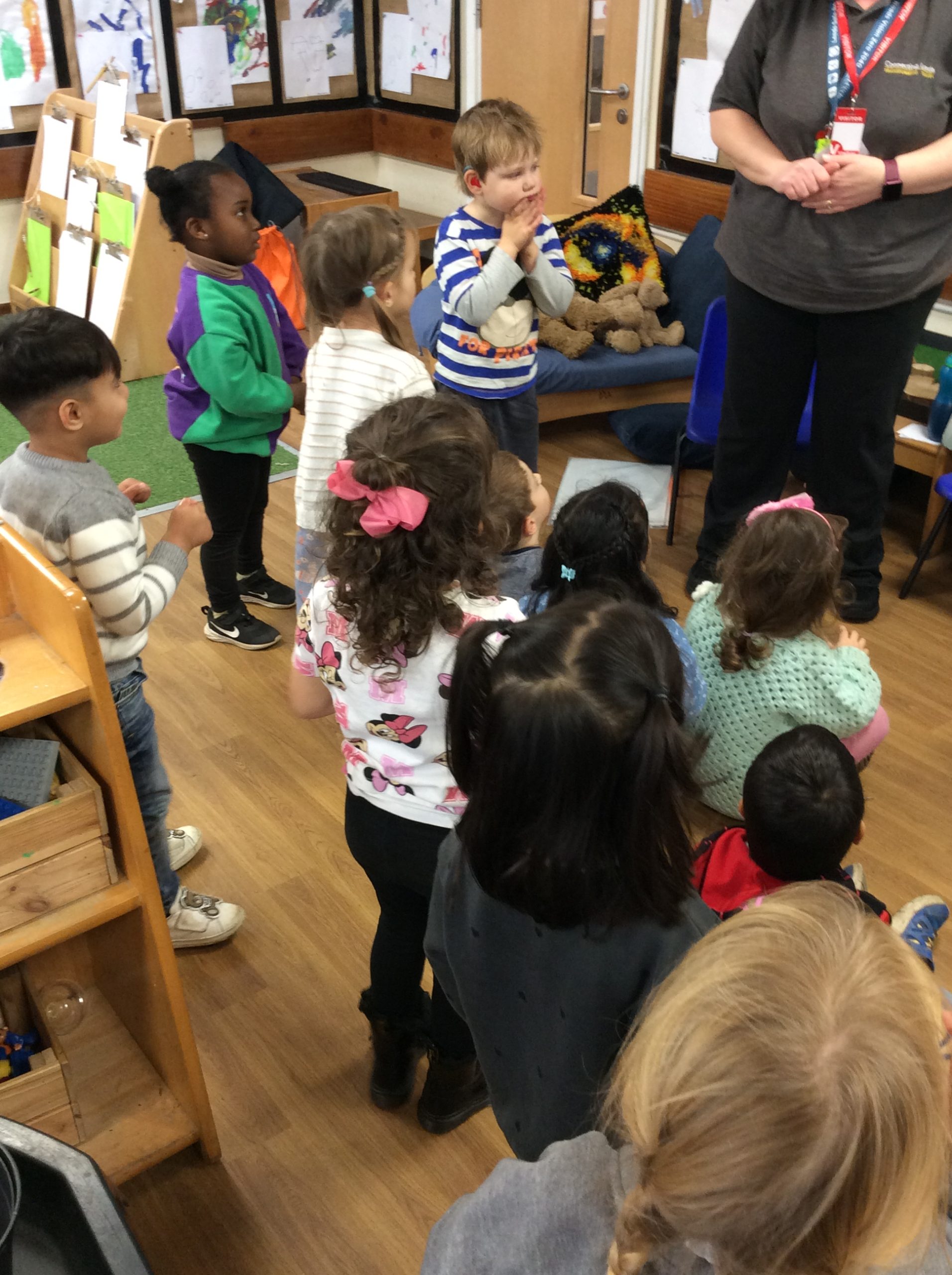 During our maths sessions, we have looked at ‘repeat’. We have been singing songs with repeated words to help see the repeating pattern.