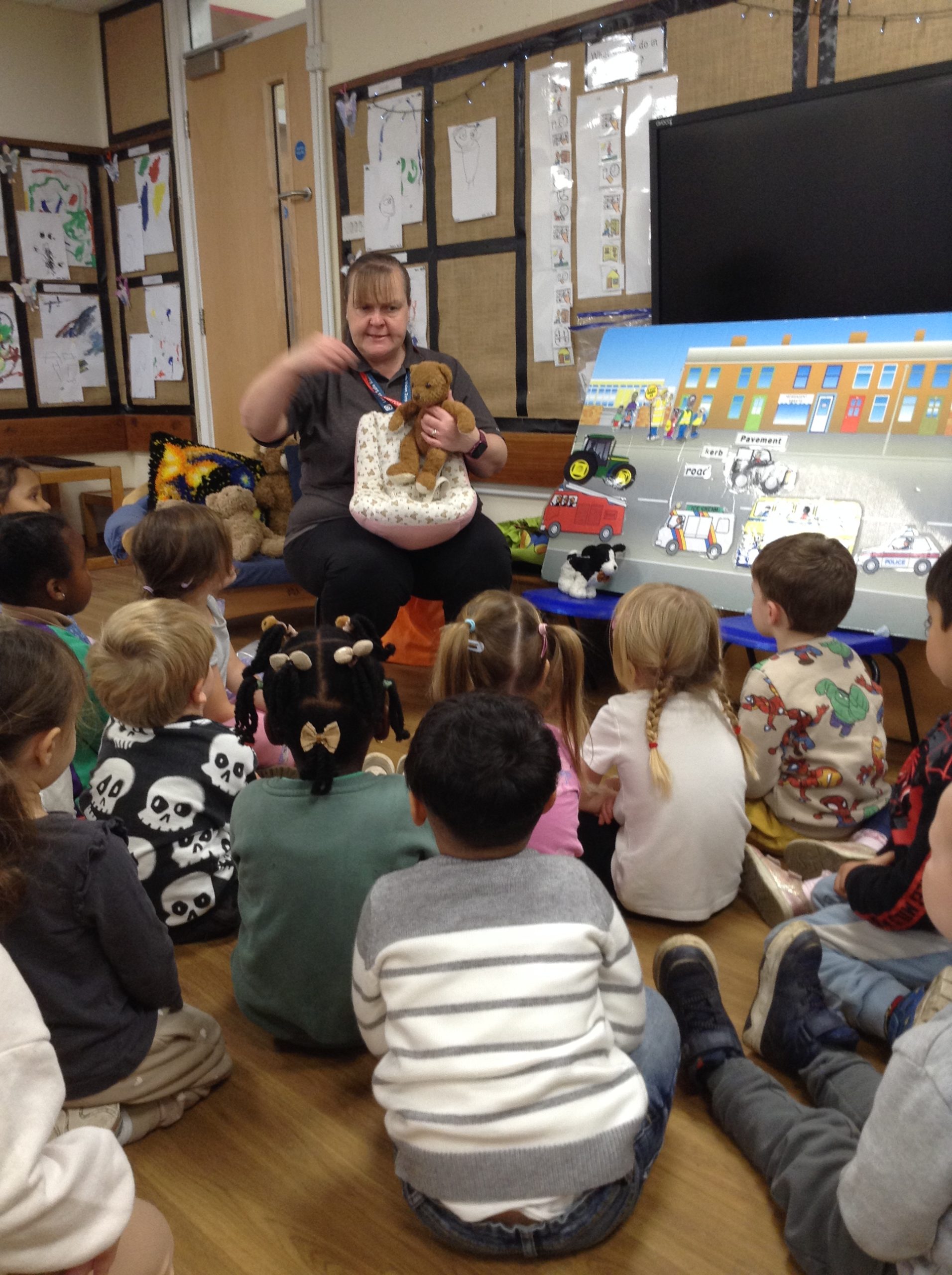 The children were fortunate this week to participate in a Road Safety Day. We had a special visitor who spent some time with the children discussing how to stay safe when crossing roads and how to stay safe when travelling in different vehicles.