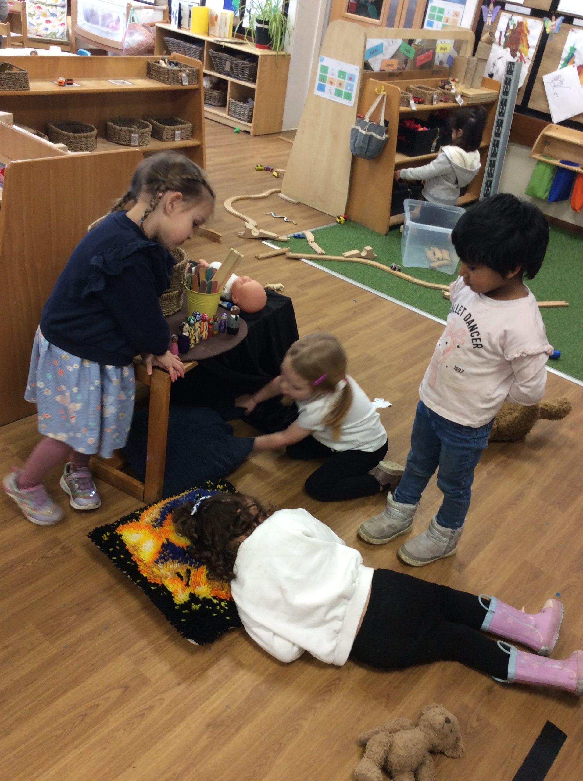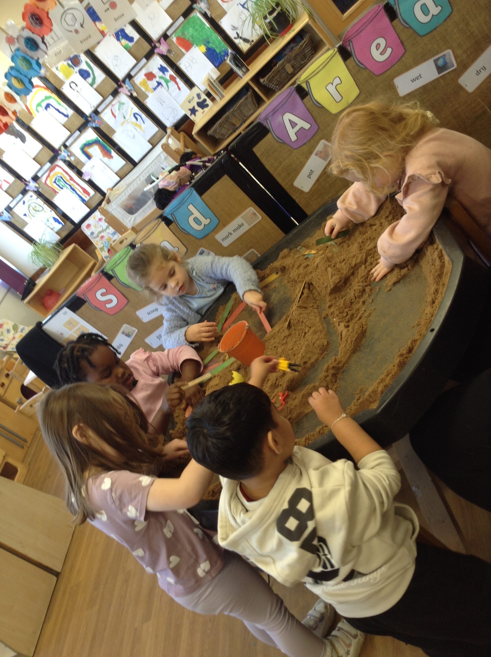 This week, the children have focused on showing numbers up to three using their fingers. We watched and sang along to the story of Goldilocks while displaying the correct number of fingers to match different parts of the story.