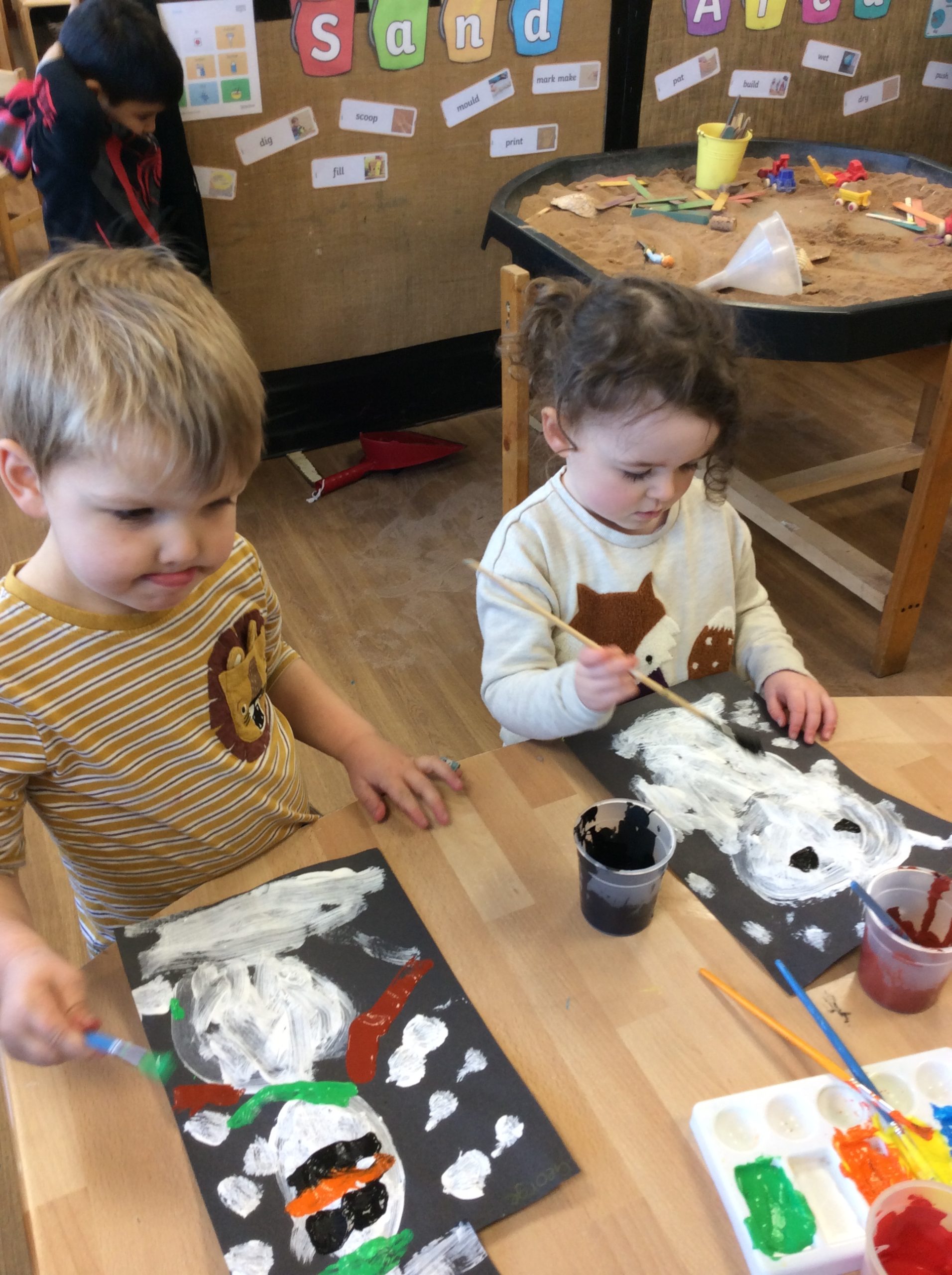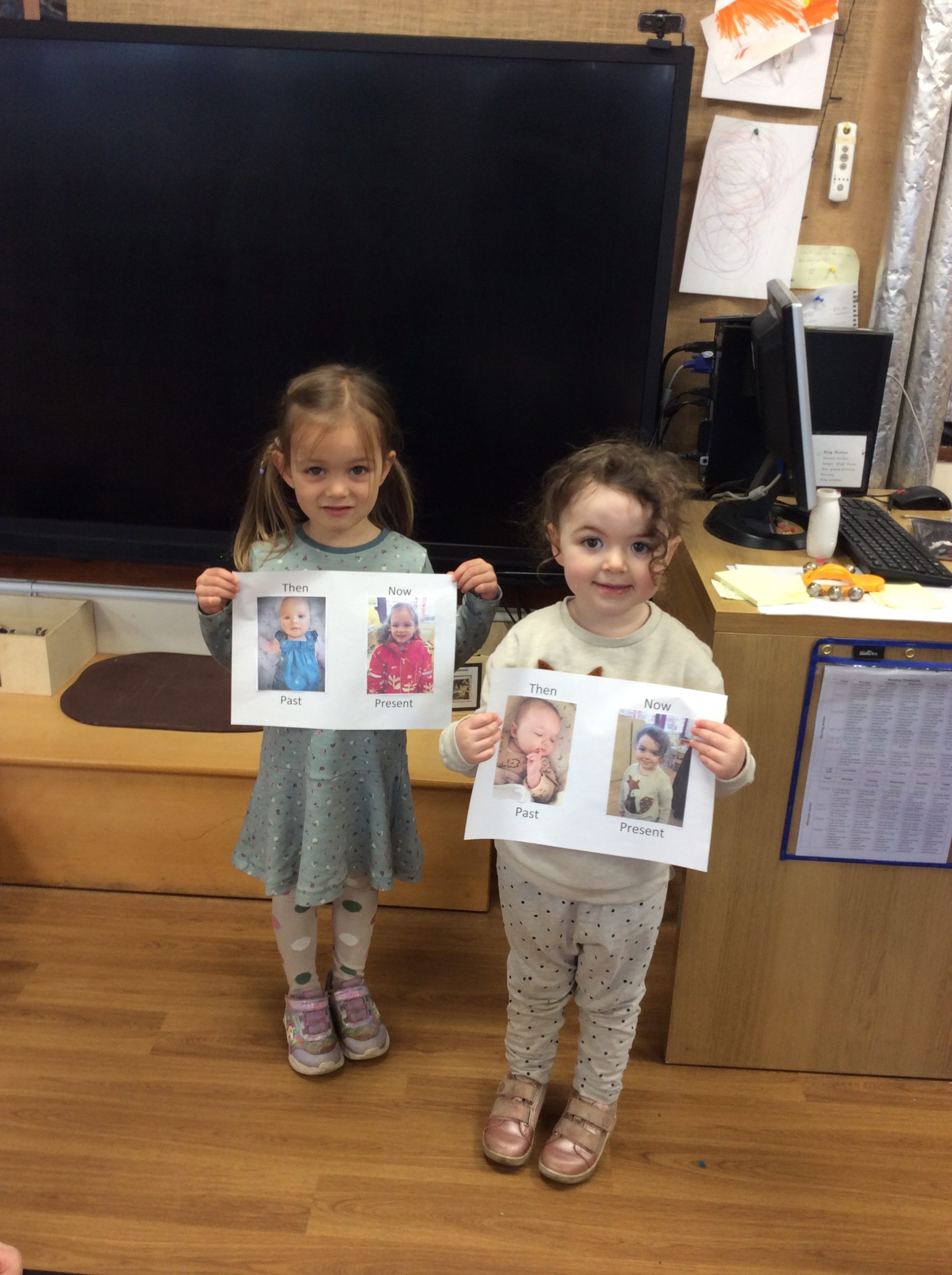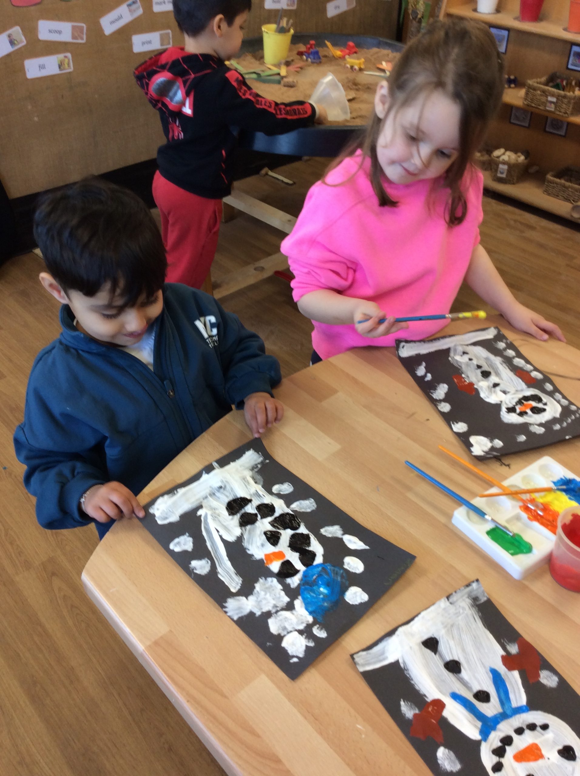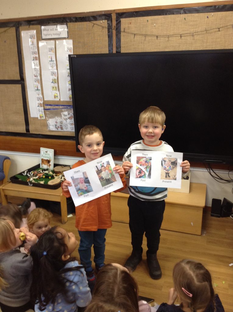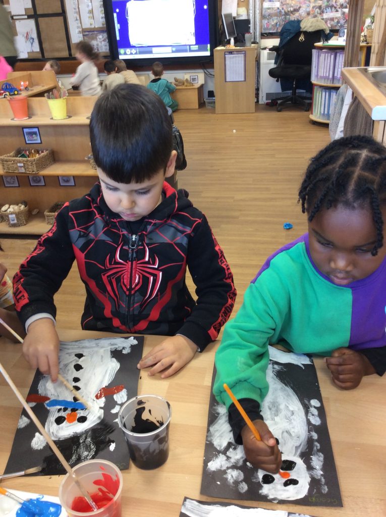 It’s been another busy week! We have continued to explore the concepts of ‘Past’ and ‘Present.’ The children were very excited to share their baby photos with the class. We also spent time creating musical instruments, which the children decorated with stickers. Earlier in the week, we took the bikes out before the frost and ice arrived. At the end of the week, the children enjoyed exploring outside to see what had frozen. We even had time to paint snowmen and have a mini disco!