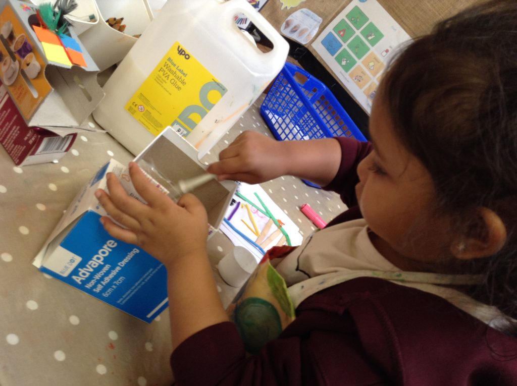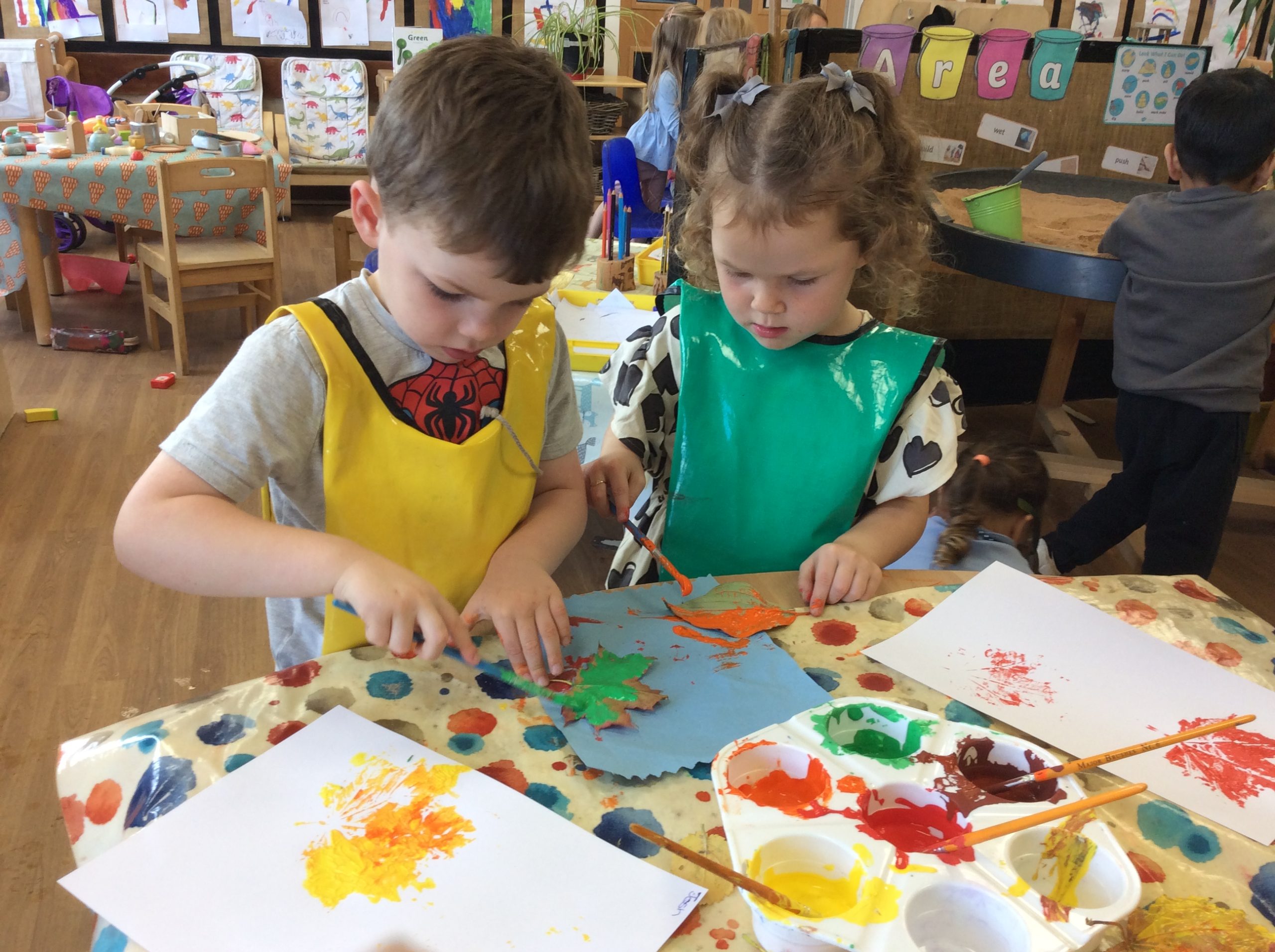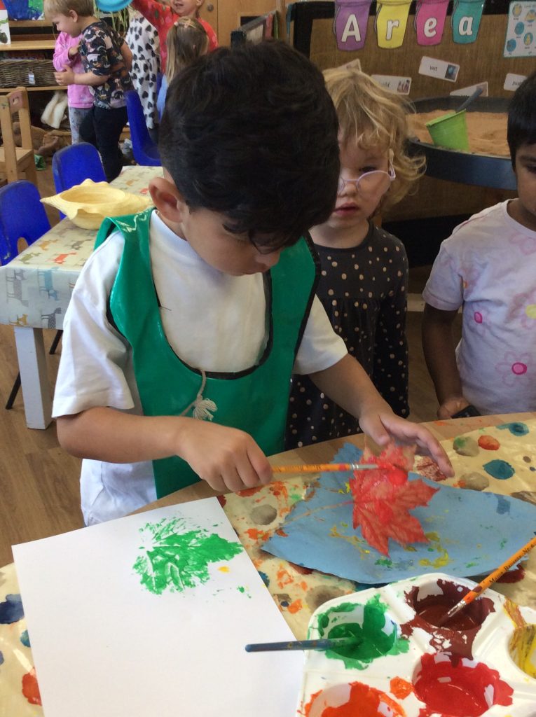 On Wednesday, the children picked a school library book to share at home. Library books need to be returned to school every Wednesday in order to swap them for a new book to share. The children have enjoyed looking at autumn colours and have created some lovely leaf prints. They have also been busy building in our craft area and making some amazing models.