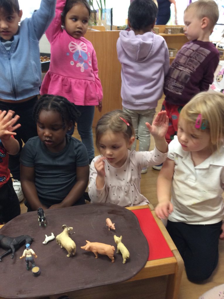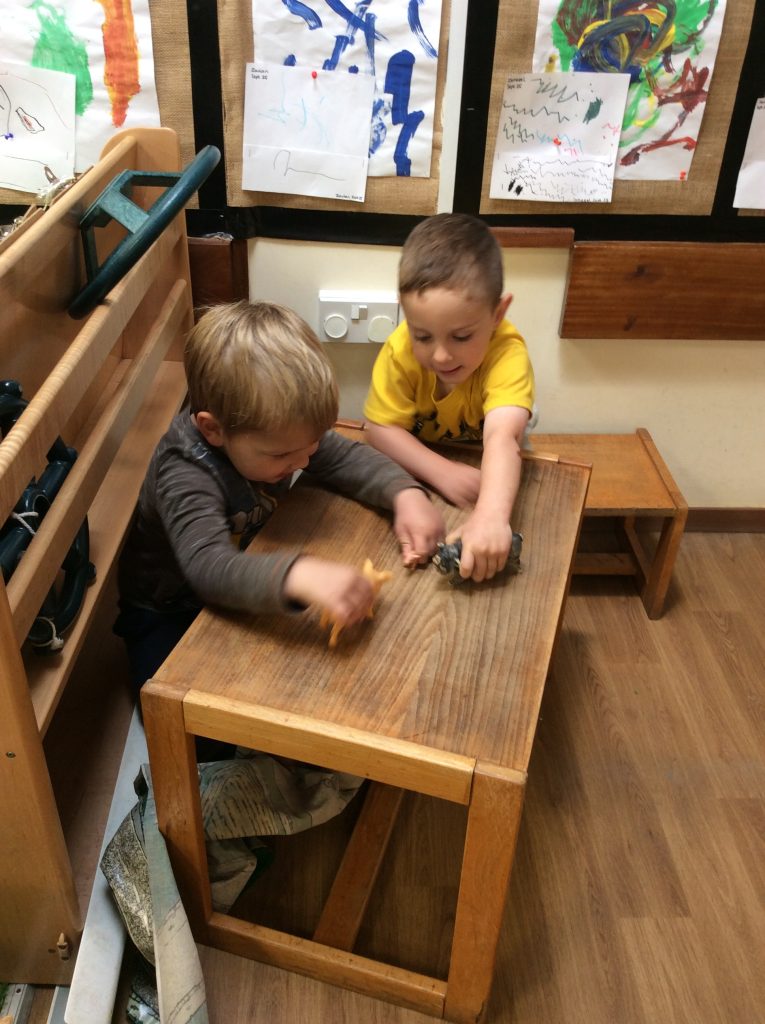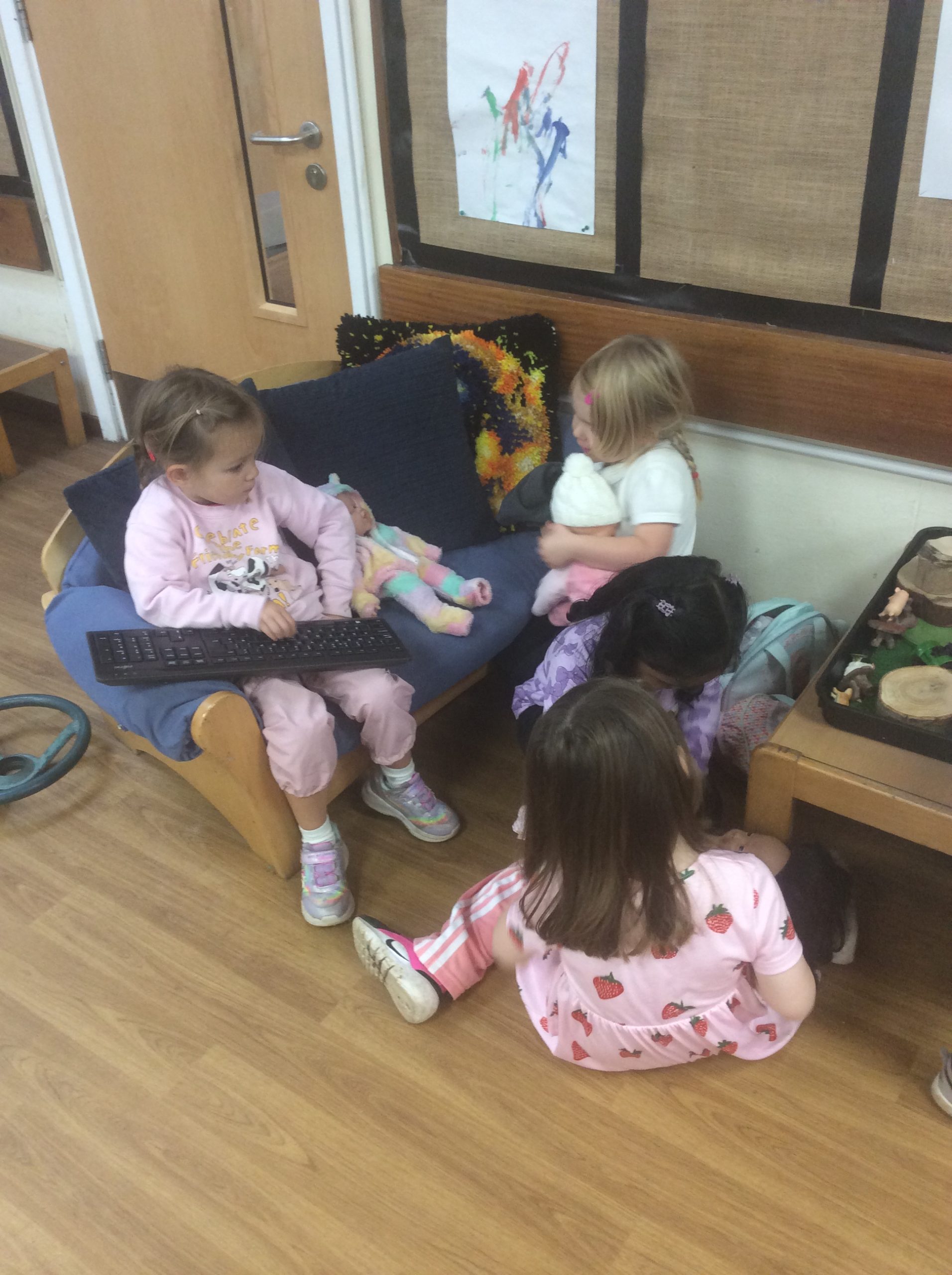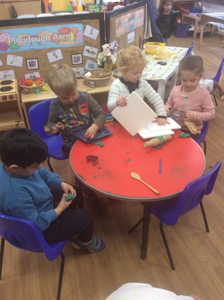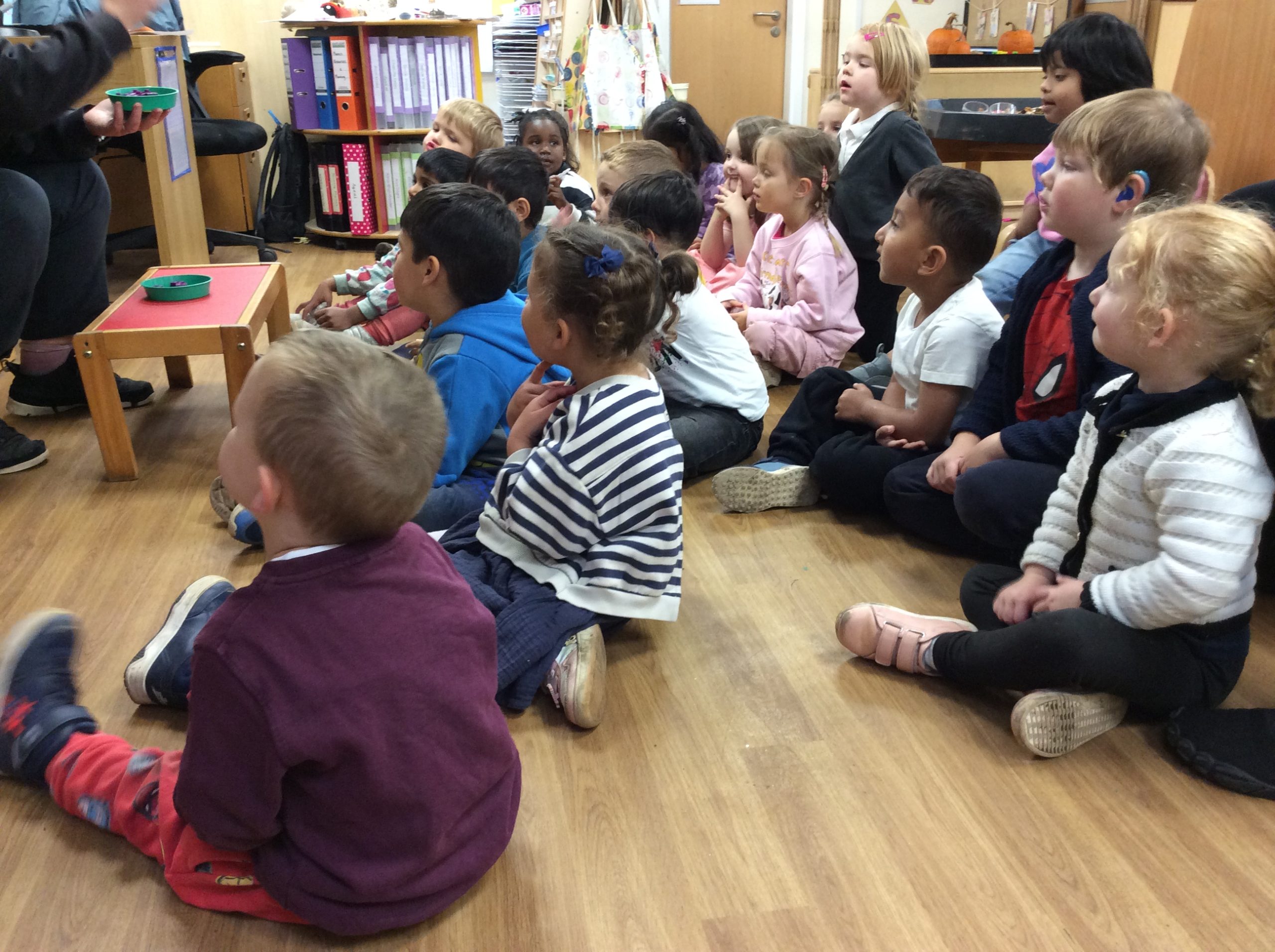 This week, we have been playing with sounds. We set up a farm-themed tuff tray and listened the the different sounds the animals make. We read our termly book, Dear Zoo, and made animal sounds. As with all our phonics sessions, we orally blended some words and segmented some too.