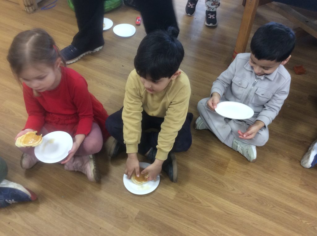 During the holidays, some of the children celebrated Pancake Day. We discussed Shrove Tuesday, Ash Wednesday, the beginning of Lent, and the Christian countdown to Easter. As a special treat, we enjoyed pancakes and experimented with various toppings. Additionally, some children are preparing to celebrate Eid, so we spent some time talking about Ramadan and the Muslim countdown to Eid. We learned about how some families are fasting in preparation for this celebration. In our activities, we have also been busy sorting items, making balloon models, painting, colouring, and spending a lot of time outside digging and preparing for Spring.